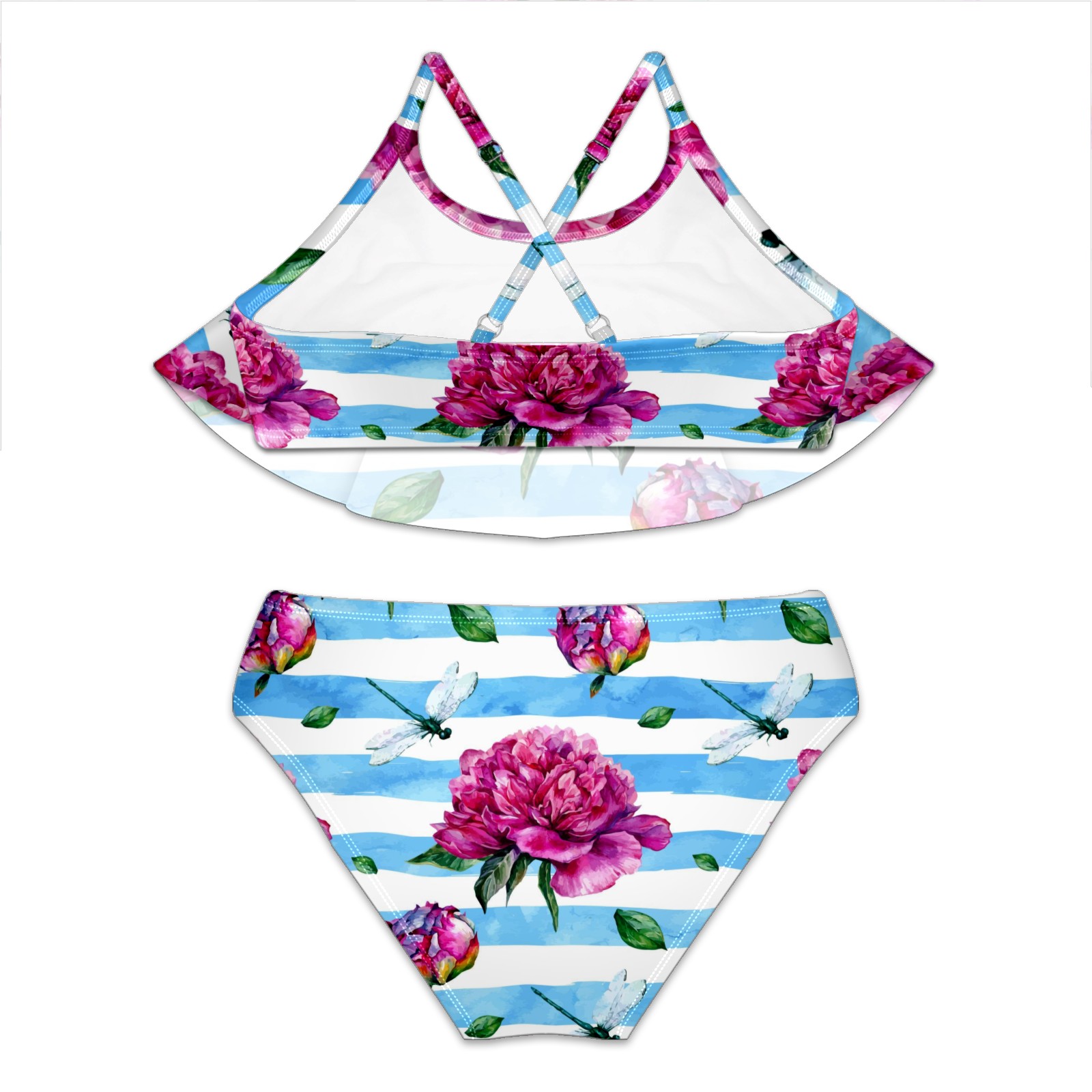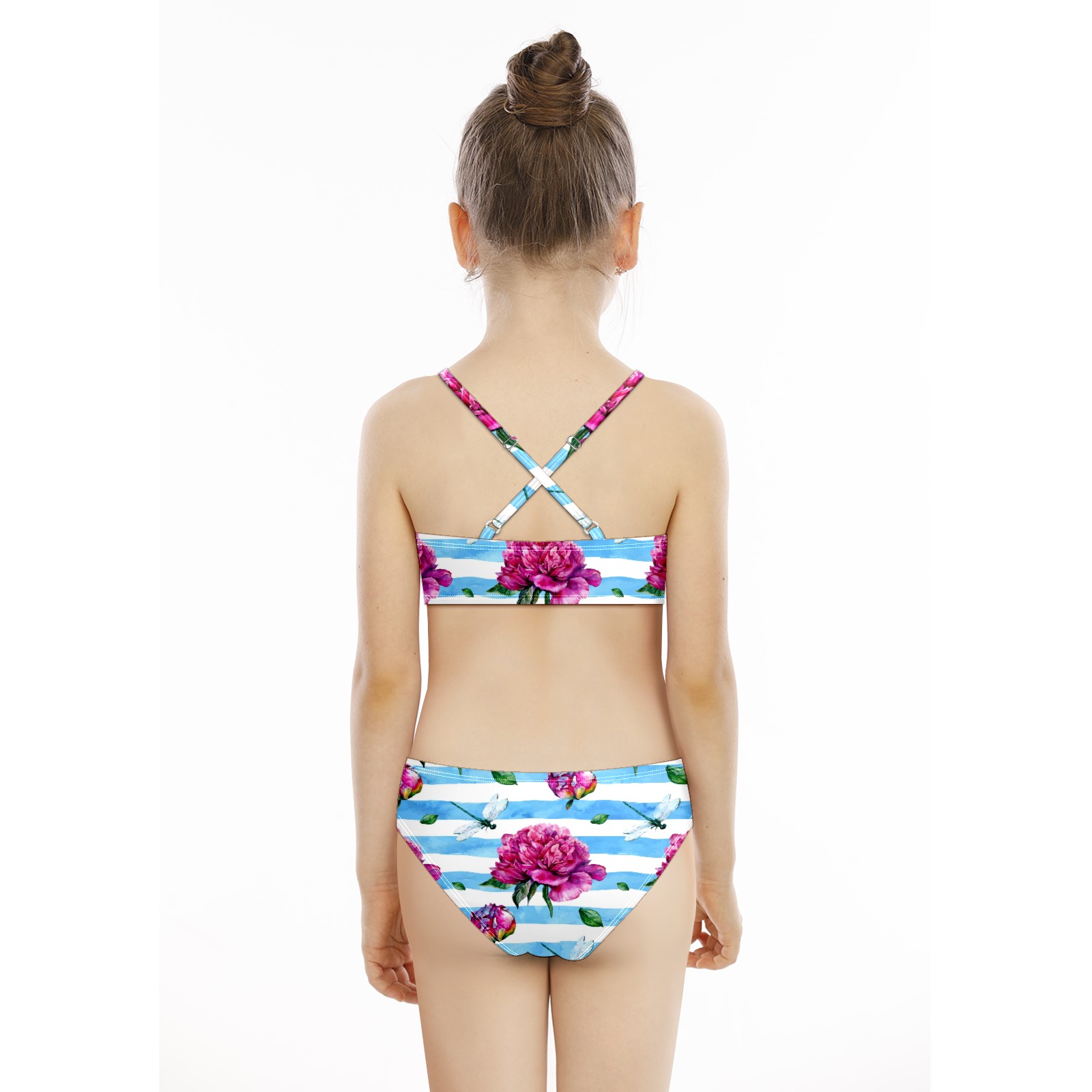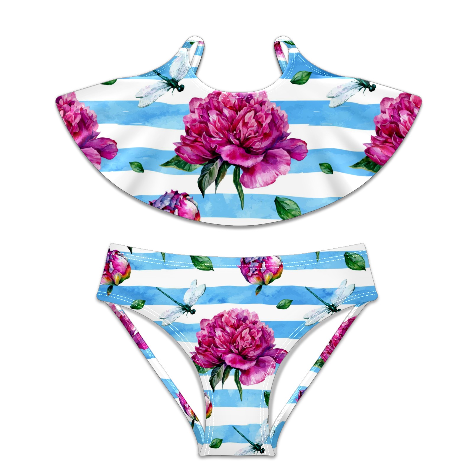 Swimsuits for Girls Two Pieces Bathing Suit Quick Dry Swimwear Dragonfly Strioe Flower S