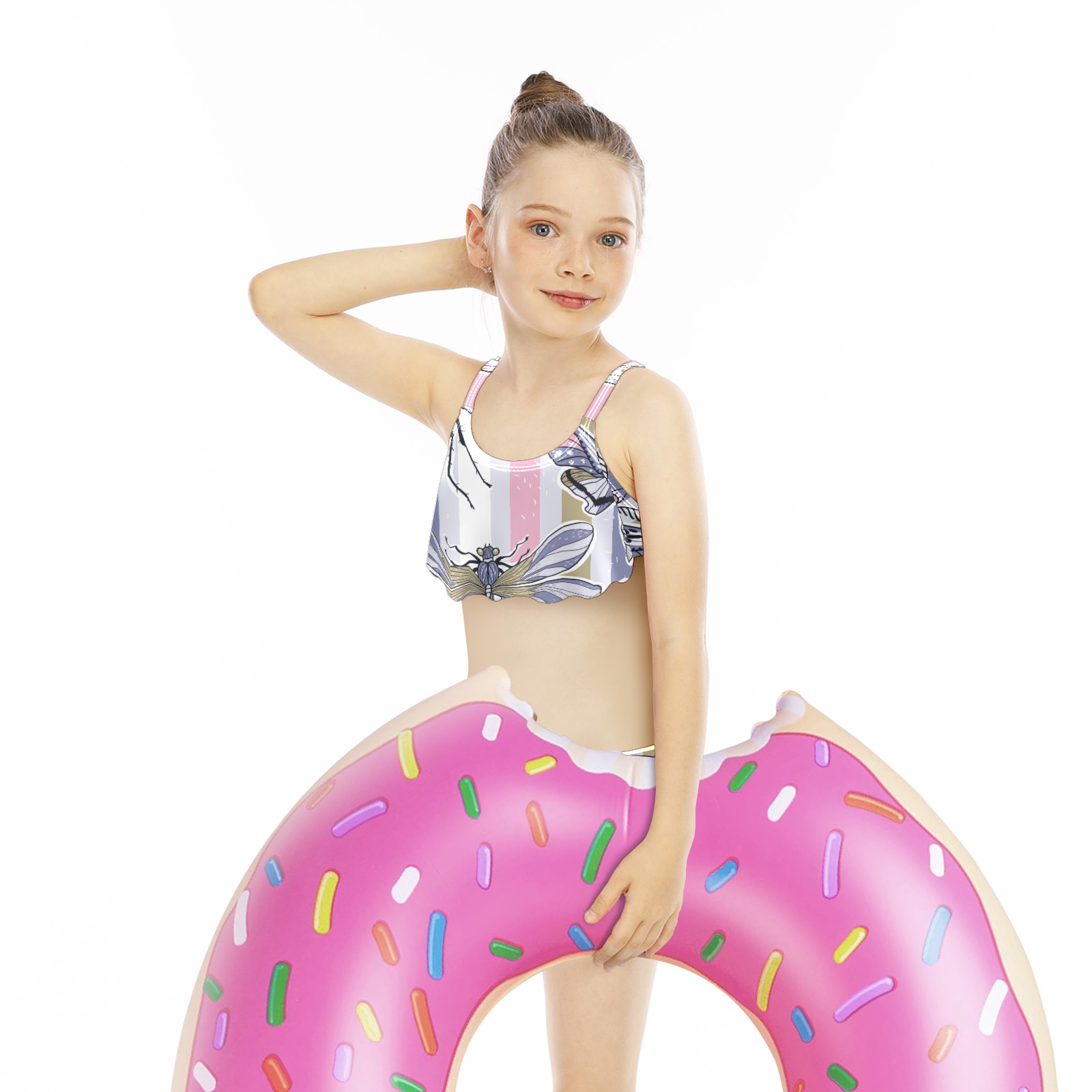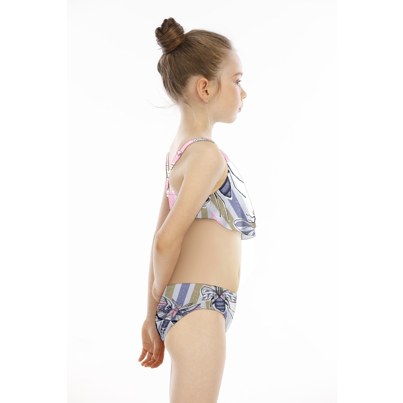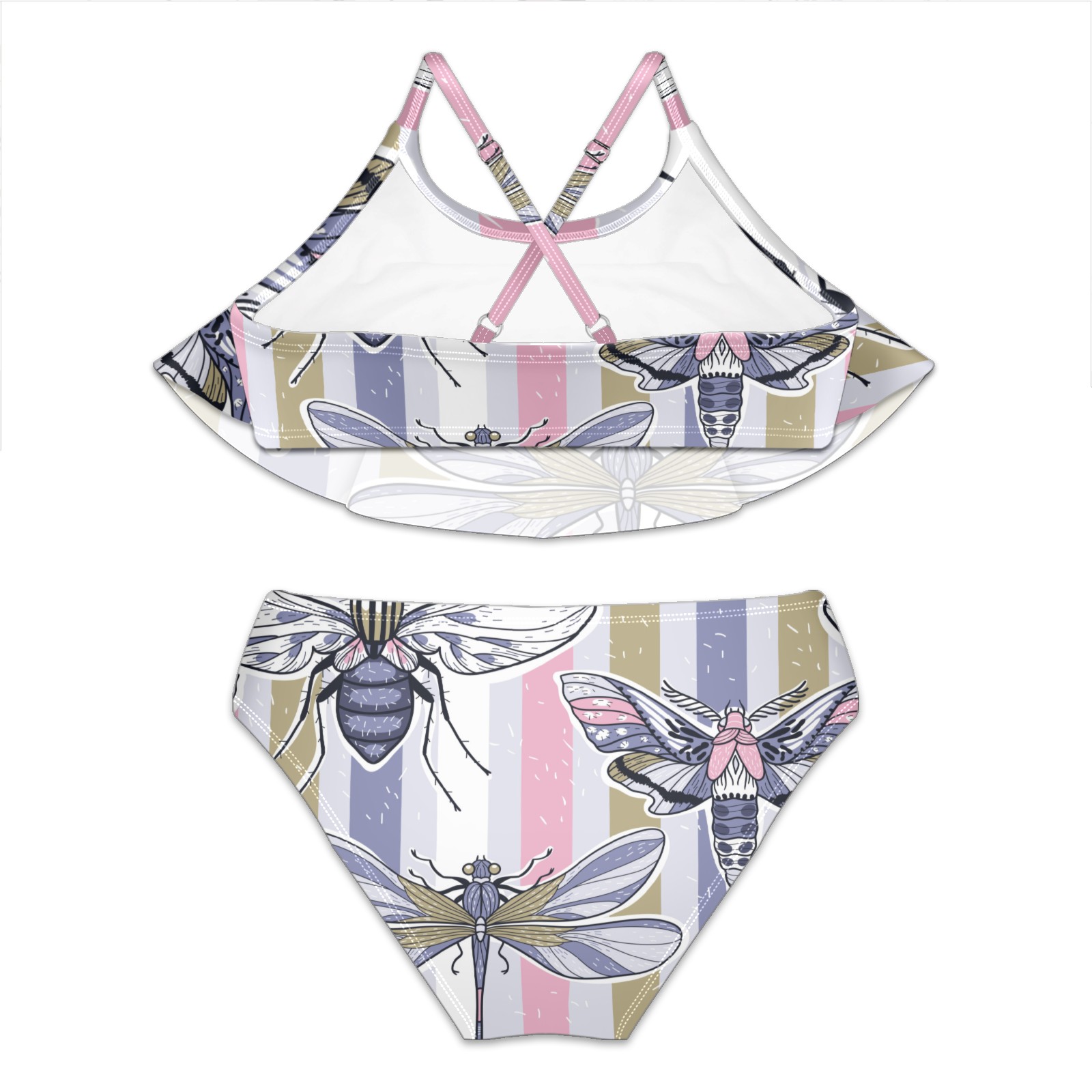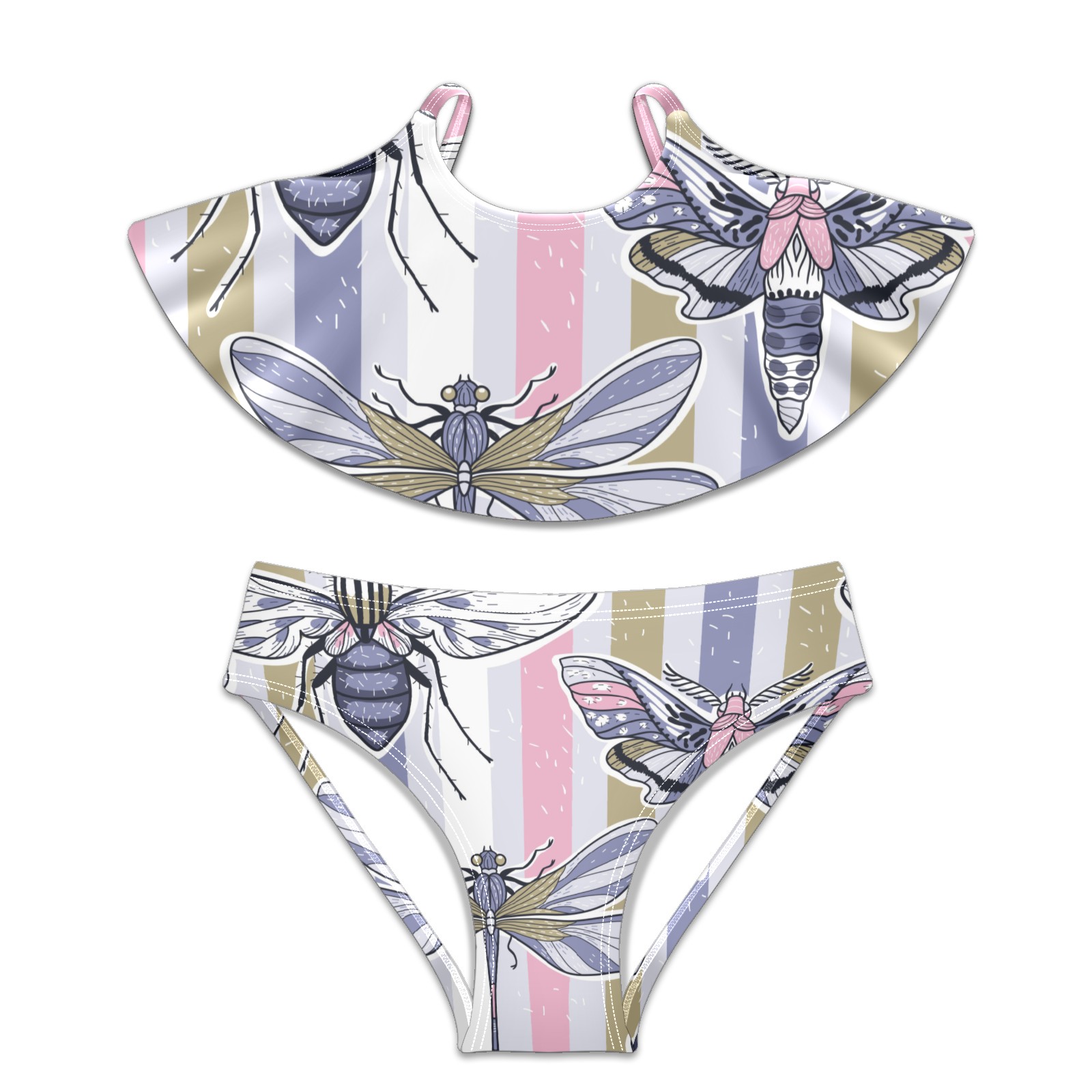 Swimsuits for Girls Two Pieces Bathing Suit Quick Dry Swimwear Dragonfly Butterfly Insect Stripes Background S