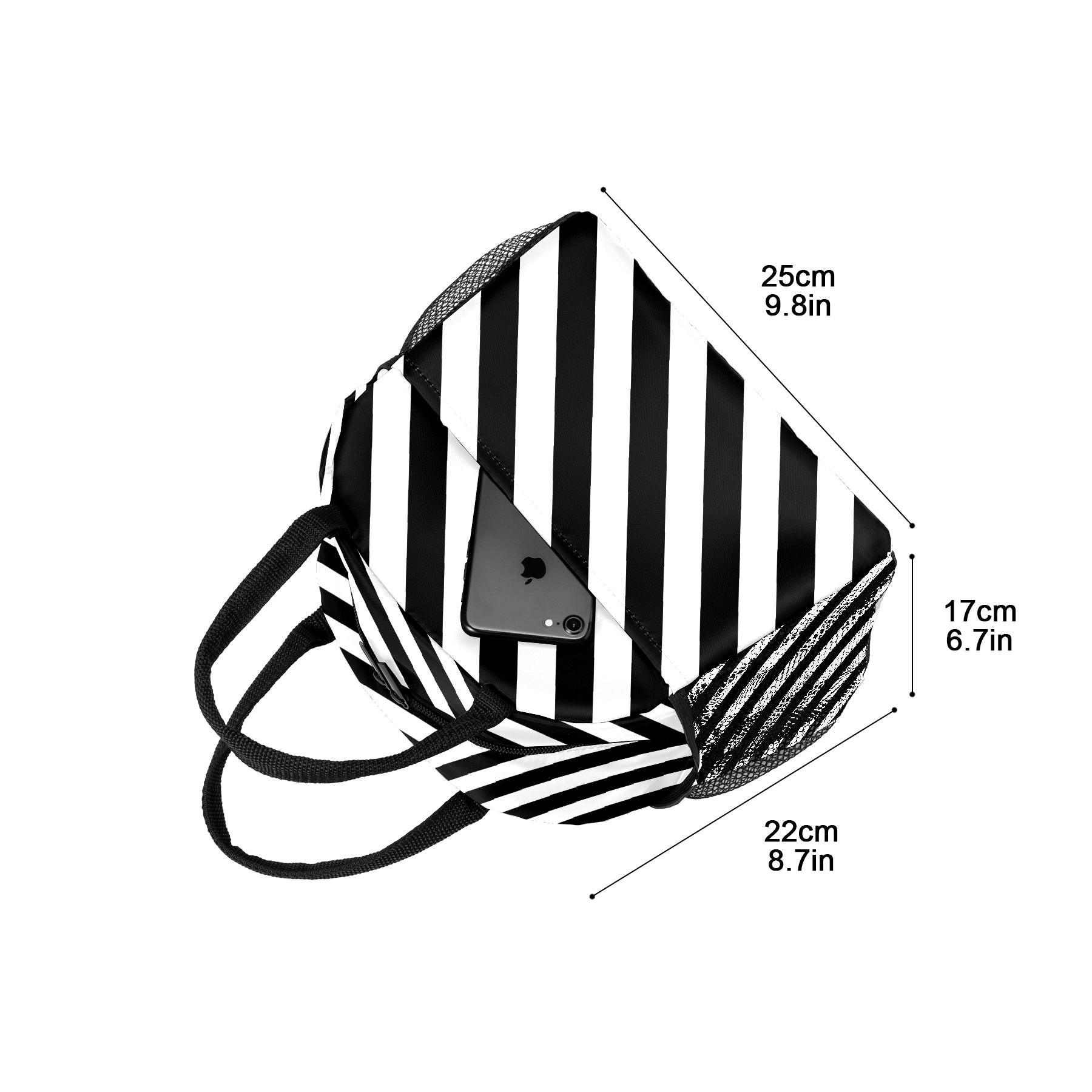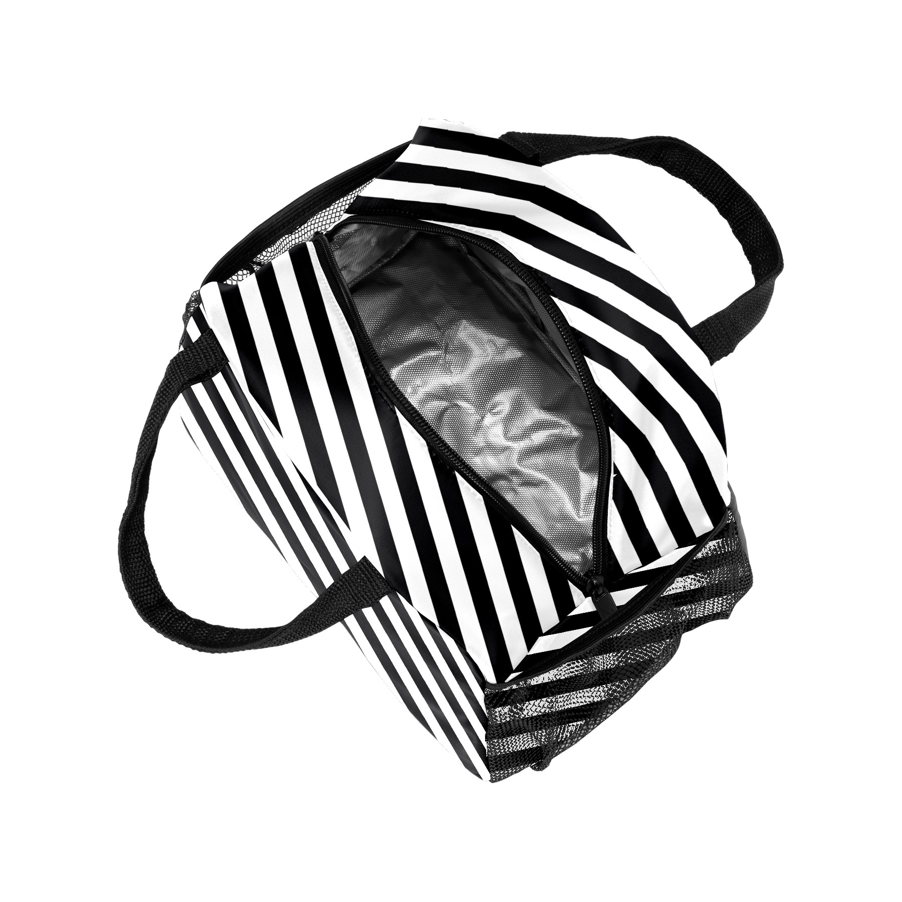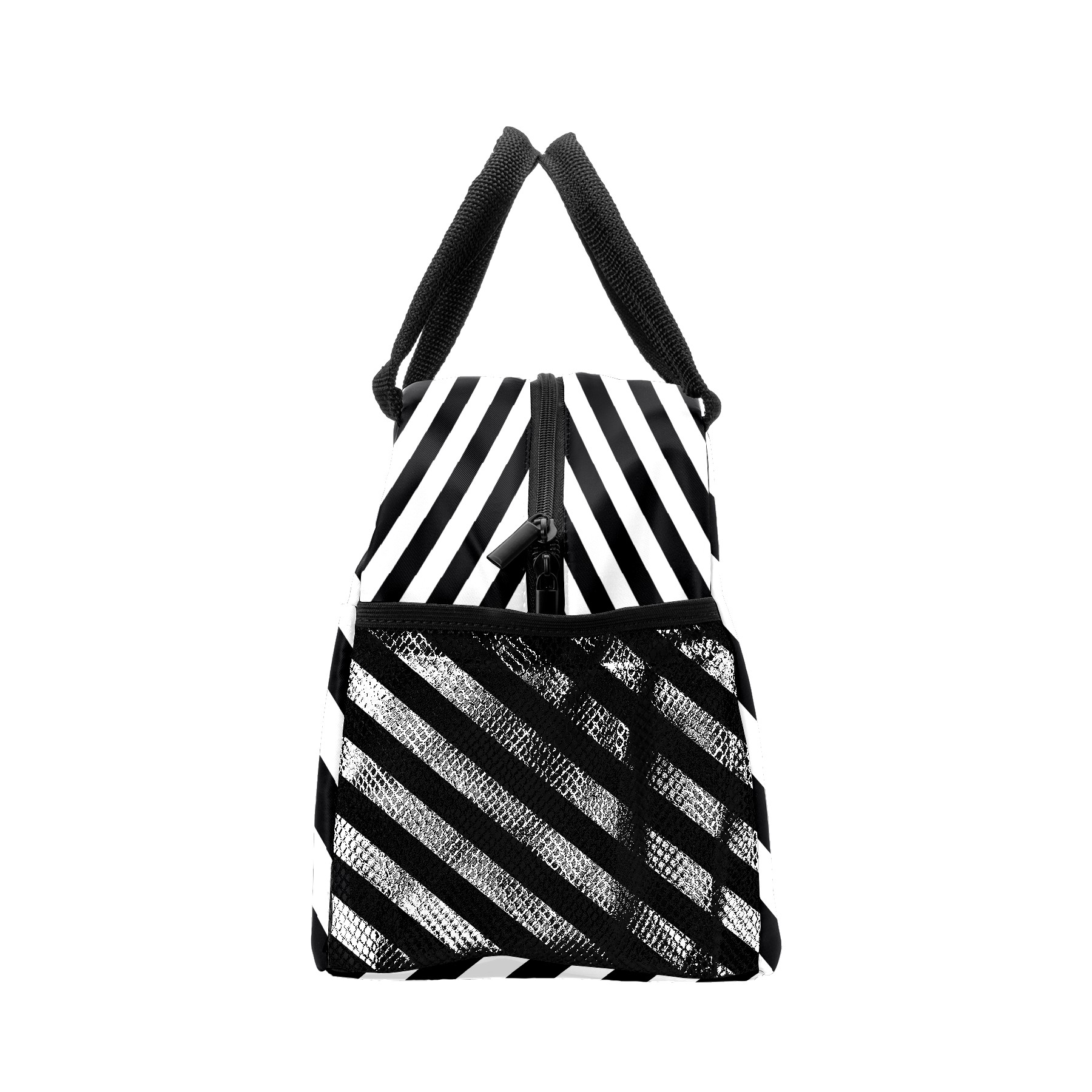 Lunch Bag for Women Men, Black White Stripe Insulated Reusable Lunch Box Thermal Cooler Tote Bag for Work Picnic Hiking Travel Beach