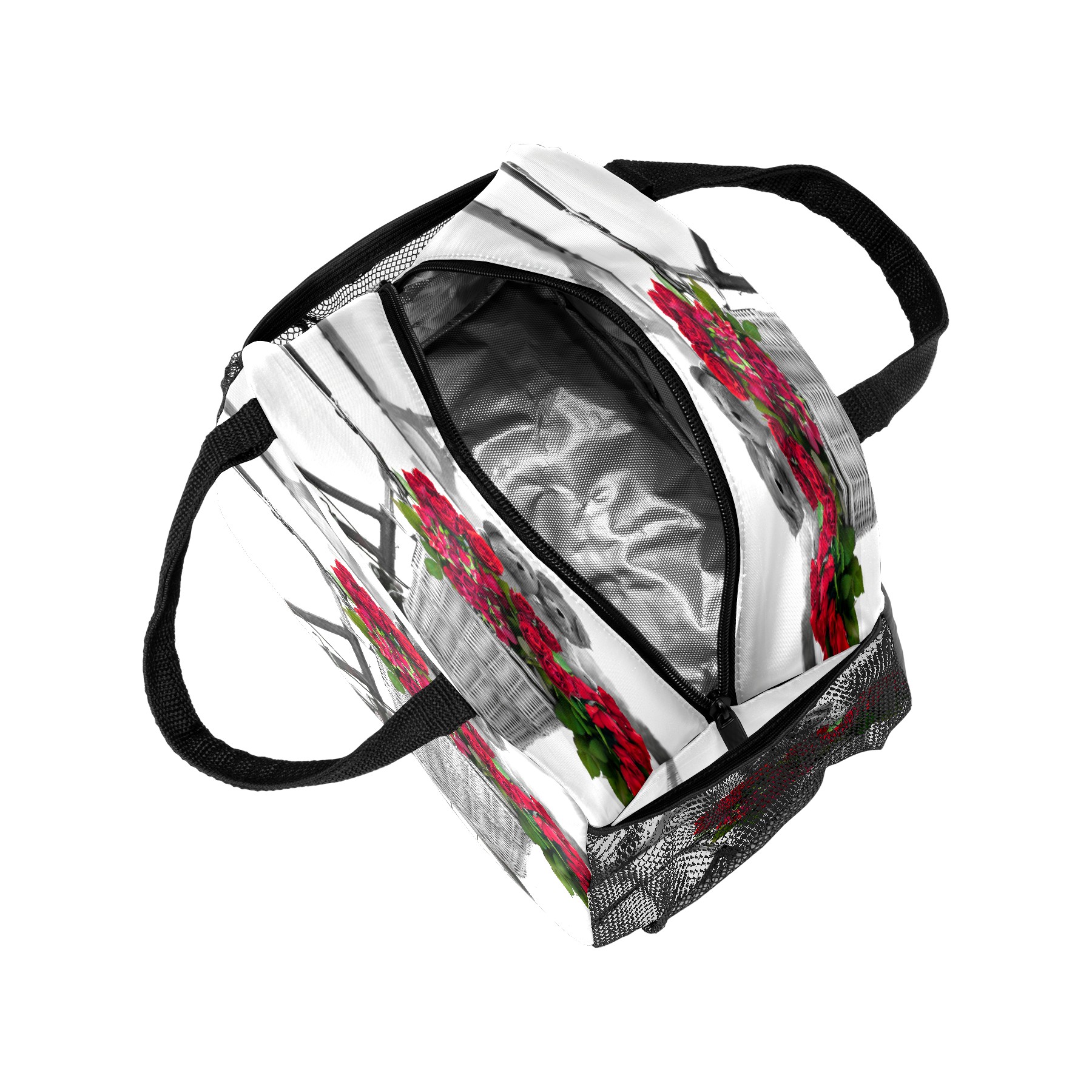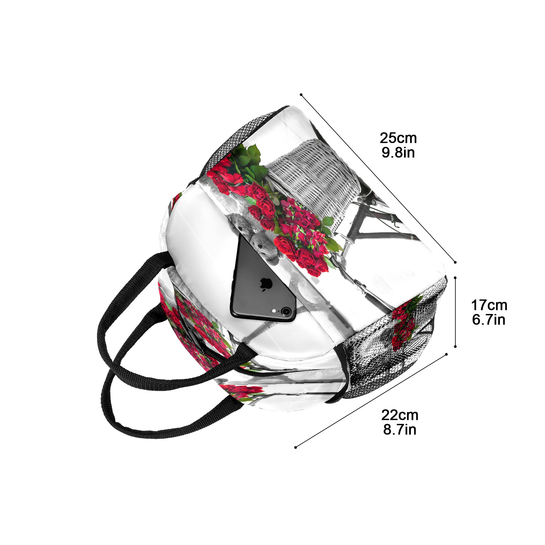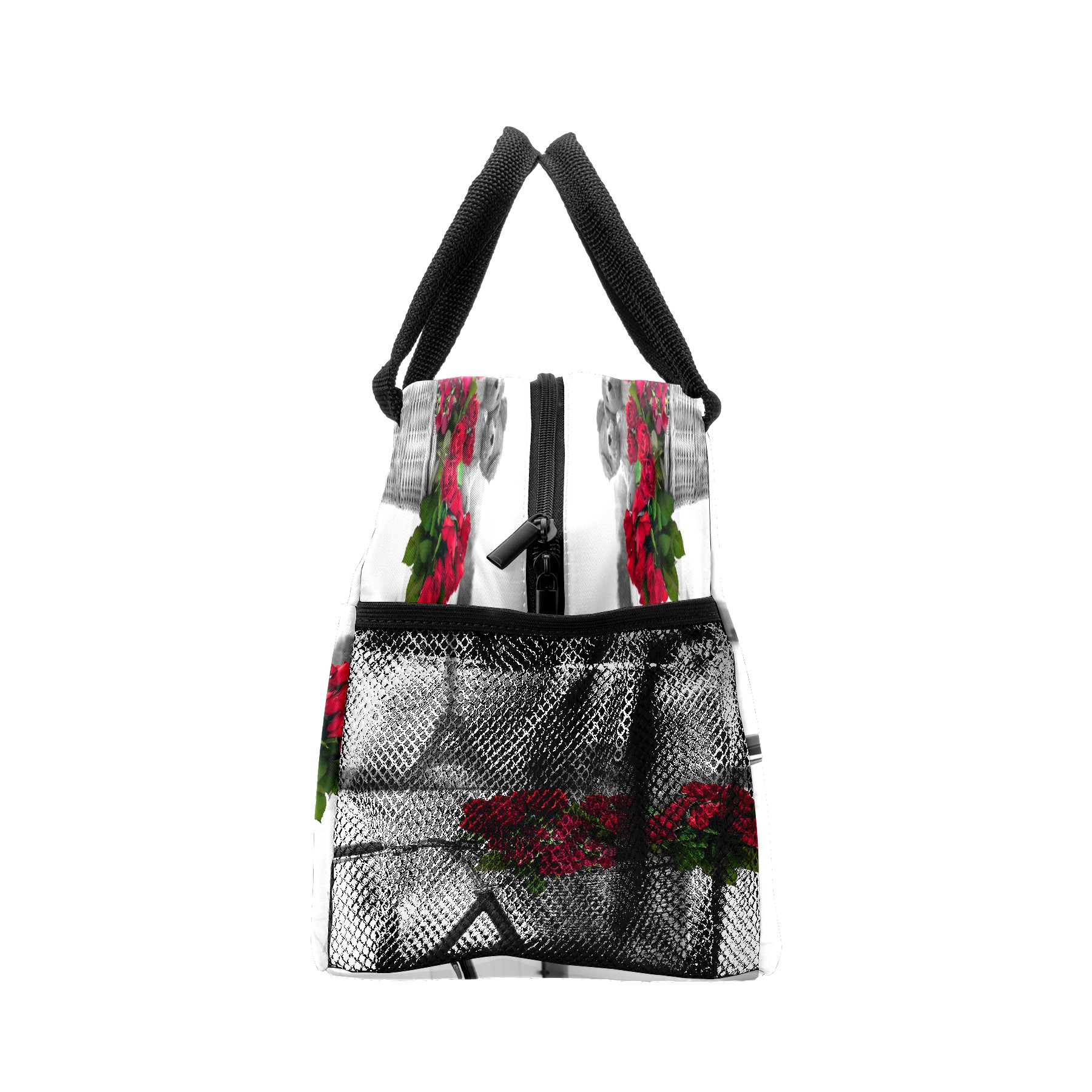 Lunch Bag for Women Men, Paris Eiffel Tower With Bike Rose Insulated Reusable Lunch Box Thermal Cooler Tote Bag for Work Picnic Hiking Travel Beach