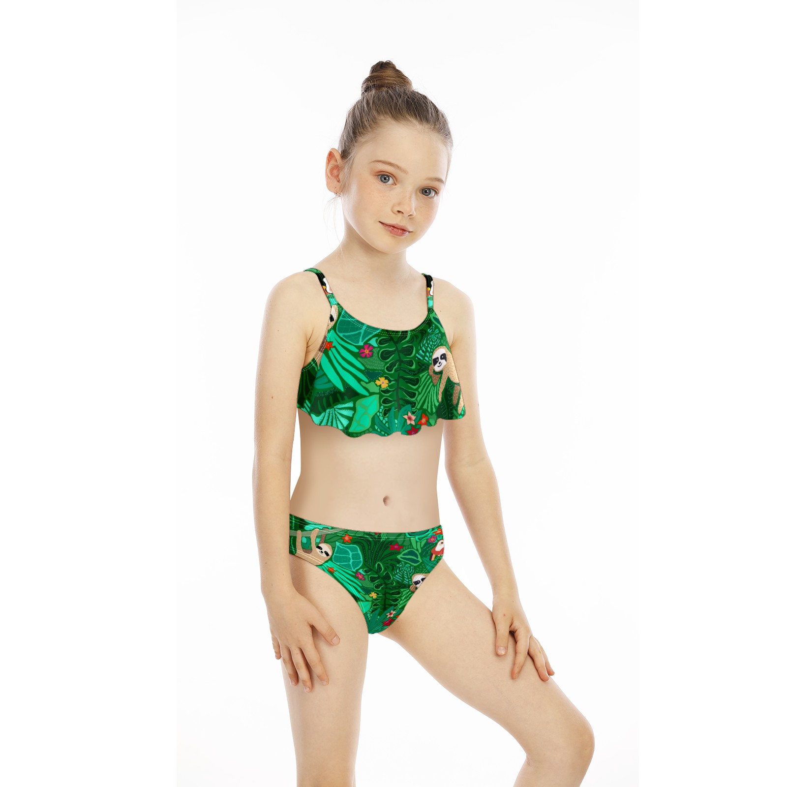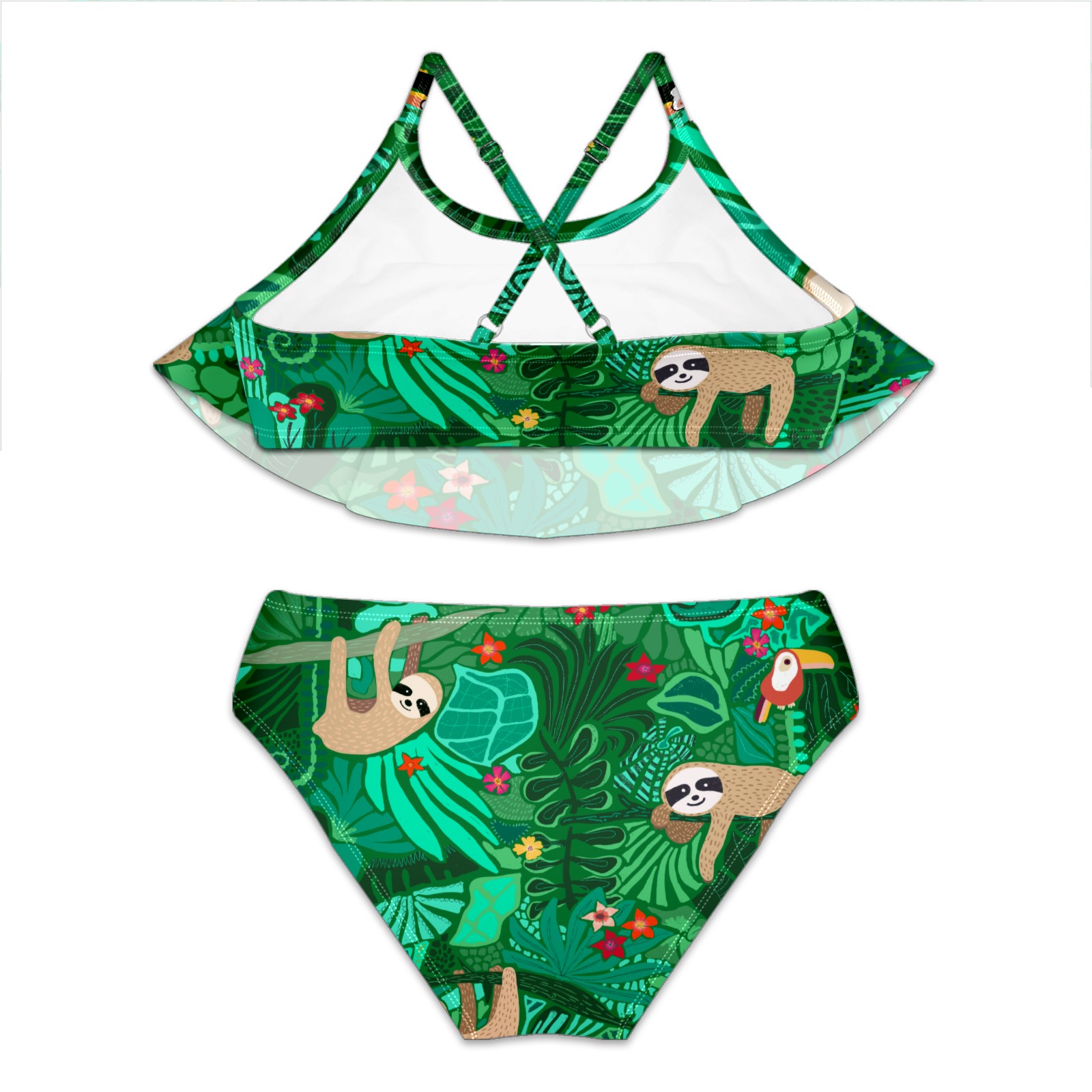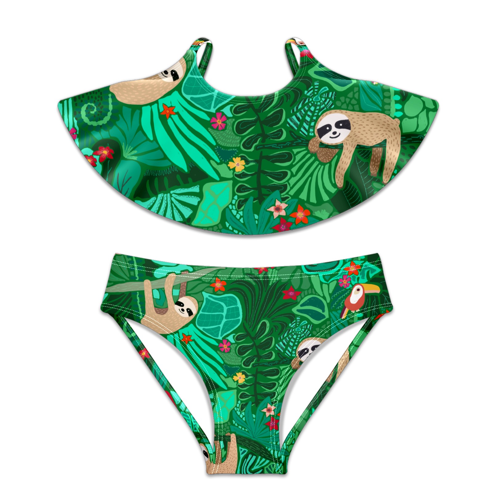 Swimsuits for Girls Two Pieces Bathing Suit Quick Dry Swimwear Cute Sloth On A Branch With Green Leaves S