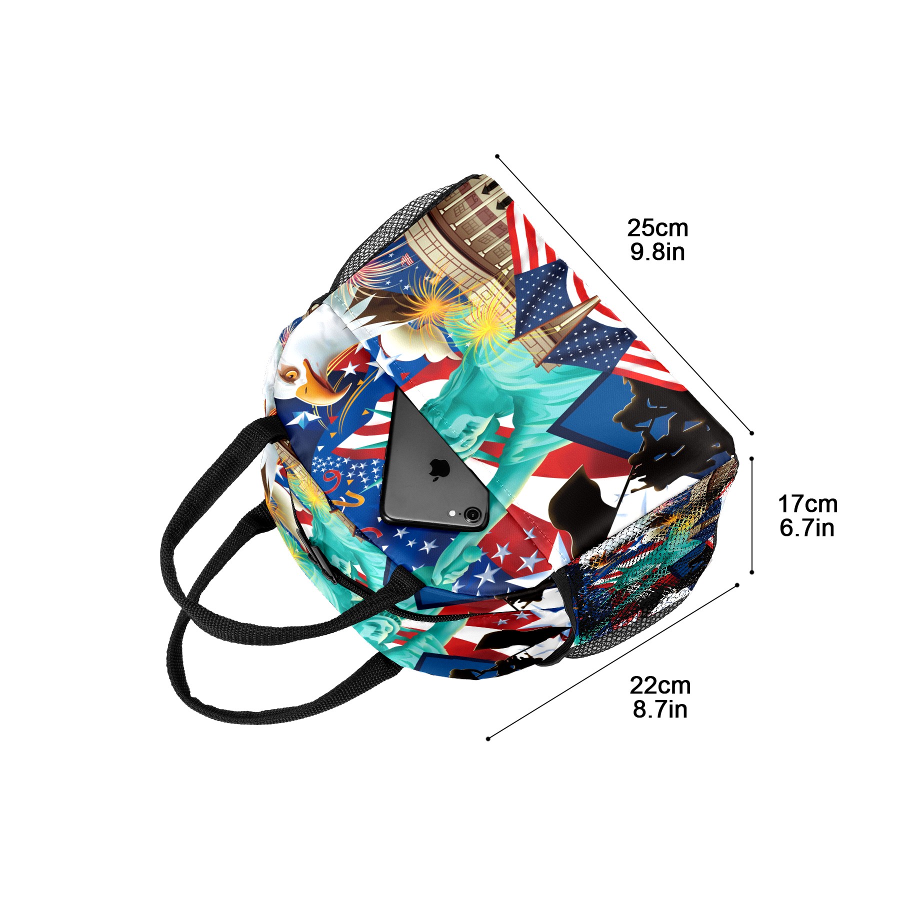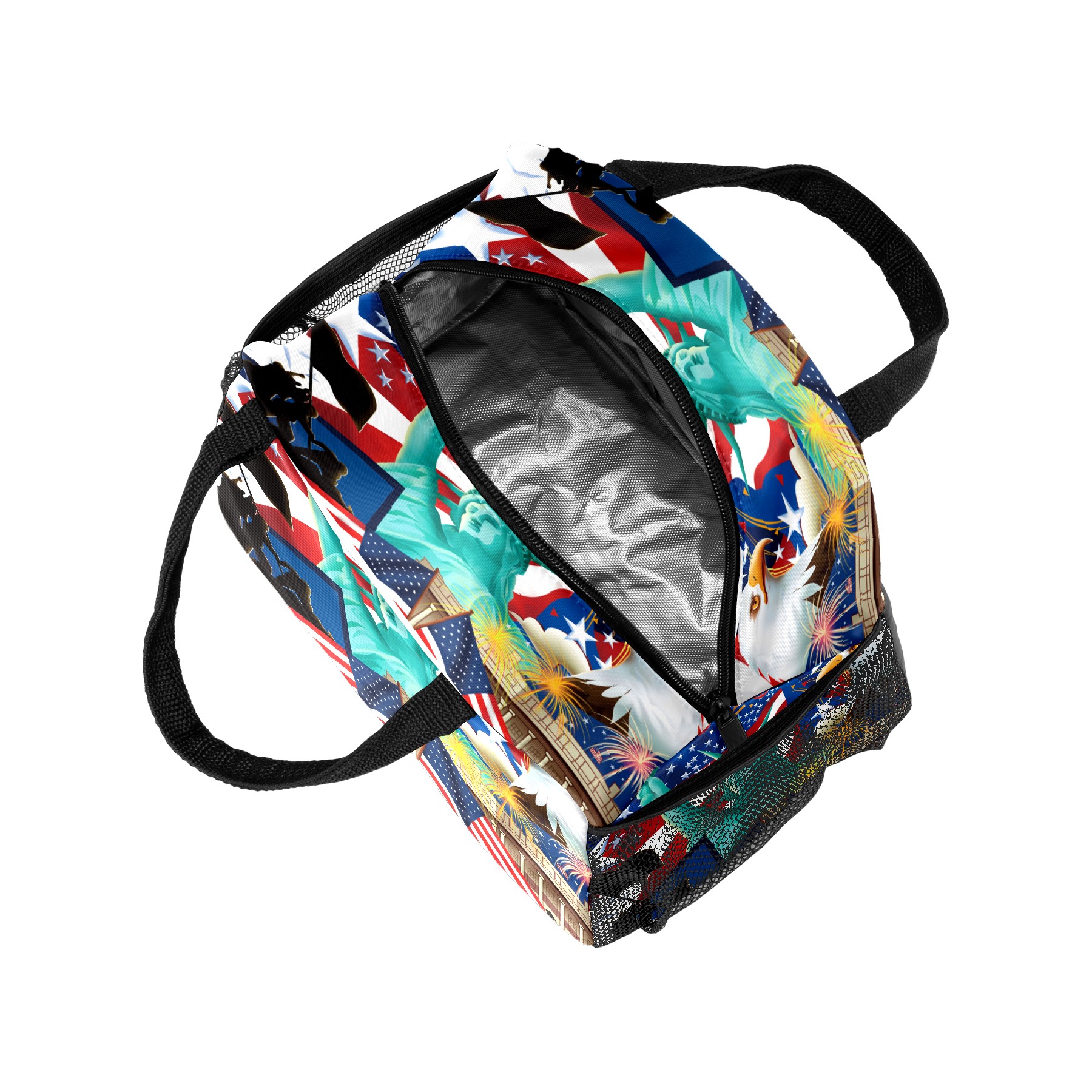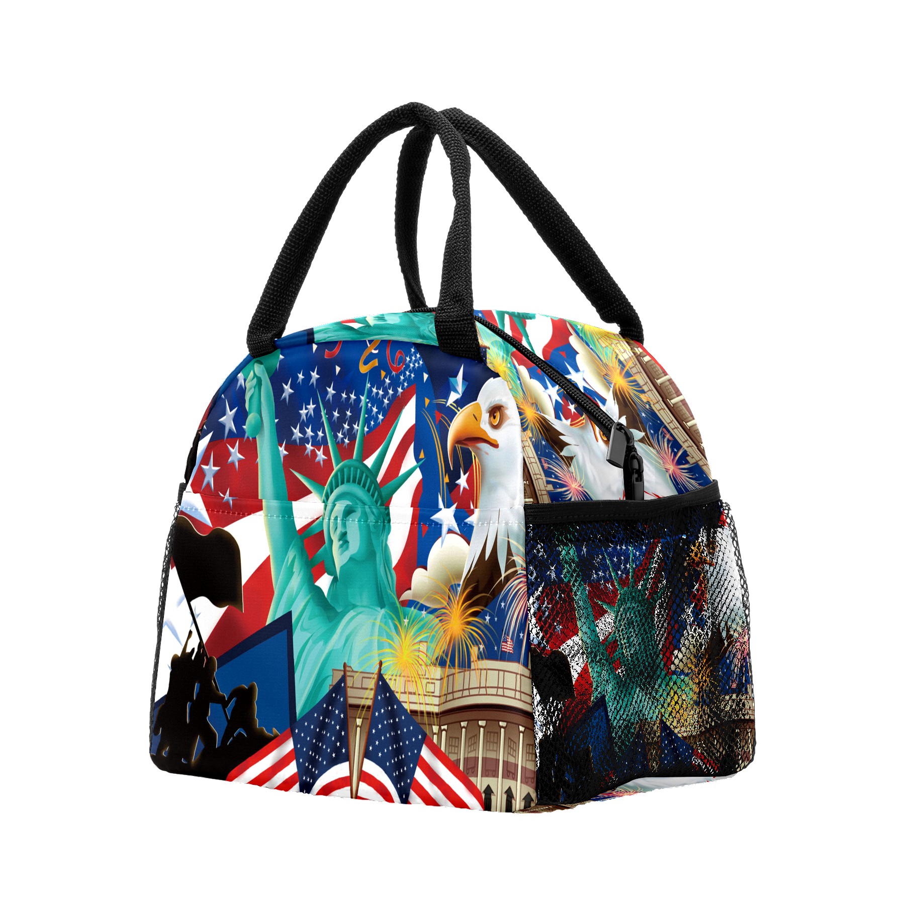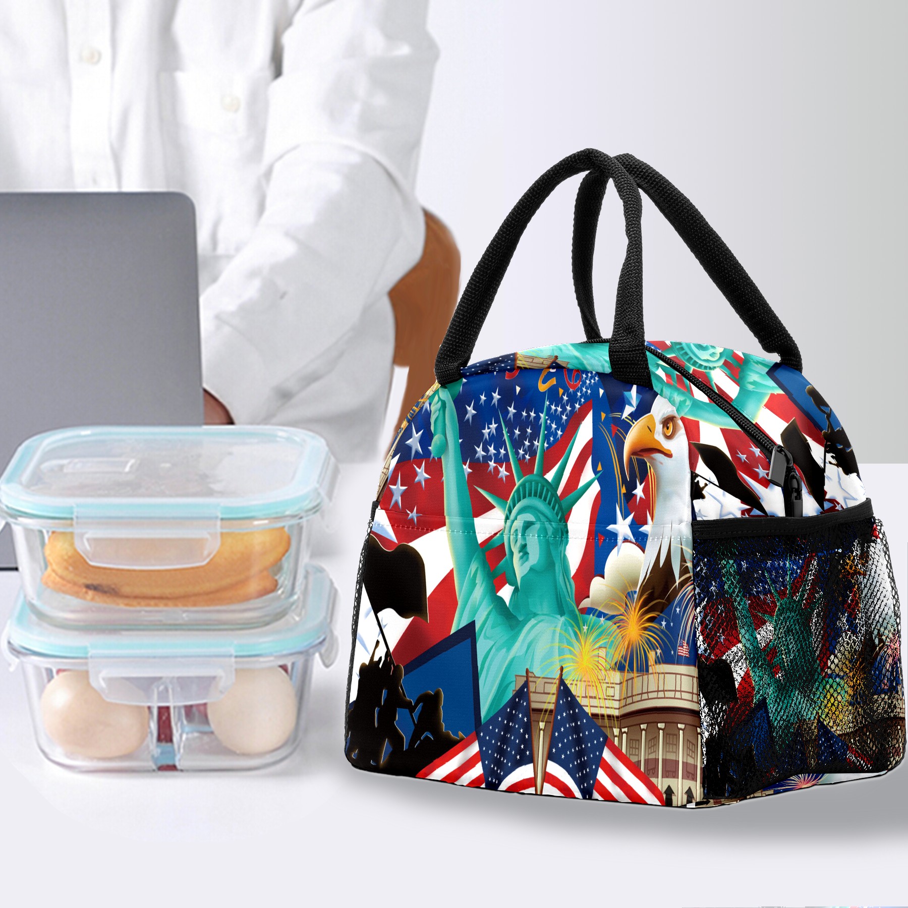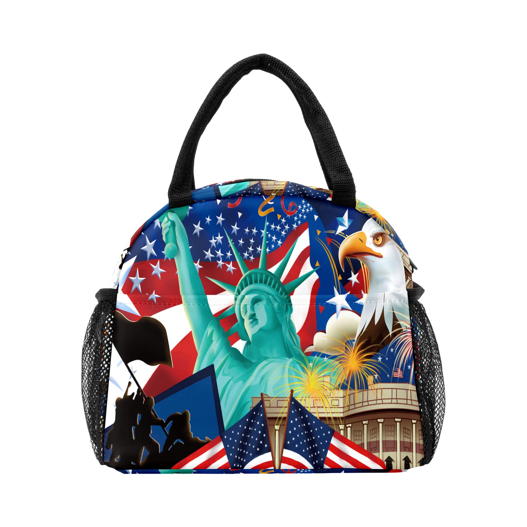 Lunch Bag for Women Men, Statue Of Liberty American Flag Eagle Insulated Reusable Lunch Box Thermal Cooler Tote Bag for Work Picnic Hiking Travel Beach