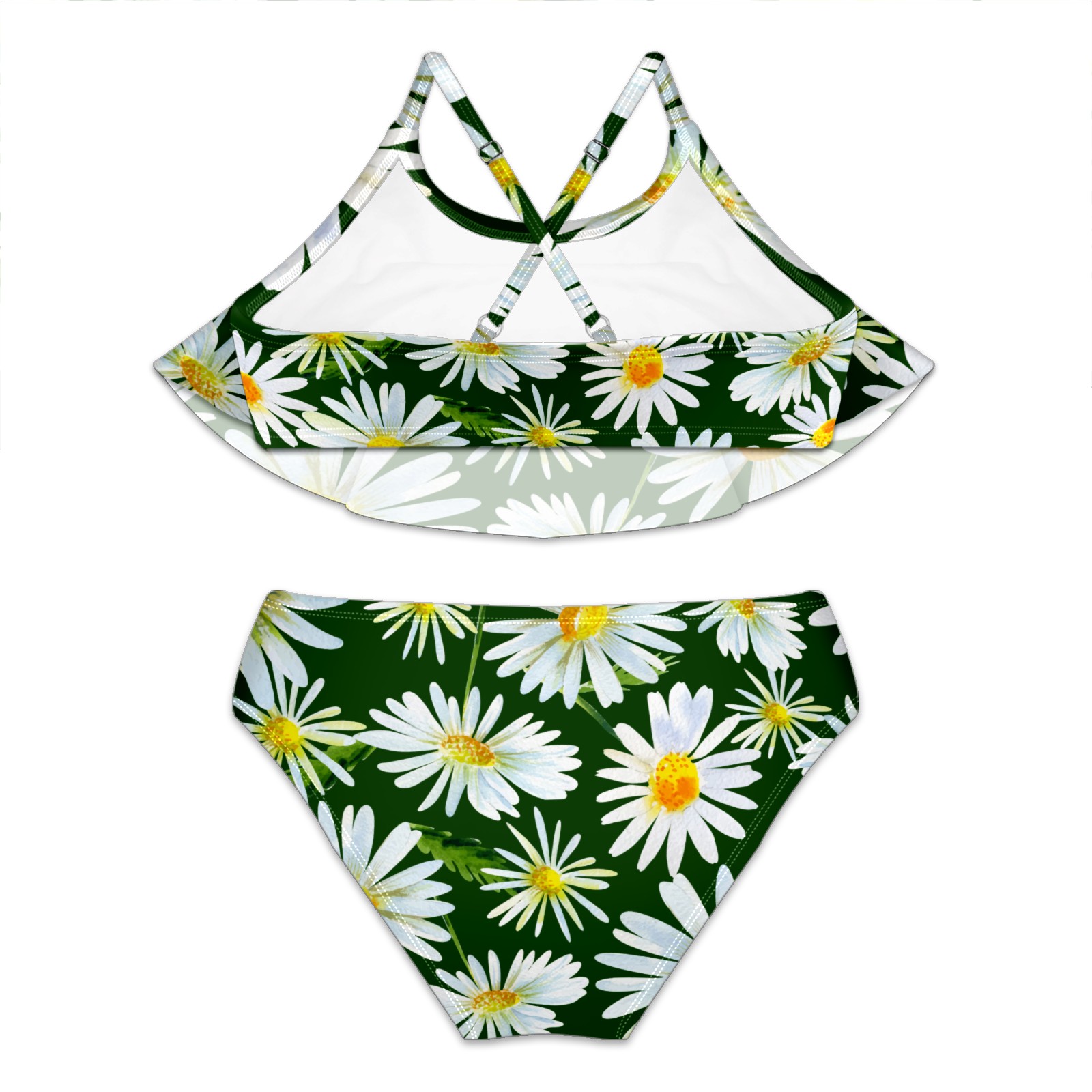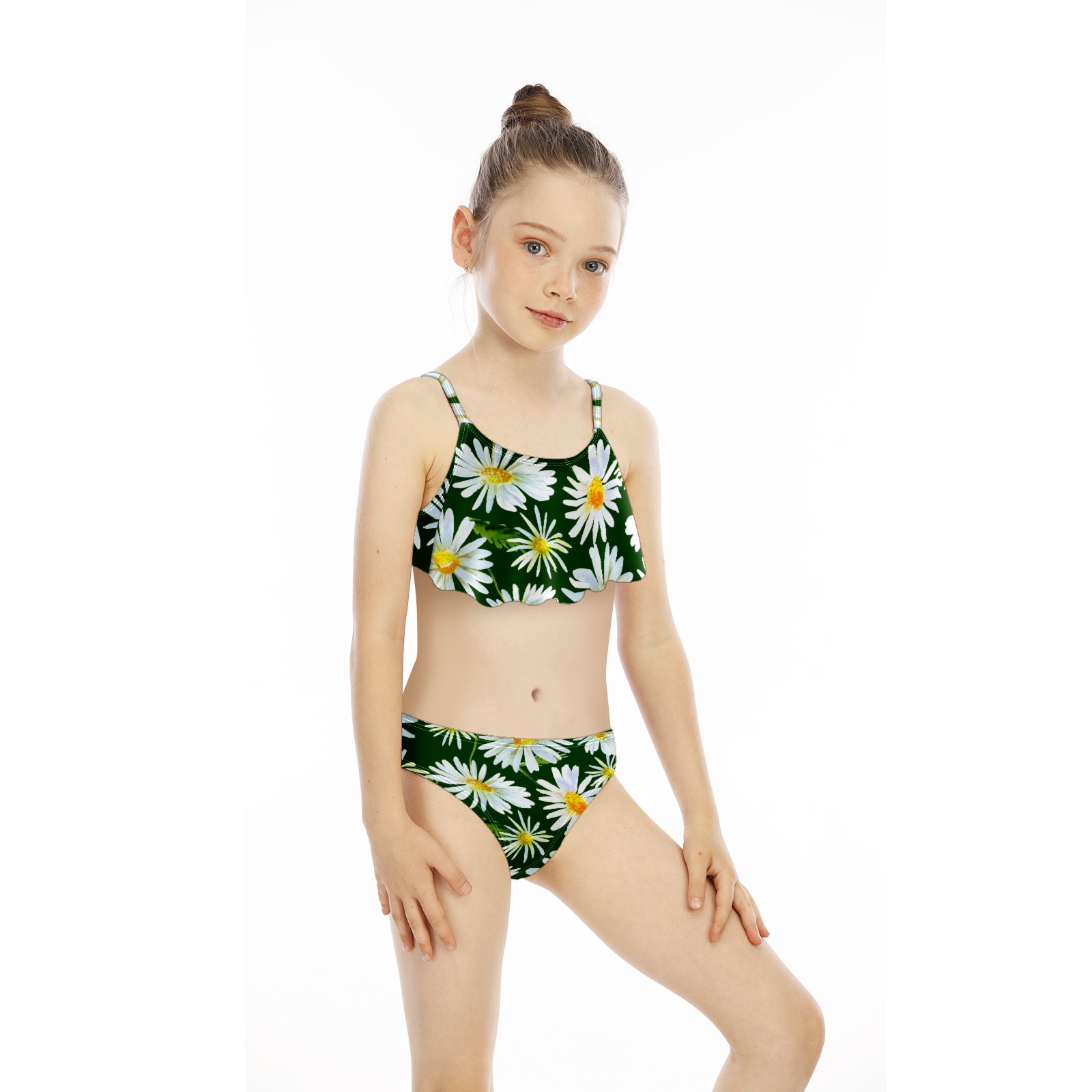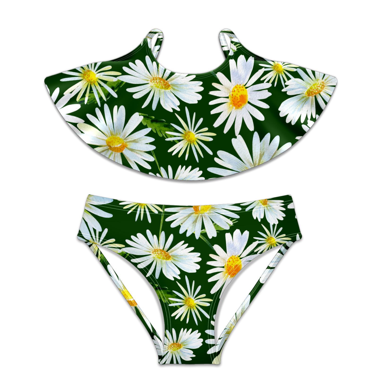 Swimsuits for Girls Two Pieces Bathing Suit Quick Dry Swimwear Daisy Floral Pattern Green S