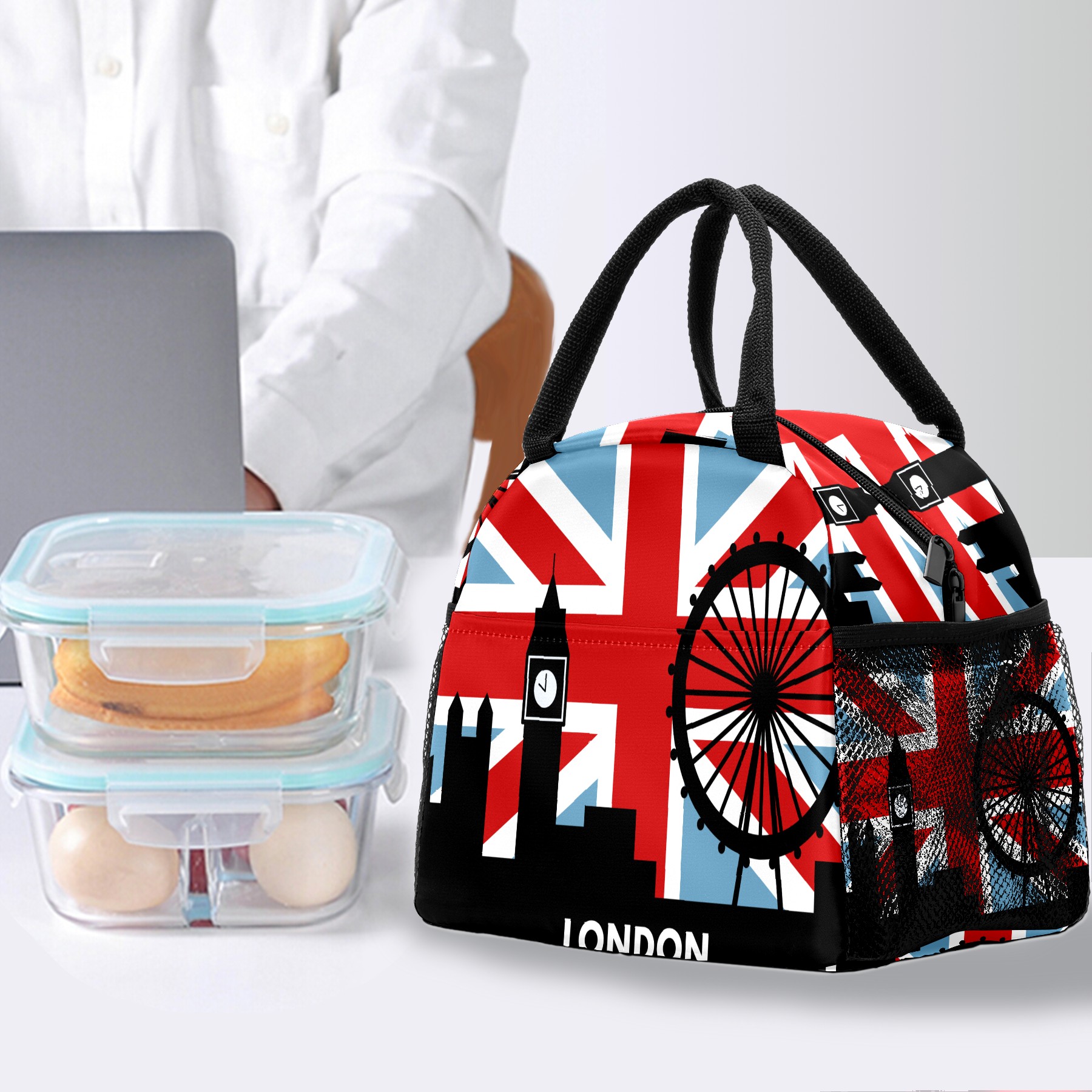 Lunch Bag for Women Men, UK British Flag London Insulated Reusable Lunch Box Thermal Cooler Tote Bag for Work Picnic Hiking Travel Beach