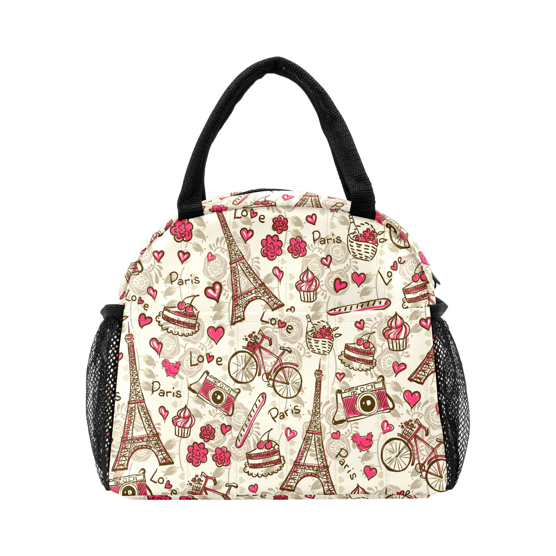 Lunch Bag for Women Men, Retro Paris Eiffel Tower Insulated Reusable Lunch Box Thermal Cooler Tote Bag for Work Picnic Hiking Travel Beach