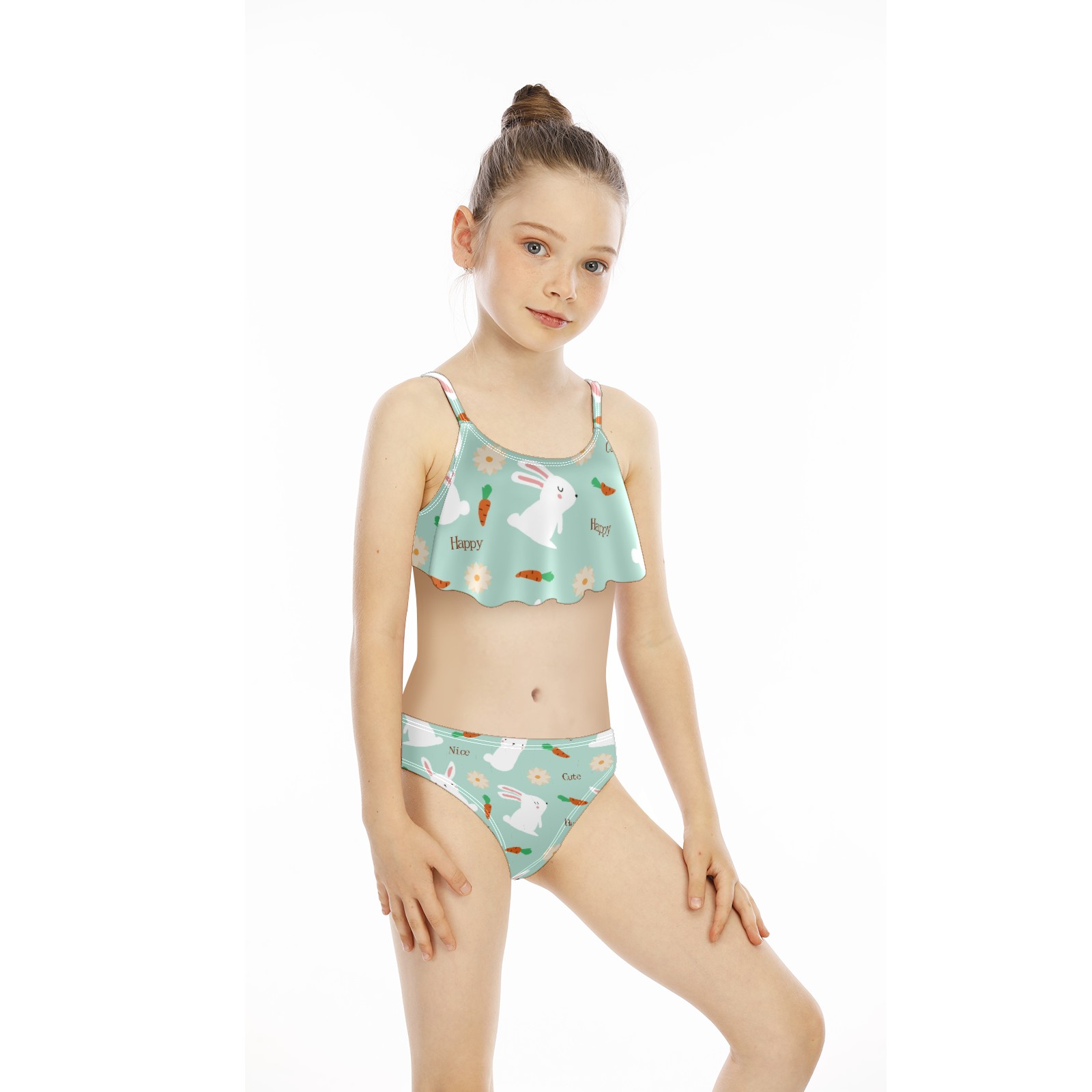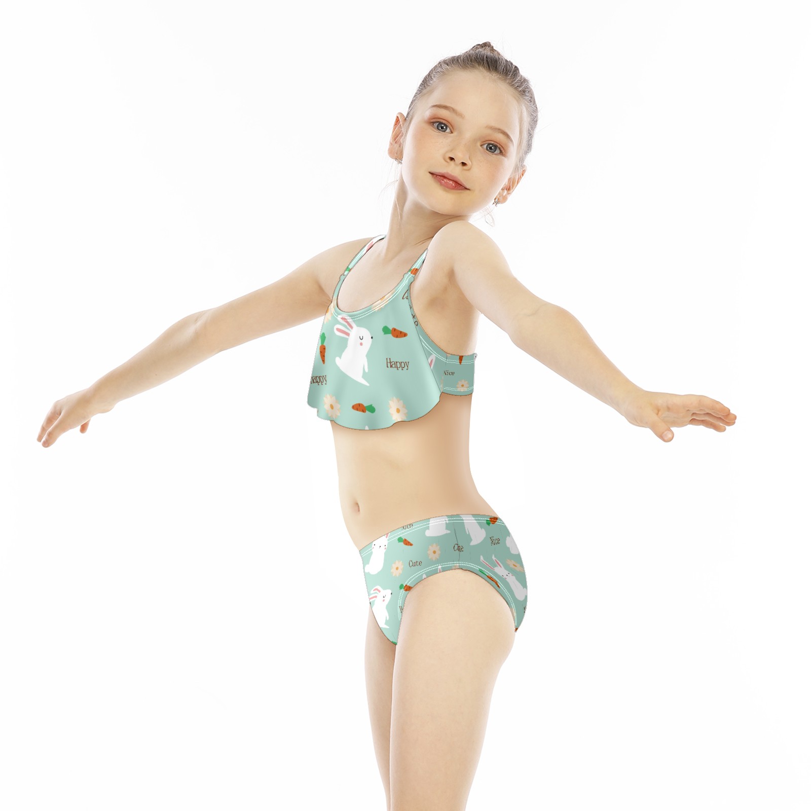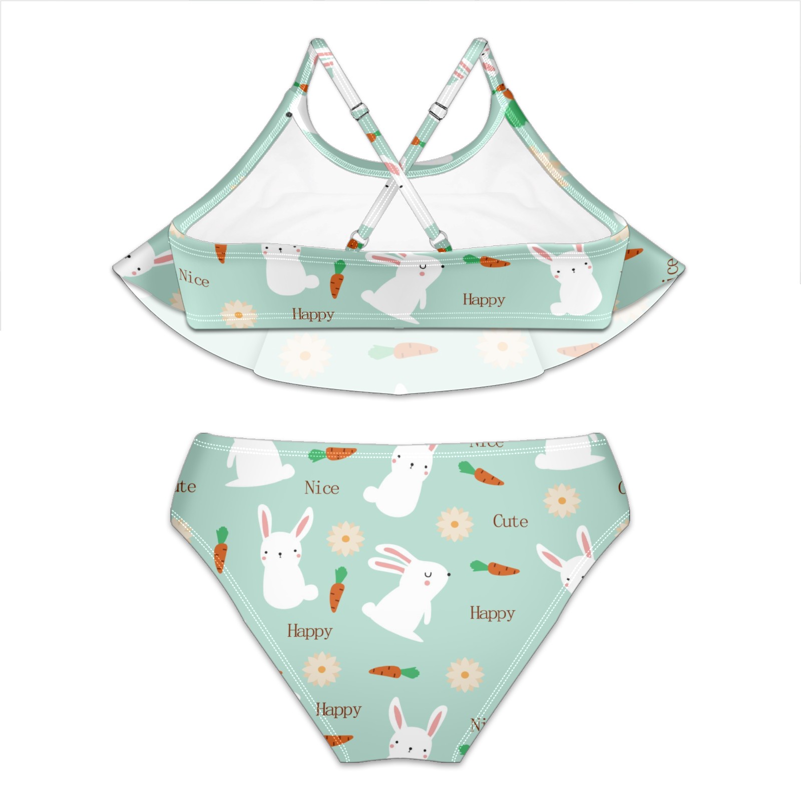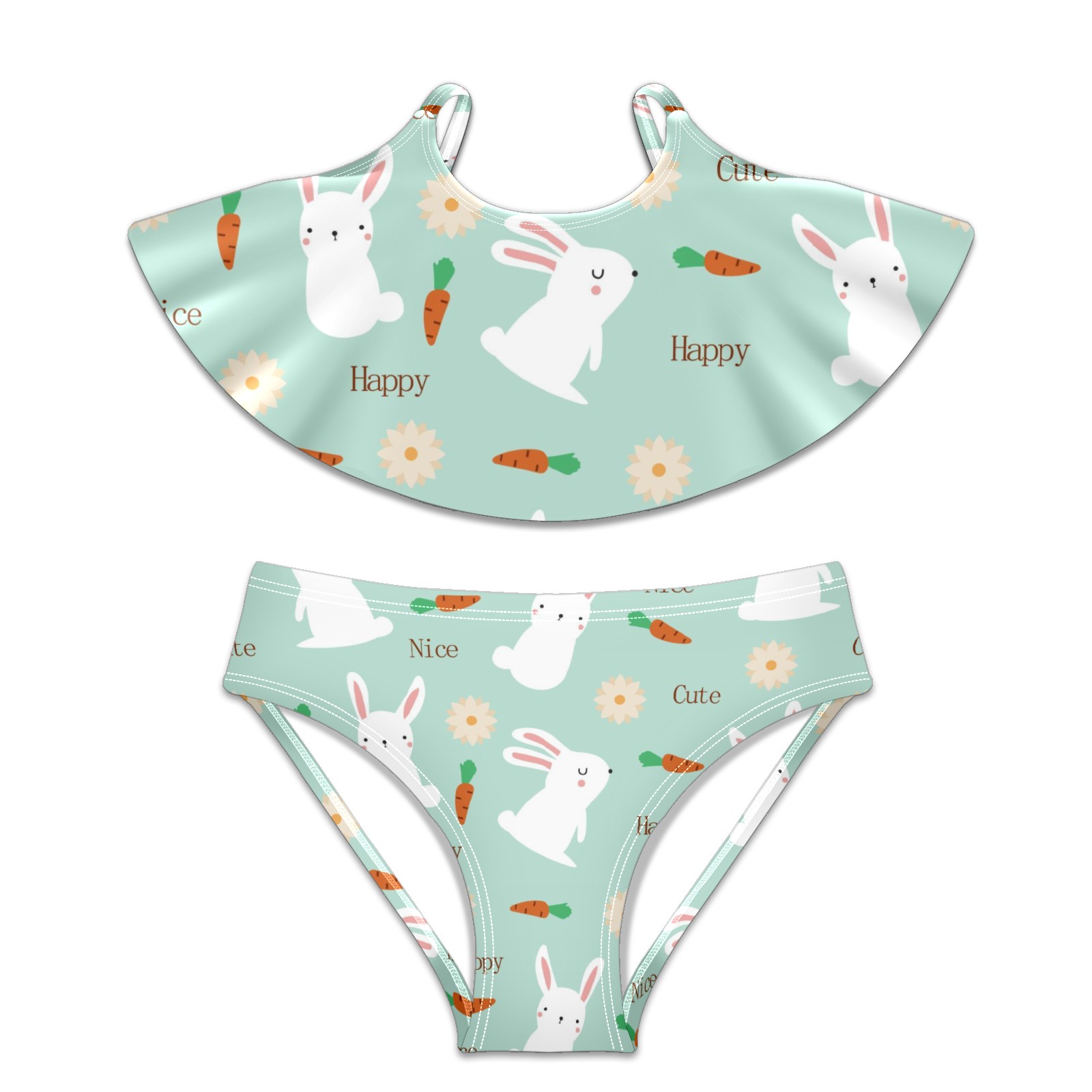 Swimsuits for Girls Two Pieces Bathing Suit Quick Dry Swimwear Cute White Rabbits Bunny Carrot Floral Happy Nice Light Blue S