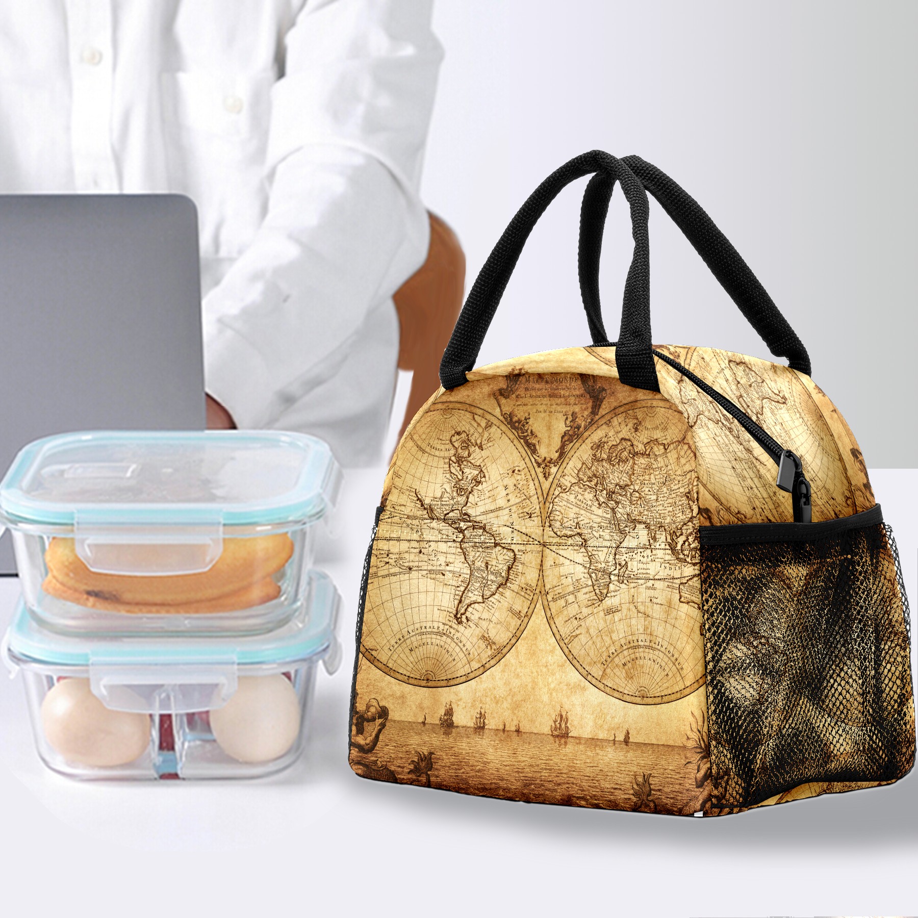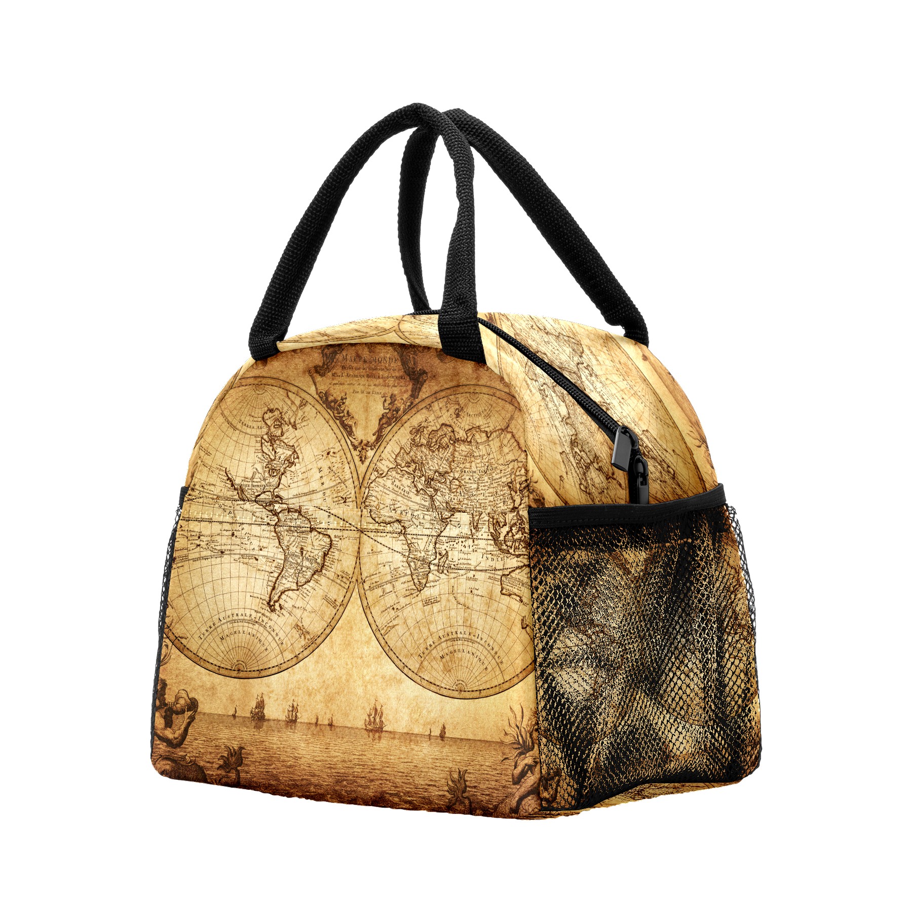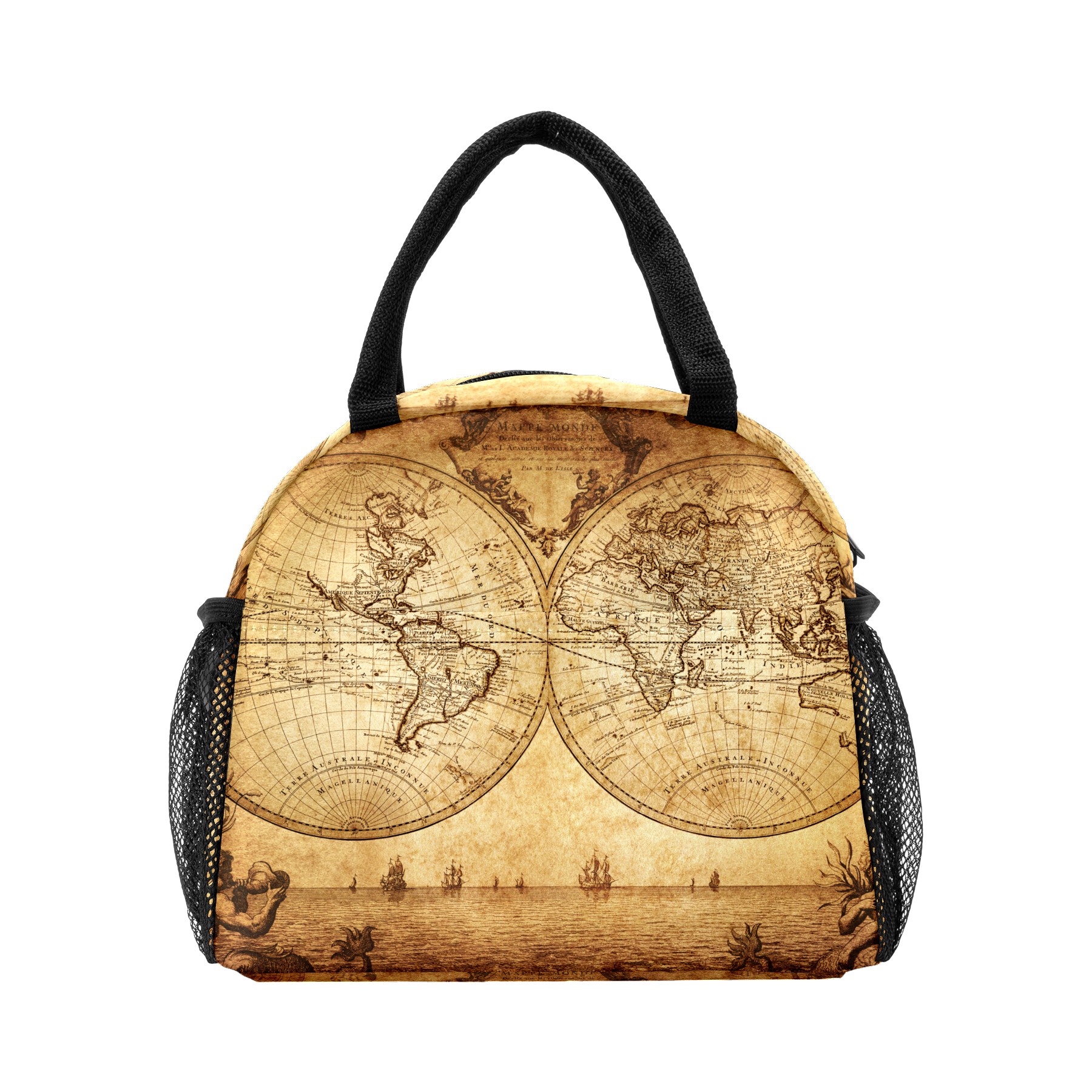 Lunch Bag for Women Men, Retro Old World Map Antique Insulated Reusable Lunch Box Thermal Cooler Tote Bag for Work Picnic Hiking Travel Beach