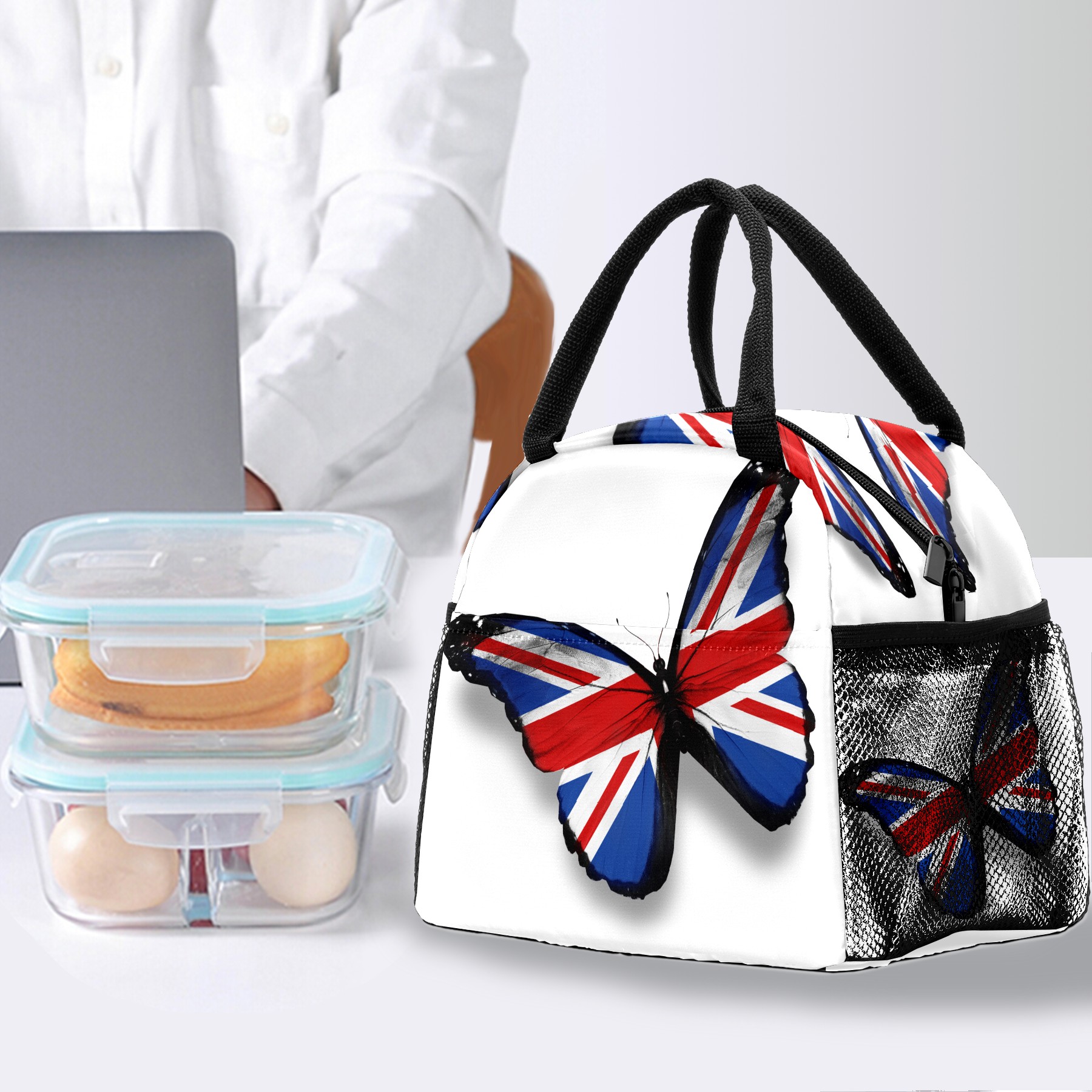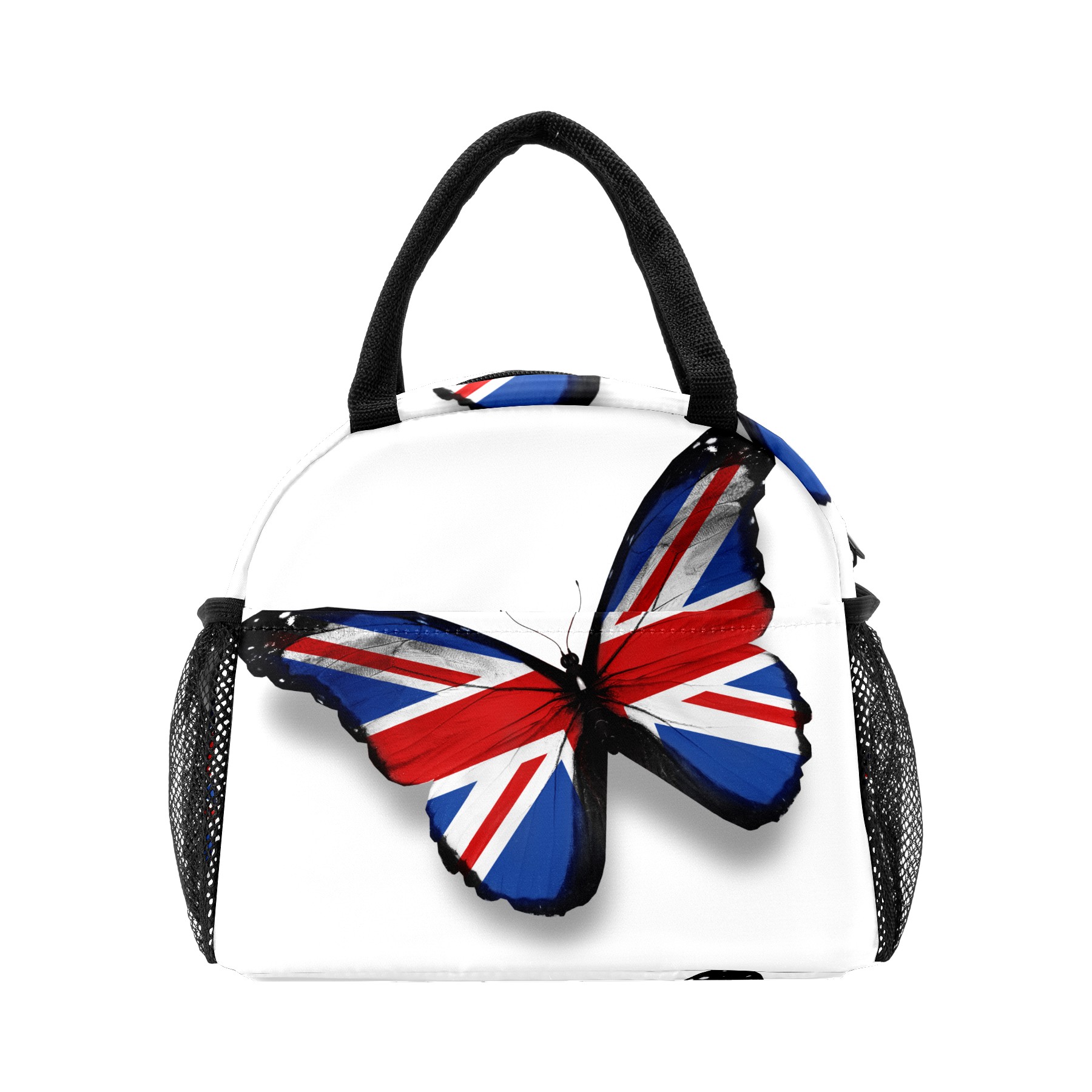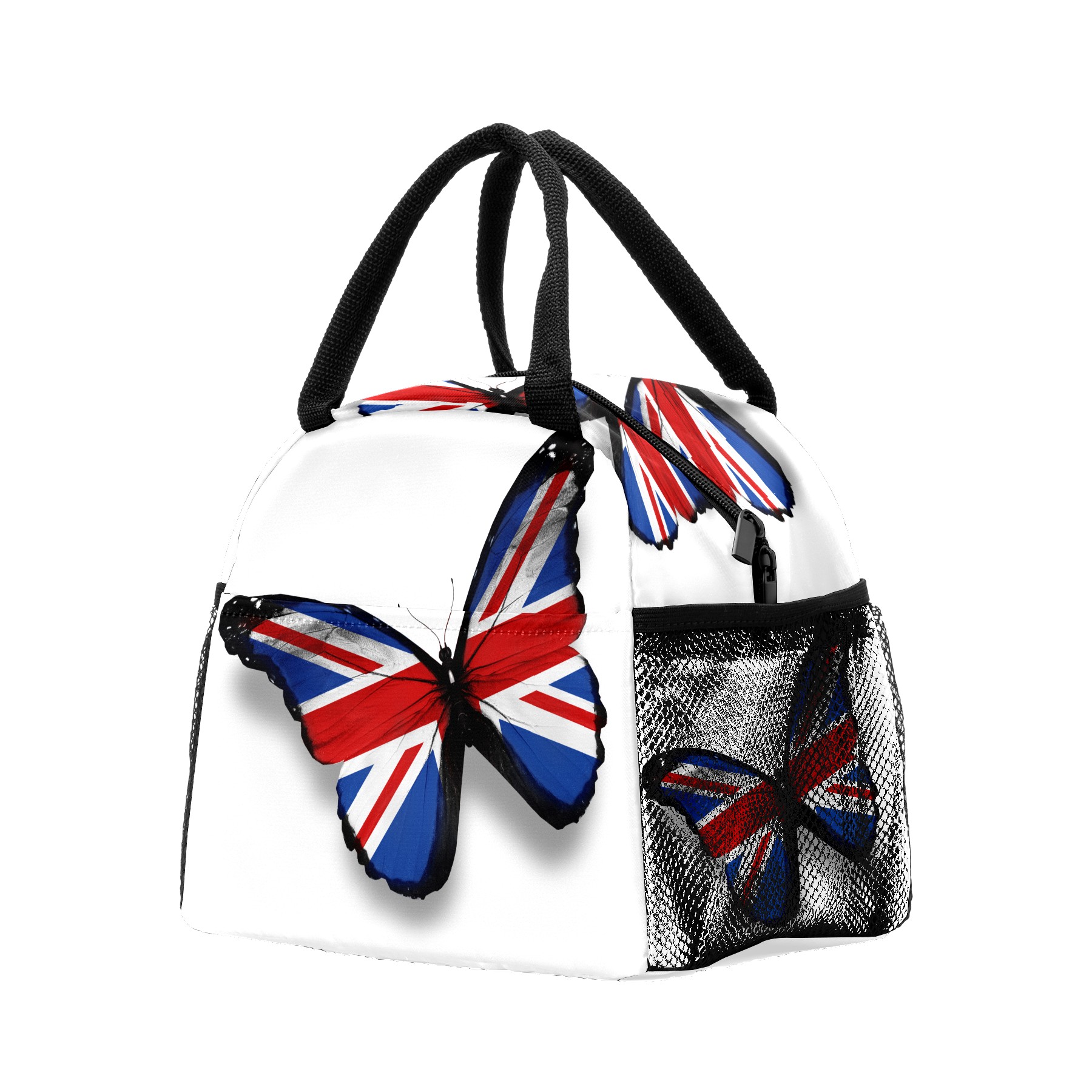 Lunch Bag for Women Men, UK British Flag Butterfly Design Insulated Reusable Lunch Box Thermal Cooler Tote Bag for Work Picnic Hiking Travel Beach