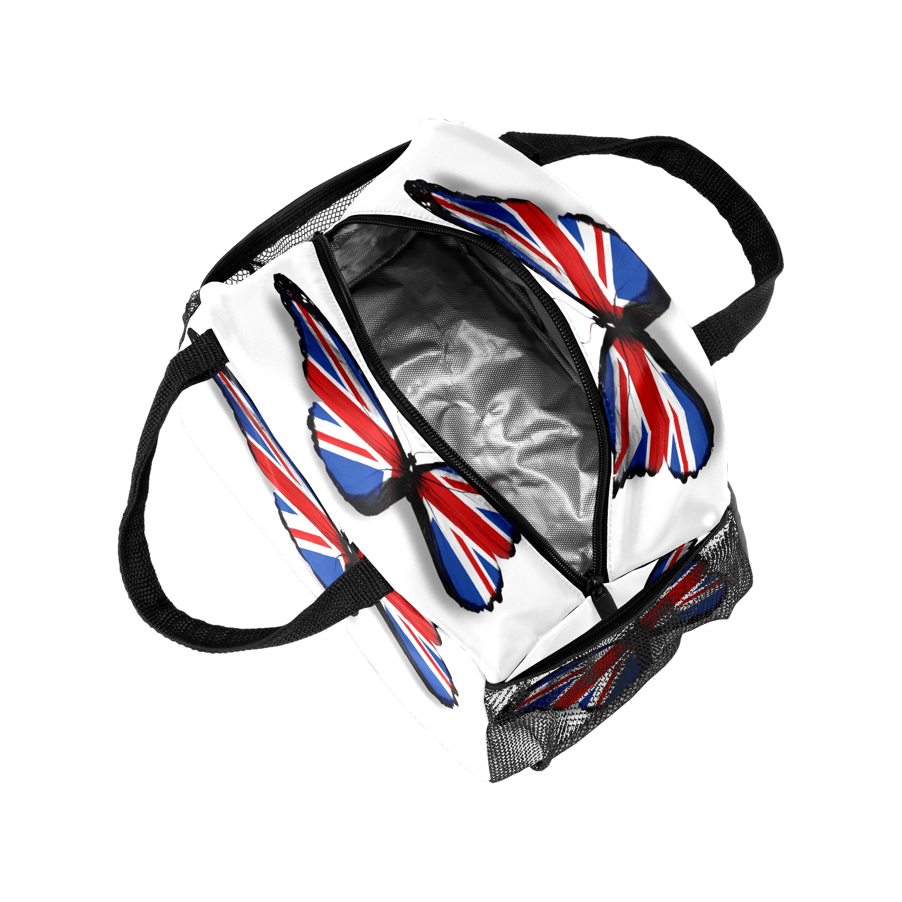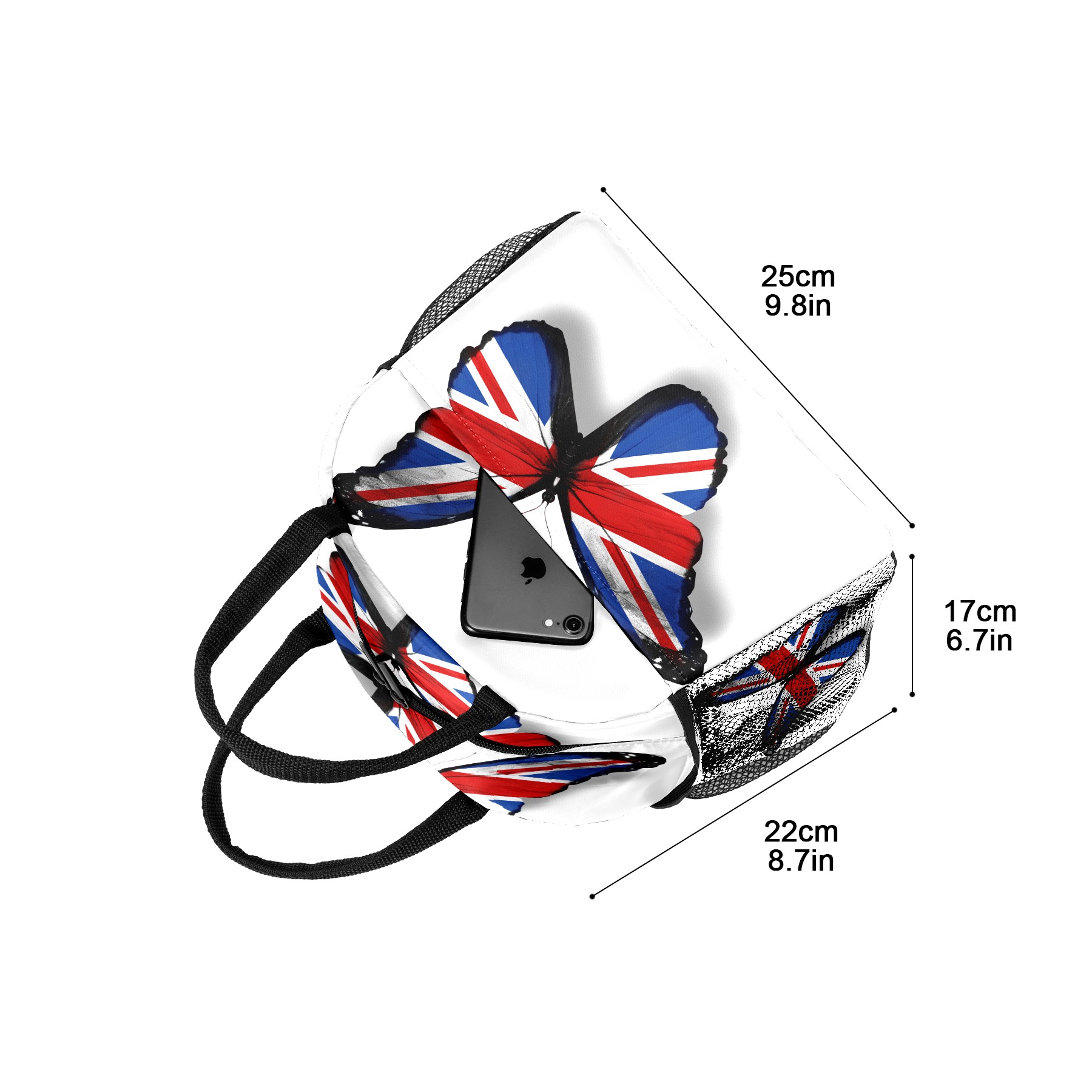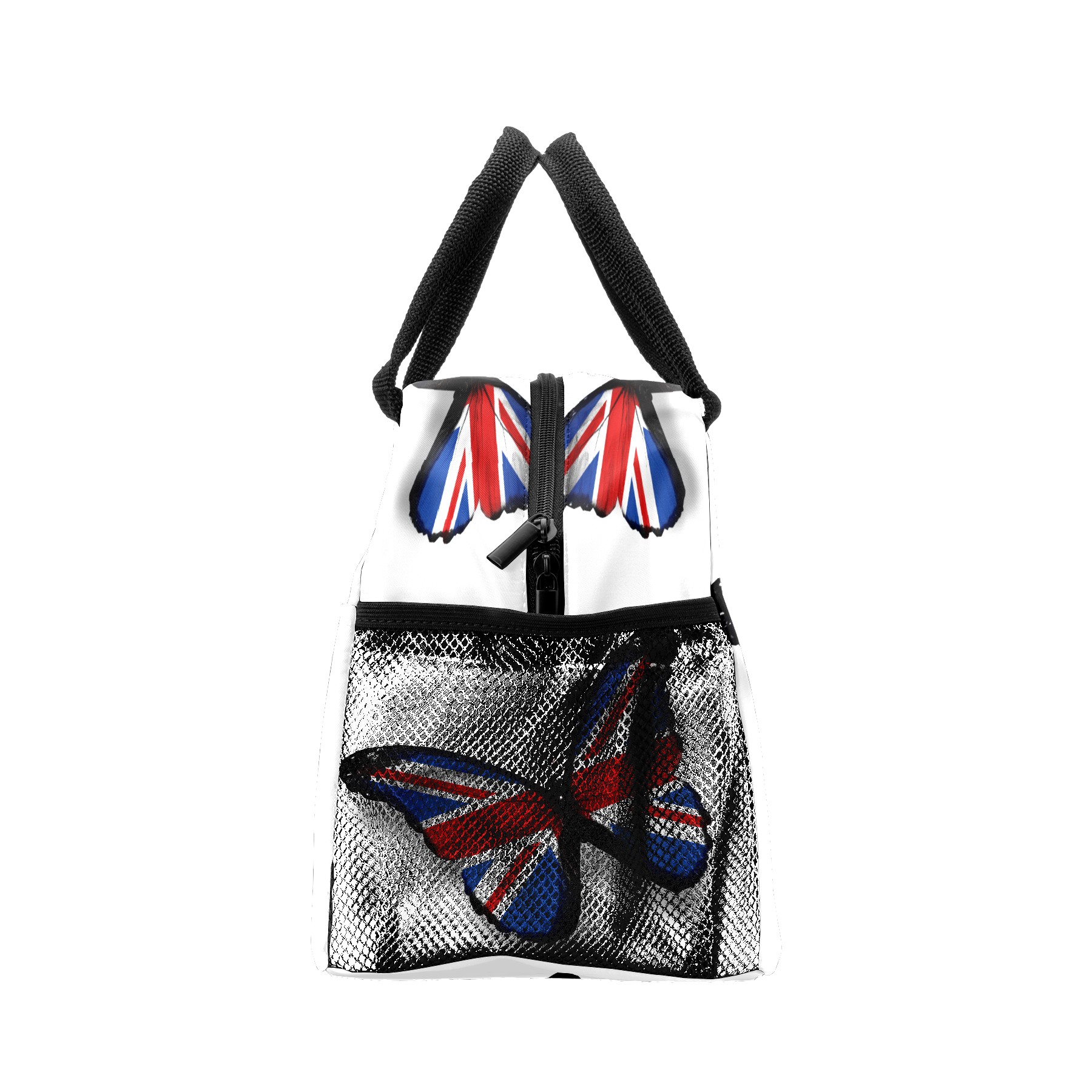 Lunch Bag for Women Men, UK British Flag Butterfly Design Insulated Reusable Lunch Box Thermal Cooler Tote Bag for Work Picnic Hiking Travel Beach