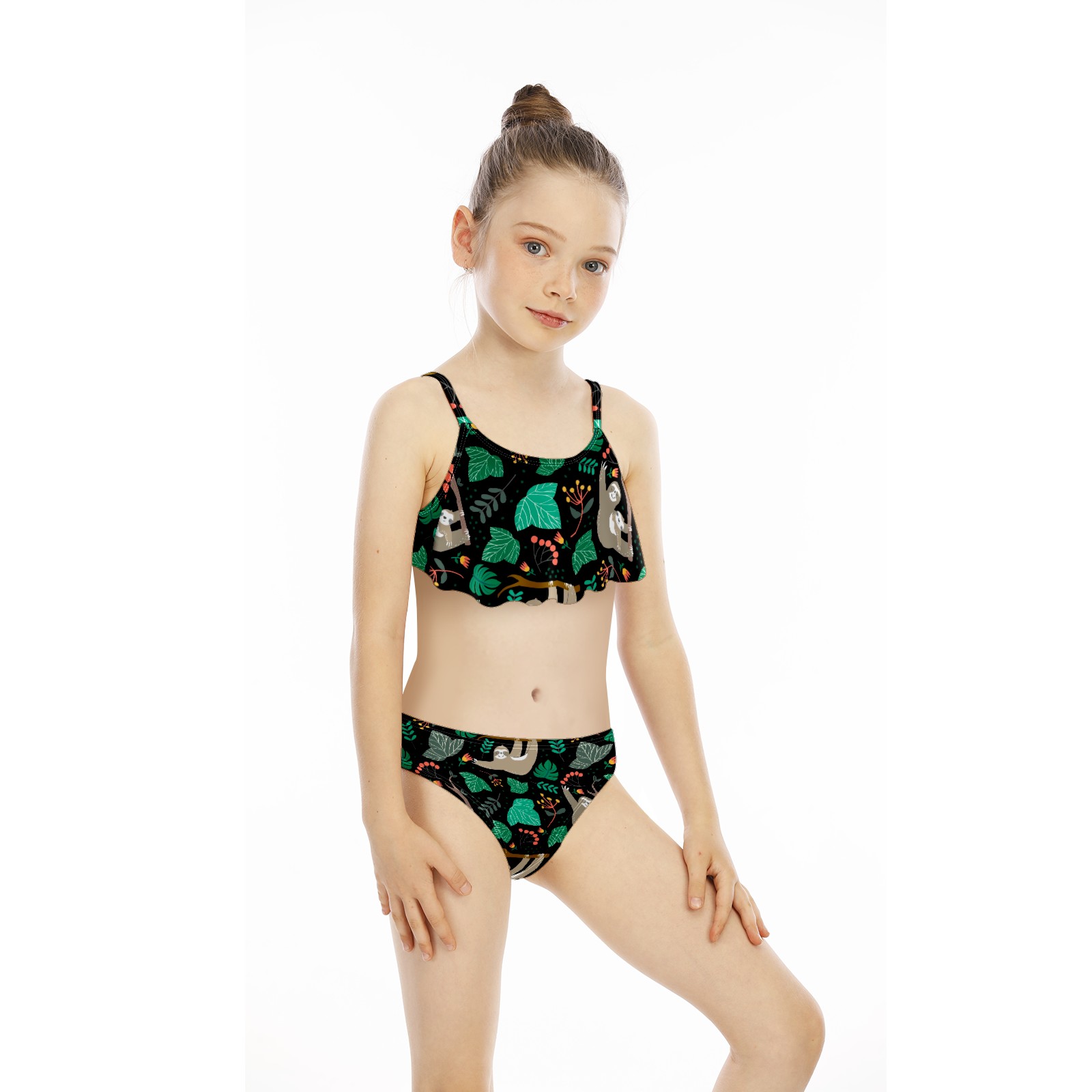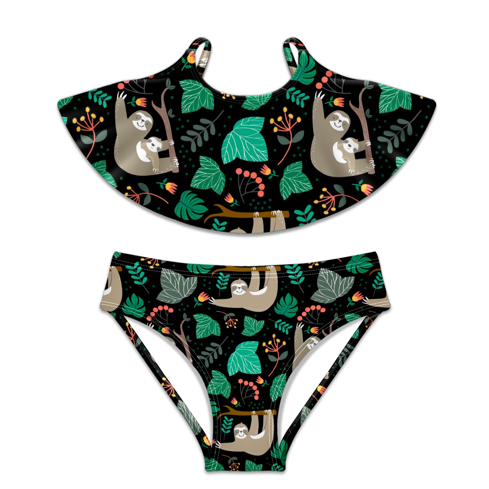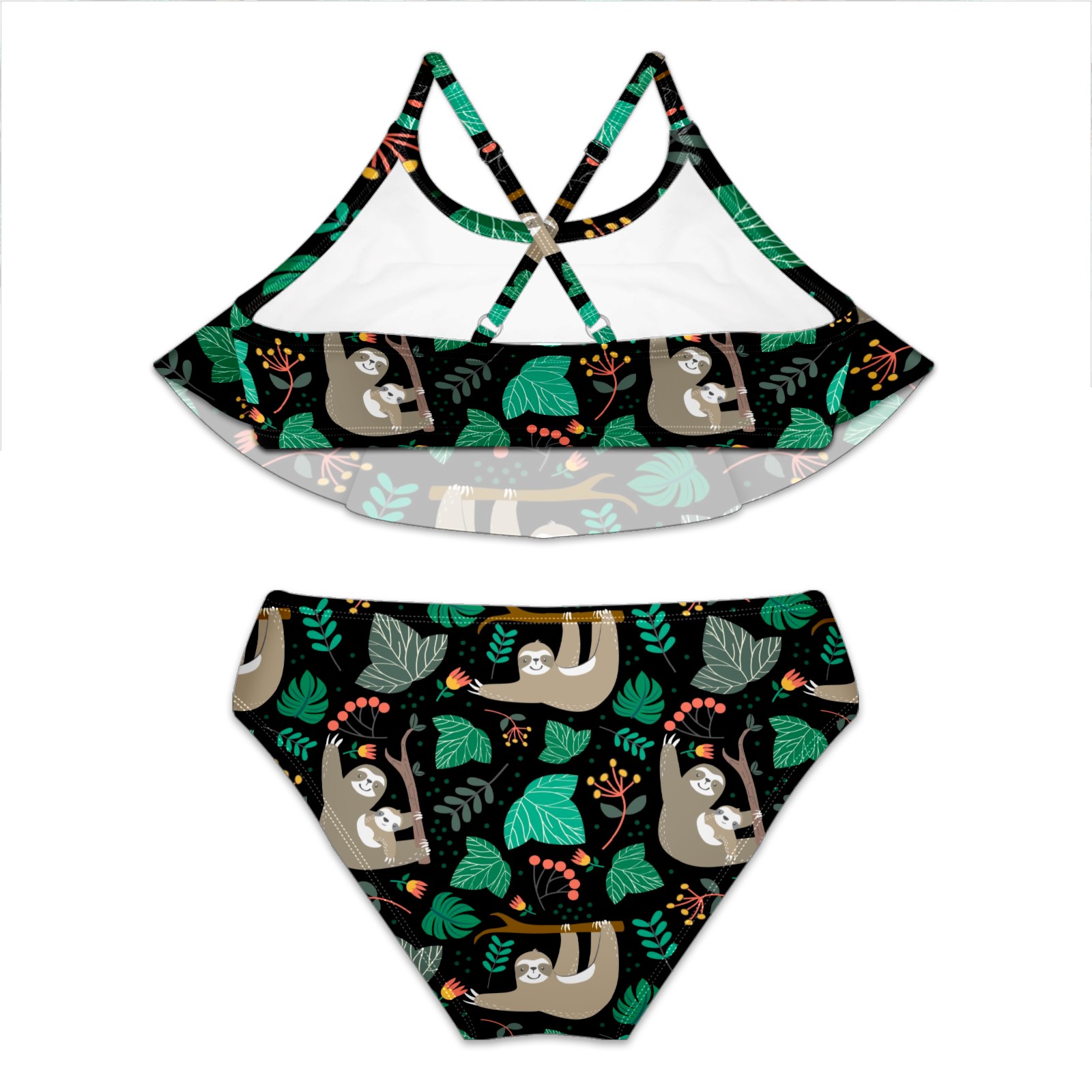 Swimsuits for Girls Two Pieces Bathing Suit Quick Dry Swimwear Cute Sloth Floral Leaves Pattern S