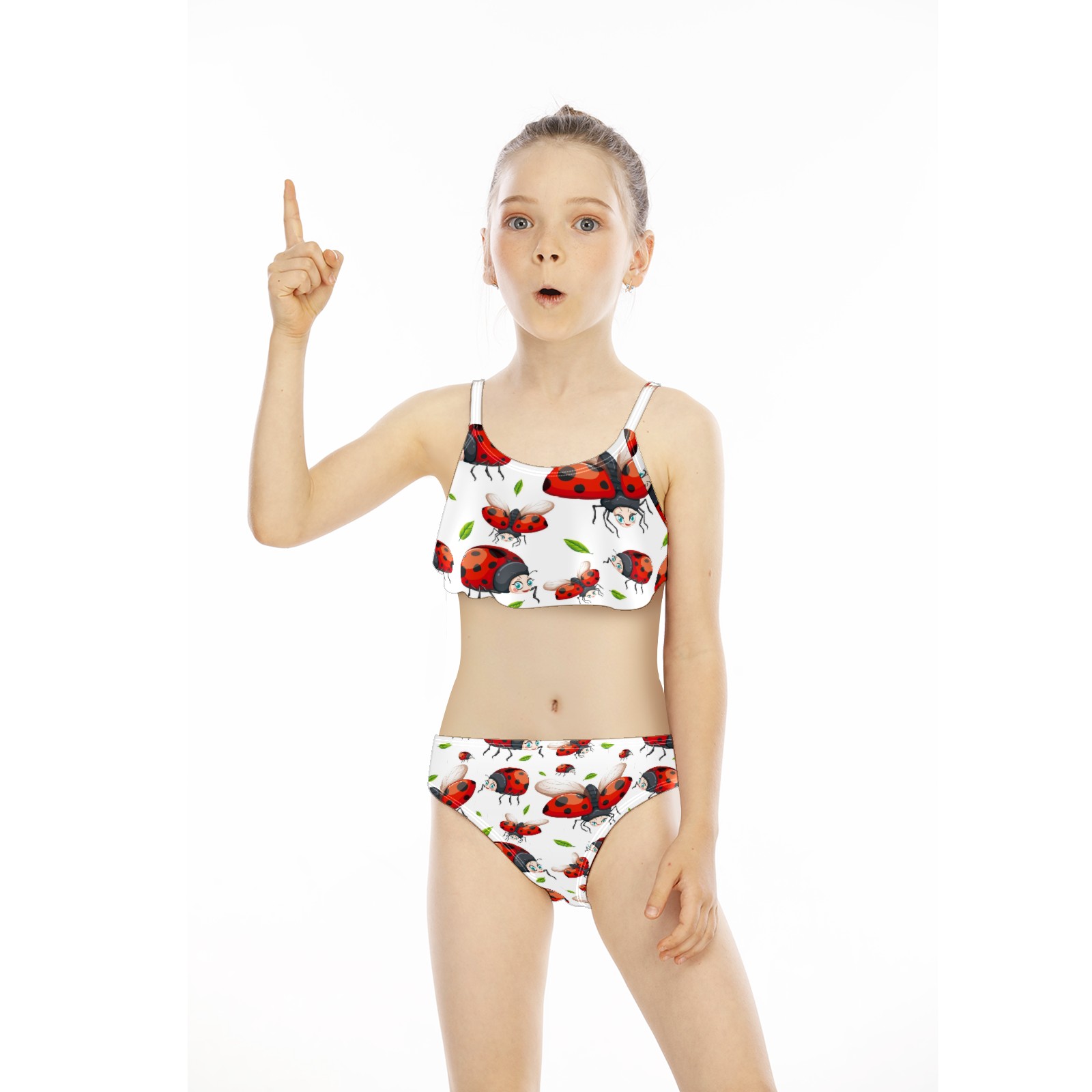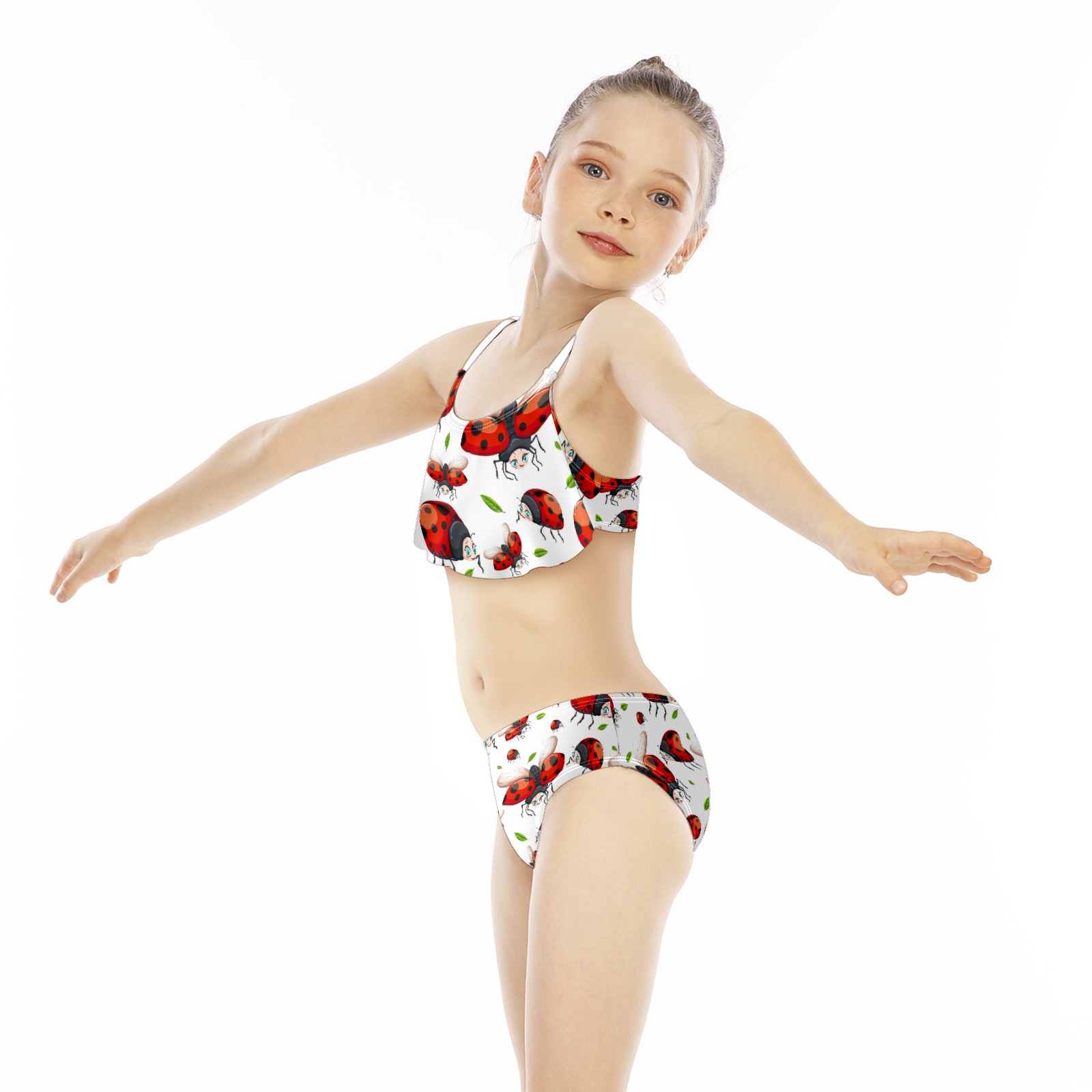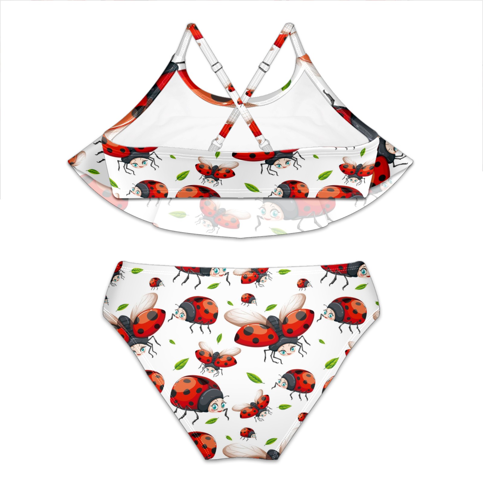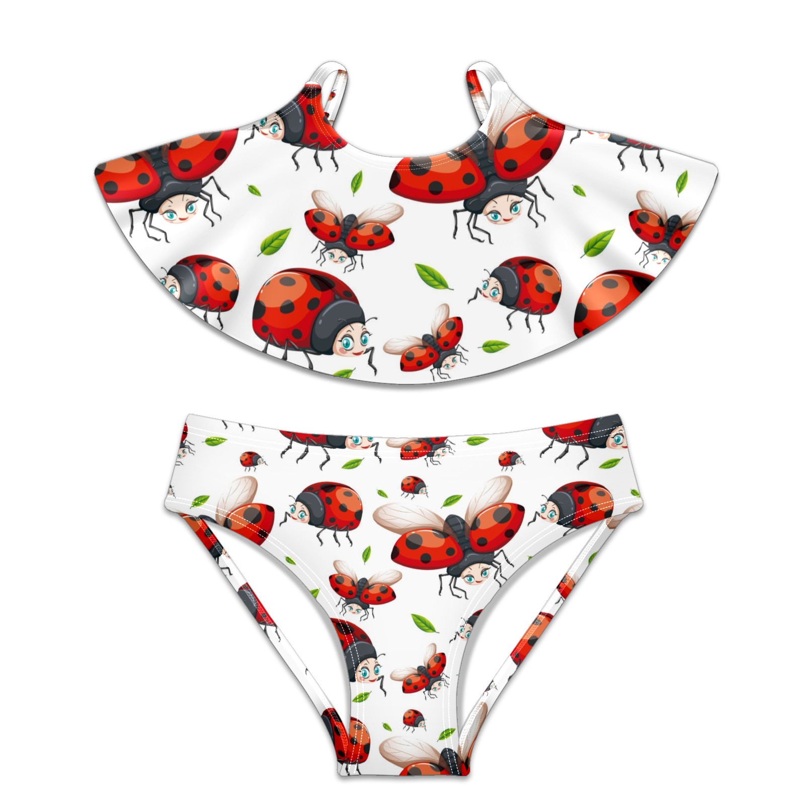 Swimsuits for Girls Two Pieces Bathing Suit Quick Dry Swimwear Cute Red Ladybug Pattern Leaves S