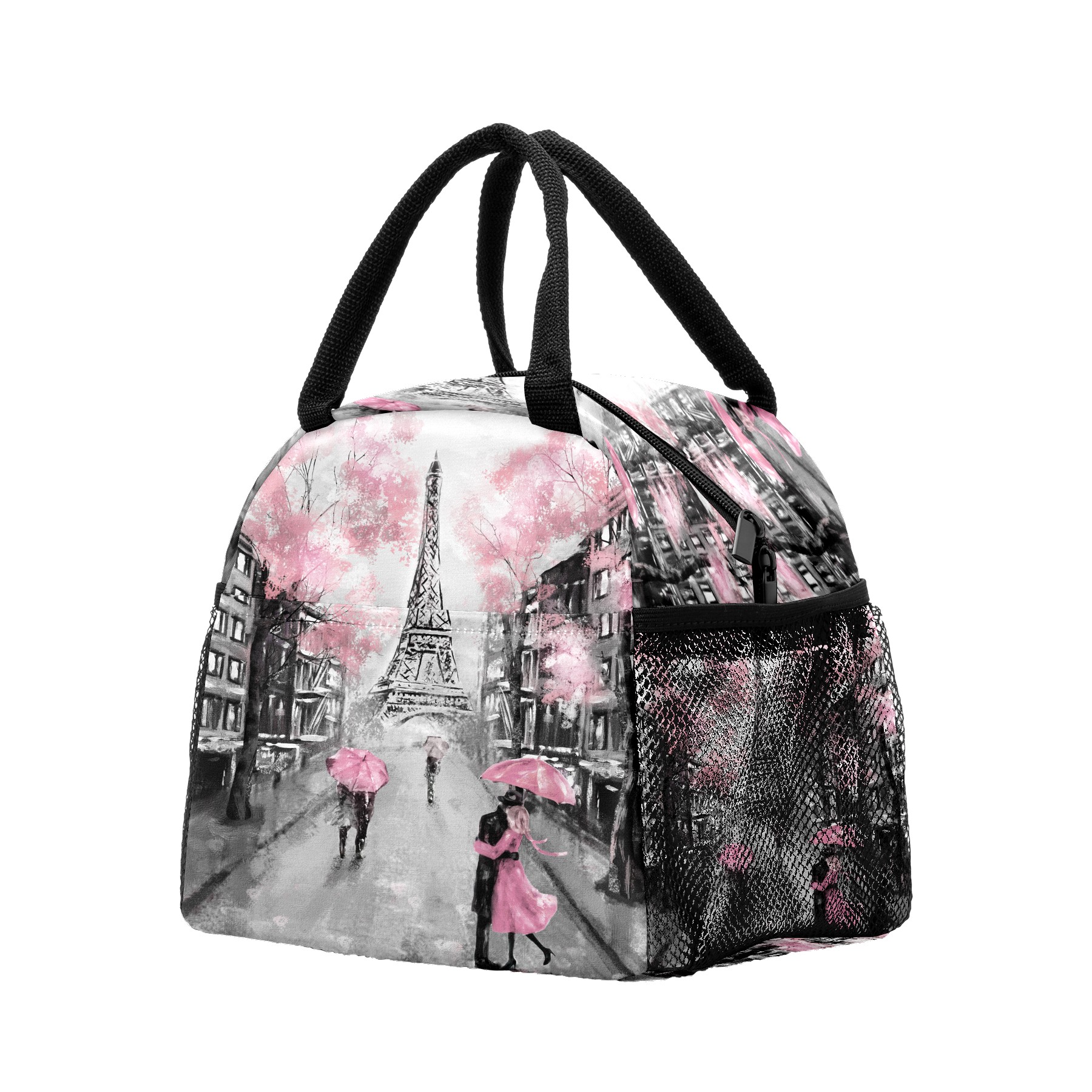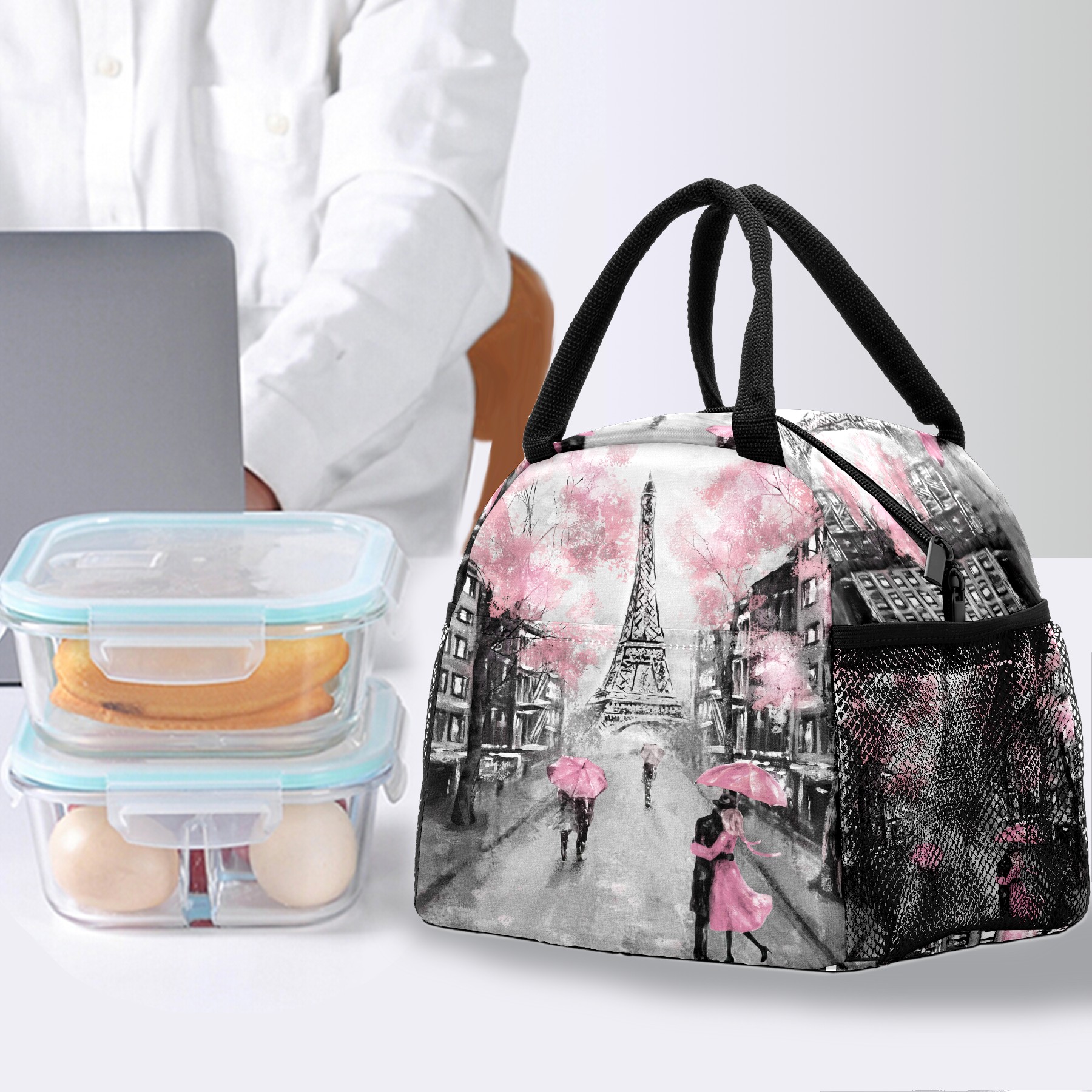 Lunch Bag for Women Men, Paris Eiffel Tower Valentines Lover Insulated Reusable Lunch Box Thermal Cooler Tote Bag for Work Picnic Hiking Travel Beach