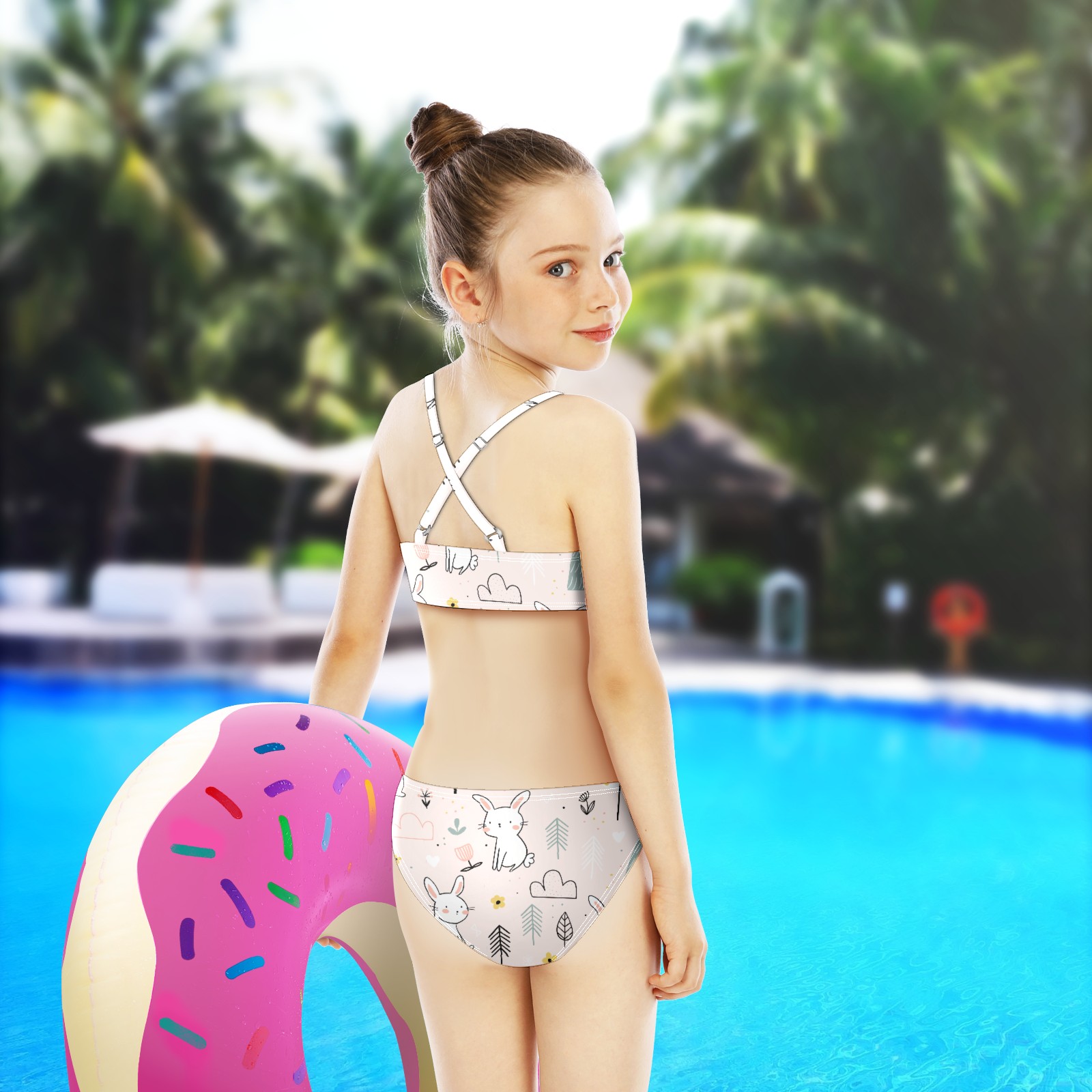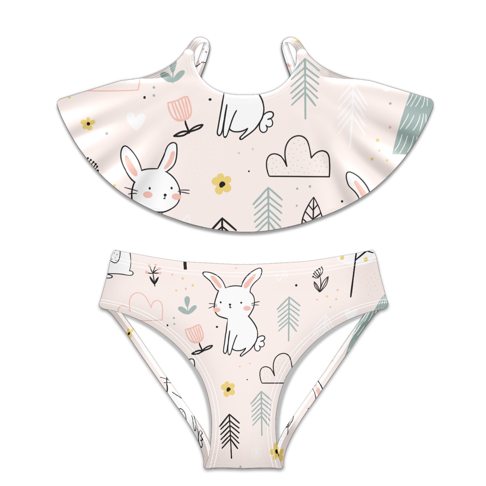 Swimsuits for Girls Two Pieces Bathing Suit Quick Dry Swimwear Cute Rabbit Forest Cartoon Animal S