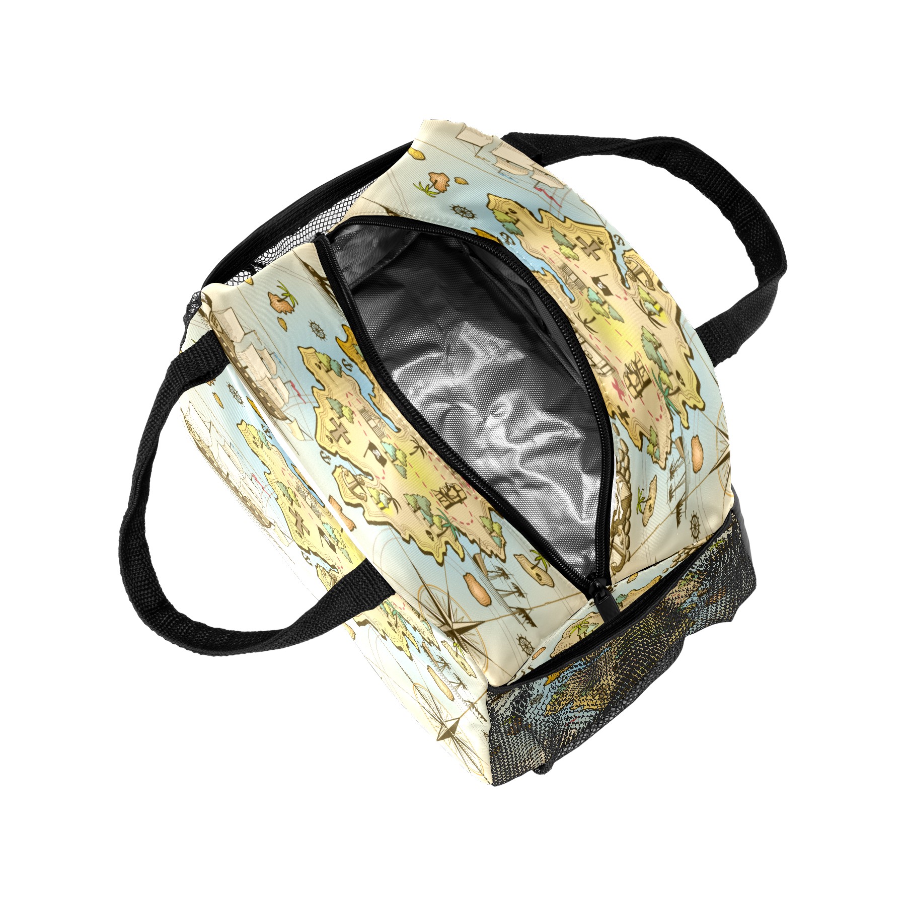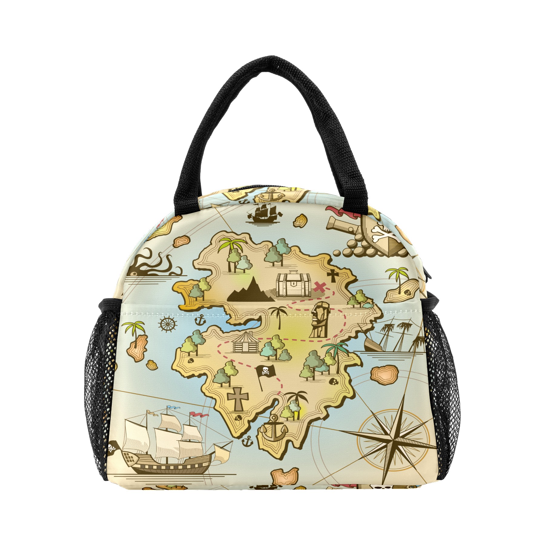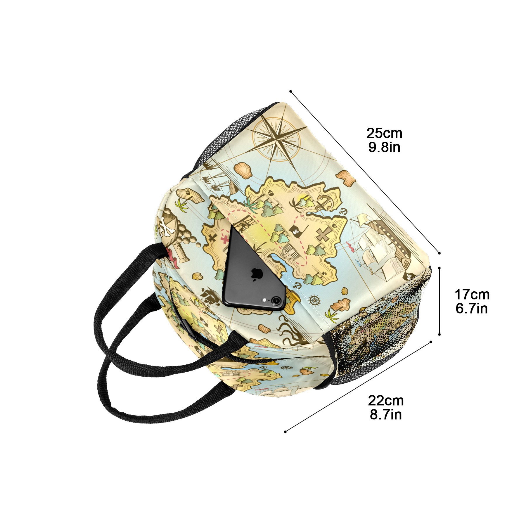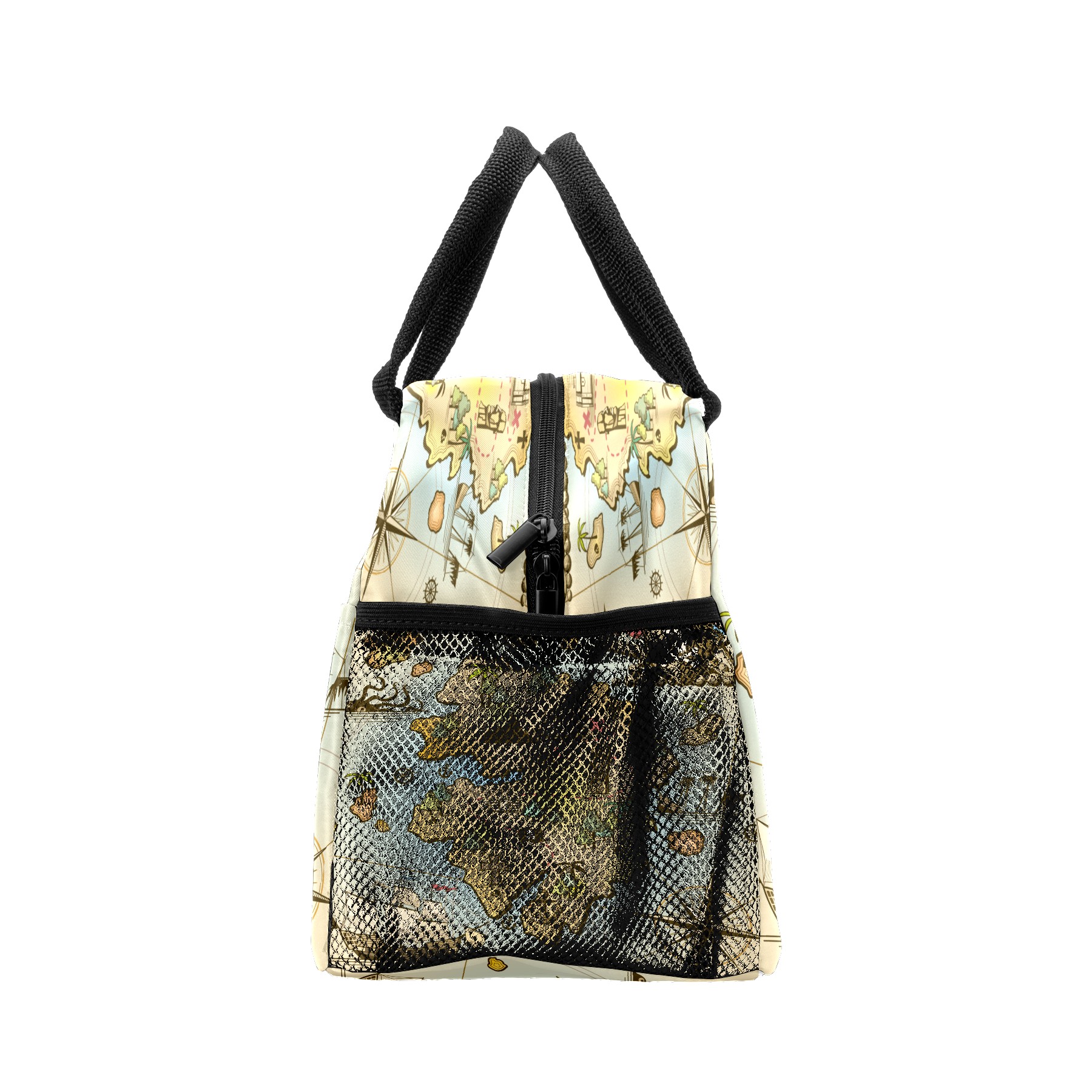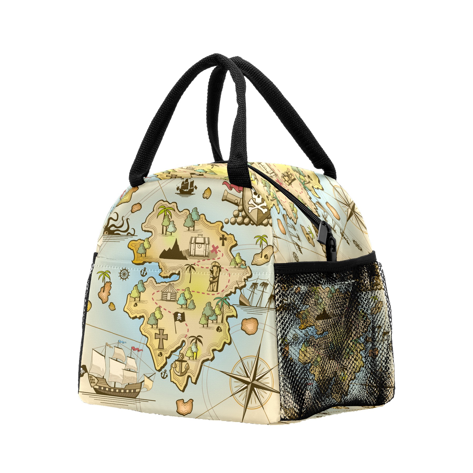 Lunch Bag for Women Men, Antique Nautical World Map Compass Insulated Reusable Lunch Box Thermal Cooler Tote Bag for Work Picnic Hiking Travel Beach