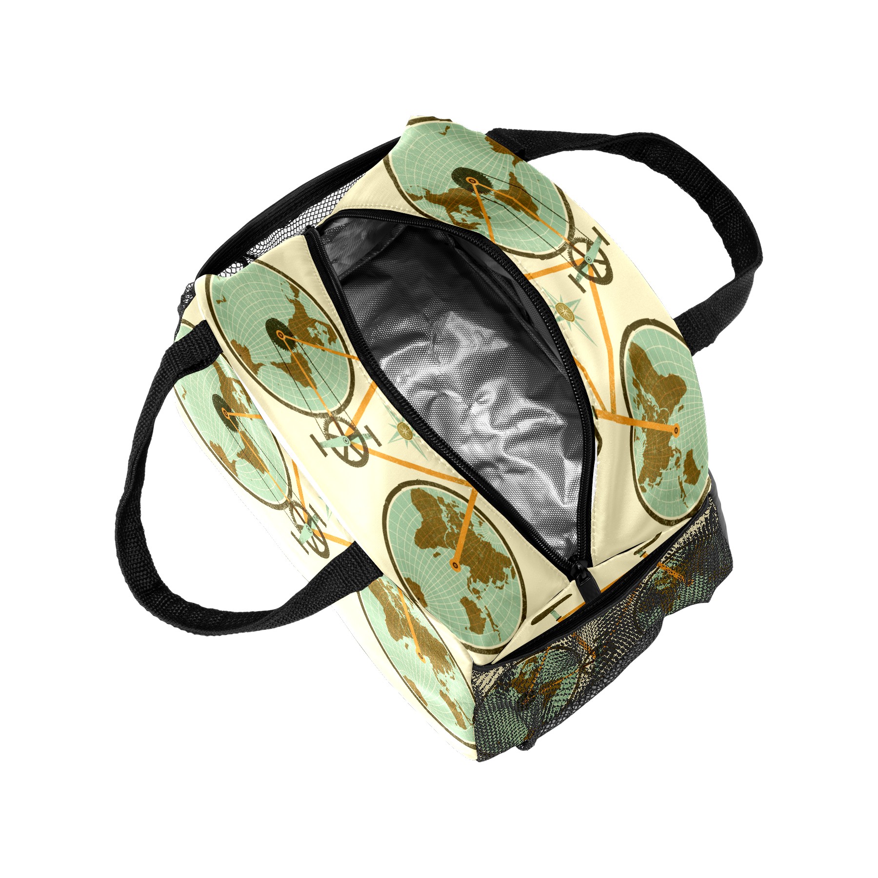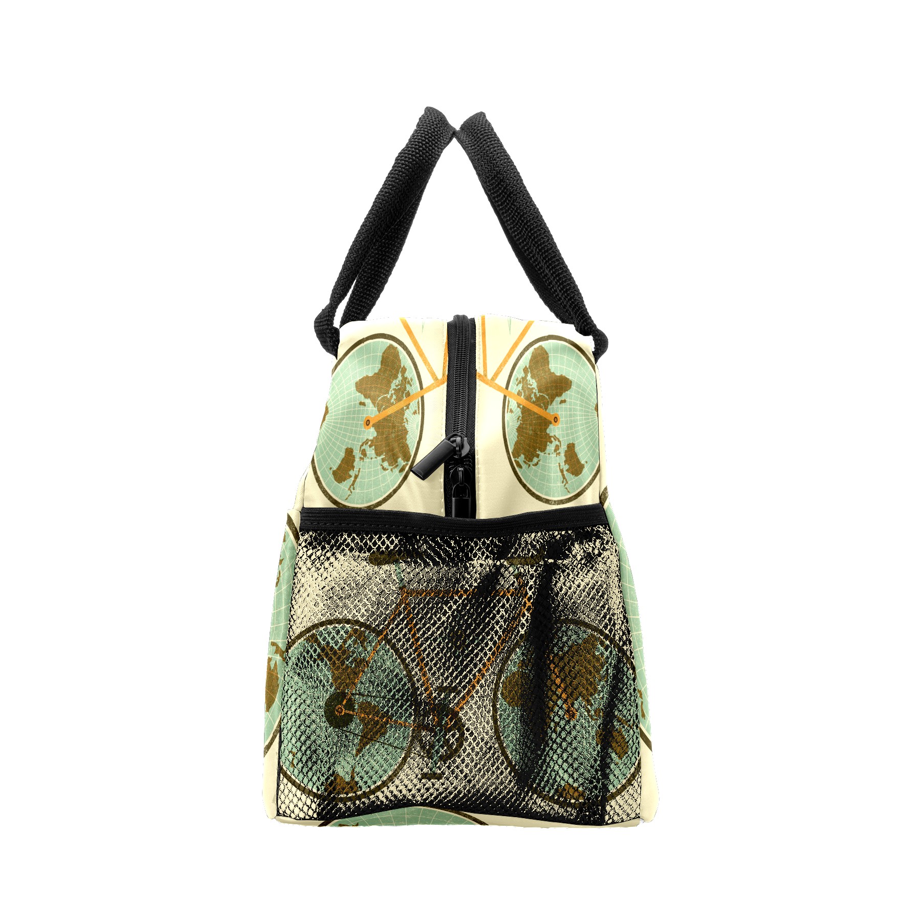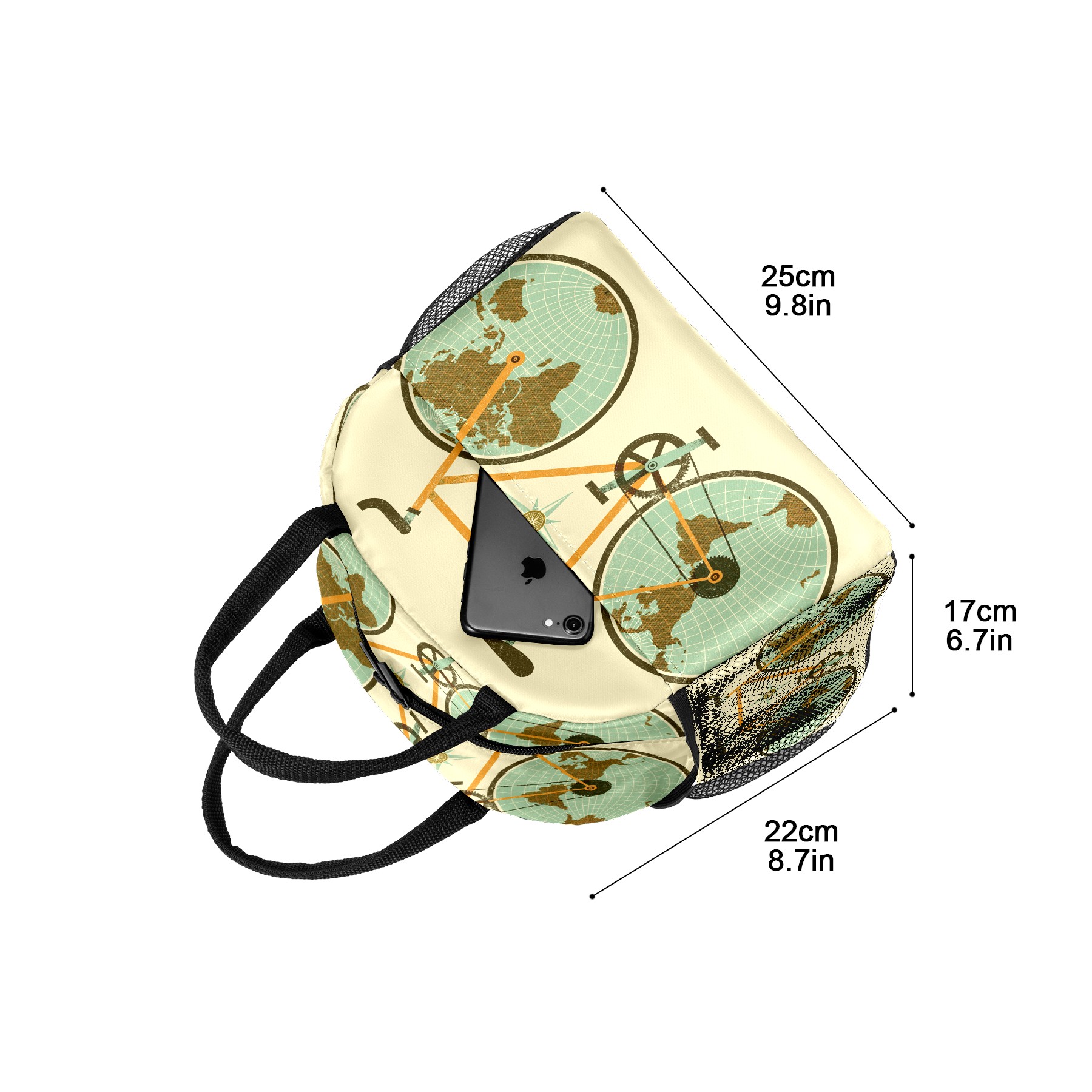 Lunch Bag for Women Men, Funny Retro World Map With Bike Insulated Reusable Lunch Box Thermal Cooler Tote Bag for Work Picnic Hiking Travel Beach