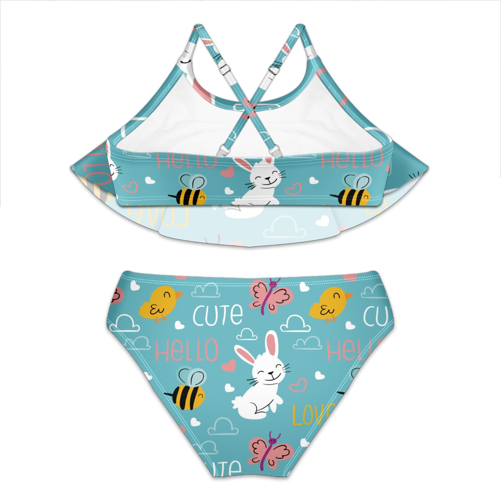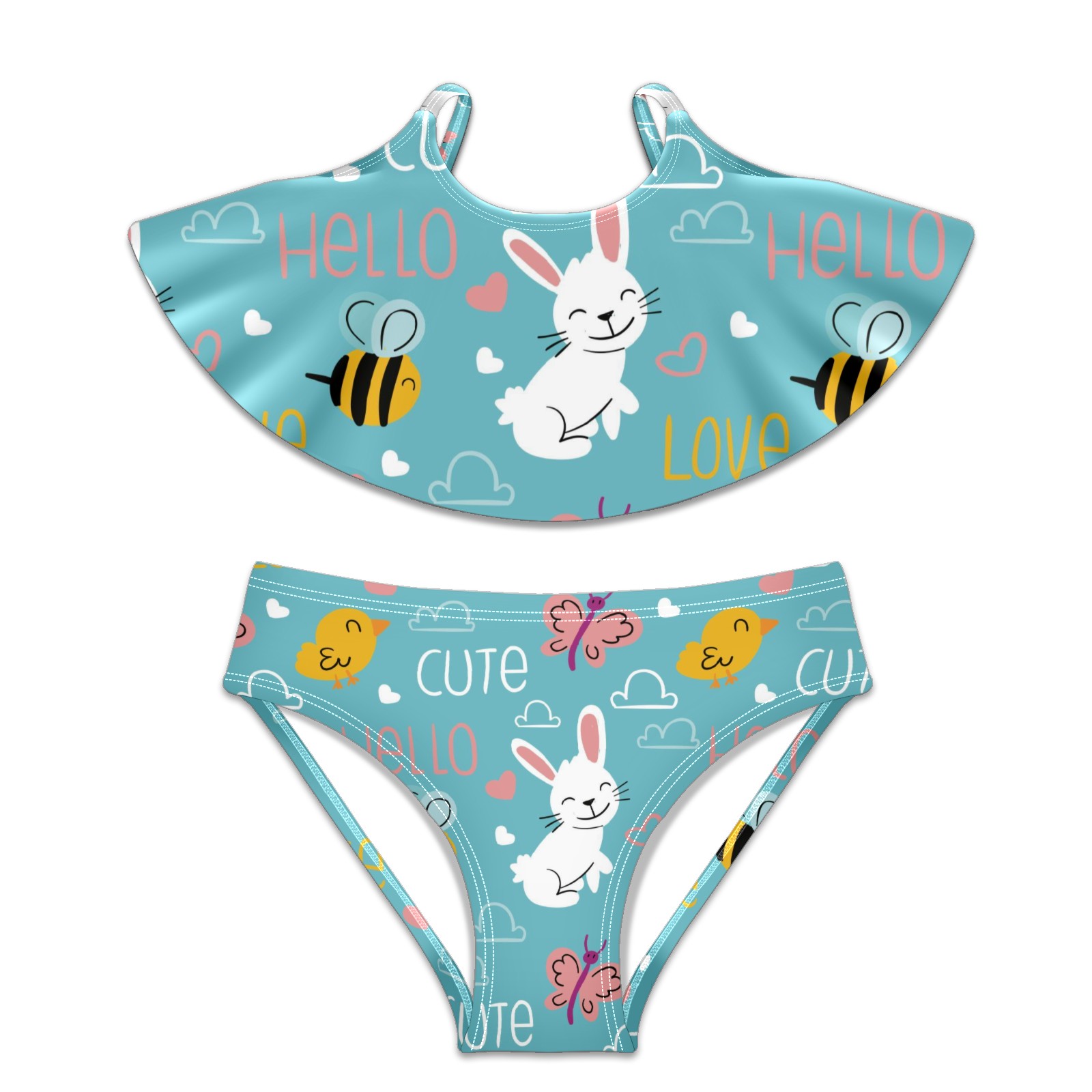 Swimsuits for Girls Two Pieces Bathing Suit Quick Dry Swimwear Cute Rabbit Bee Butterfly Chicken Cloud Love Doodling S