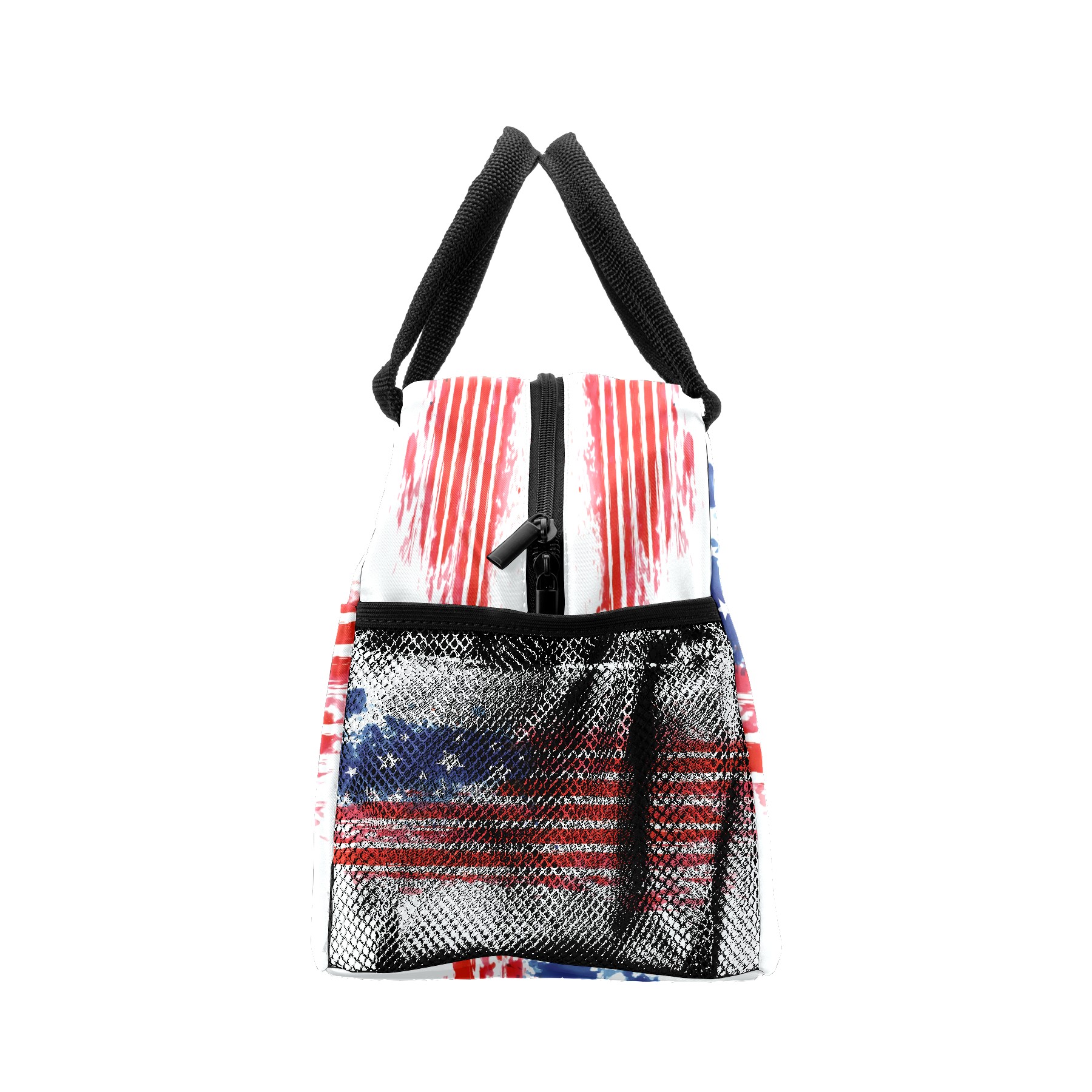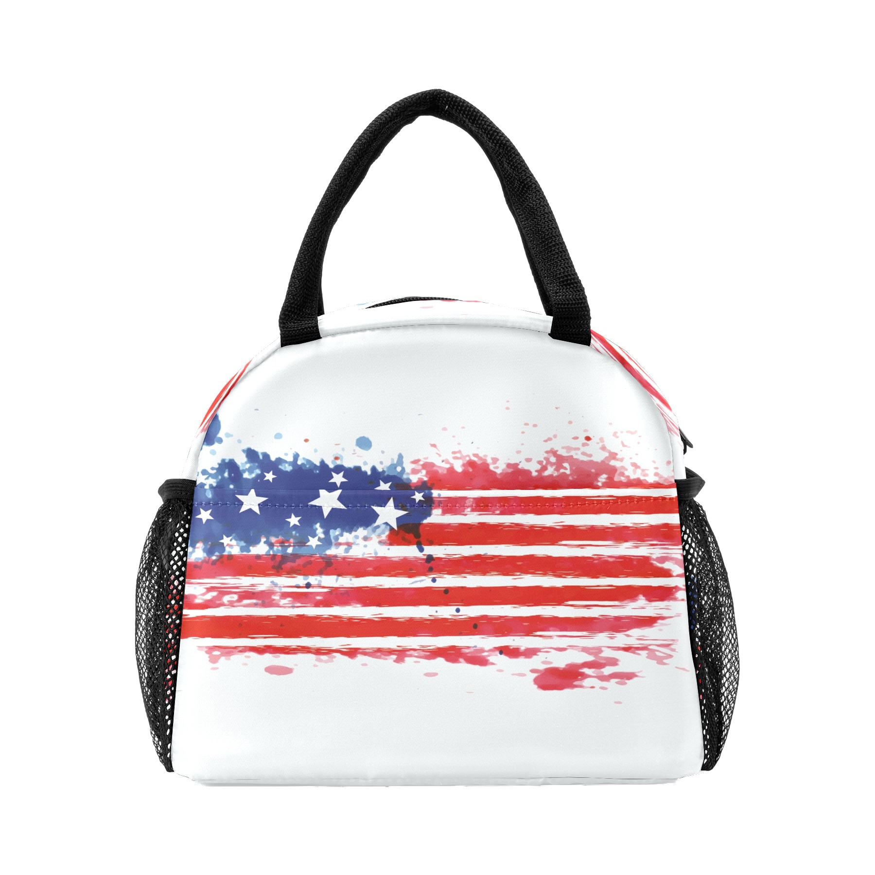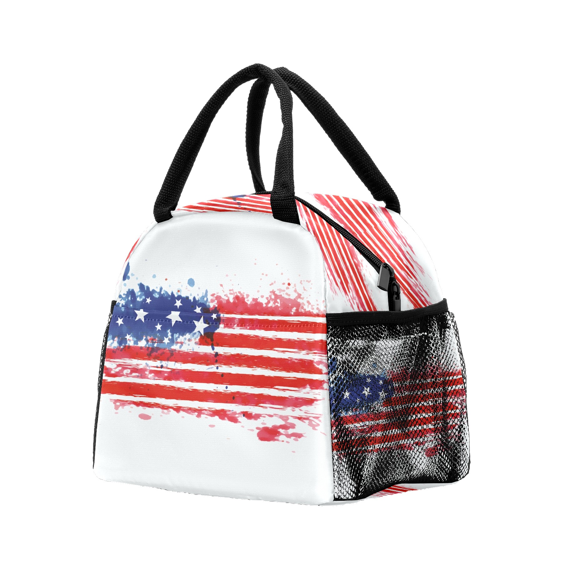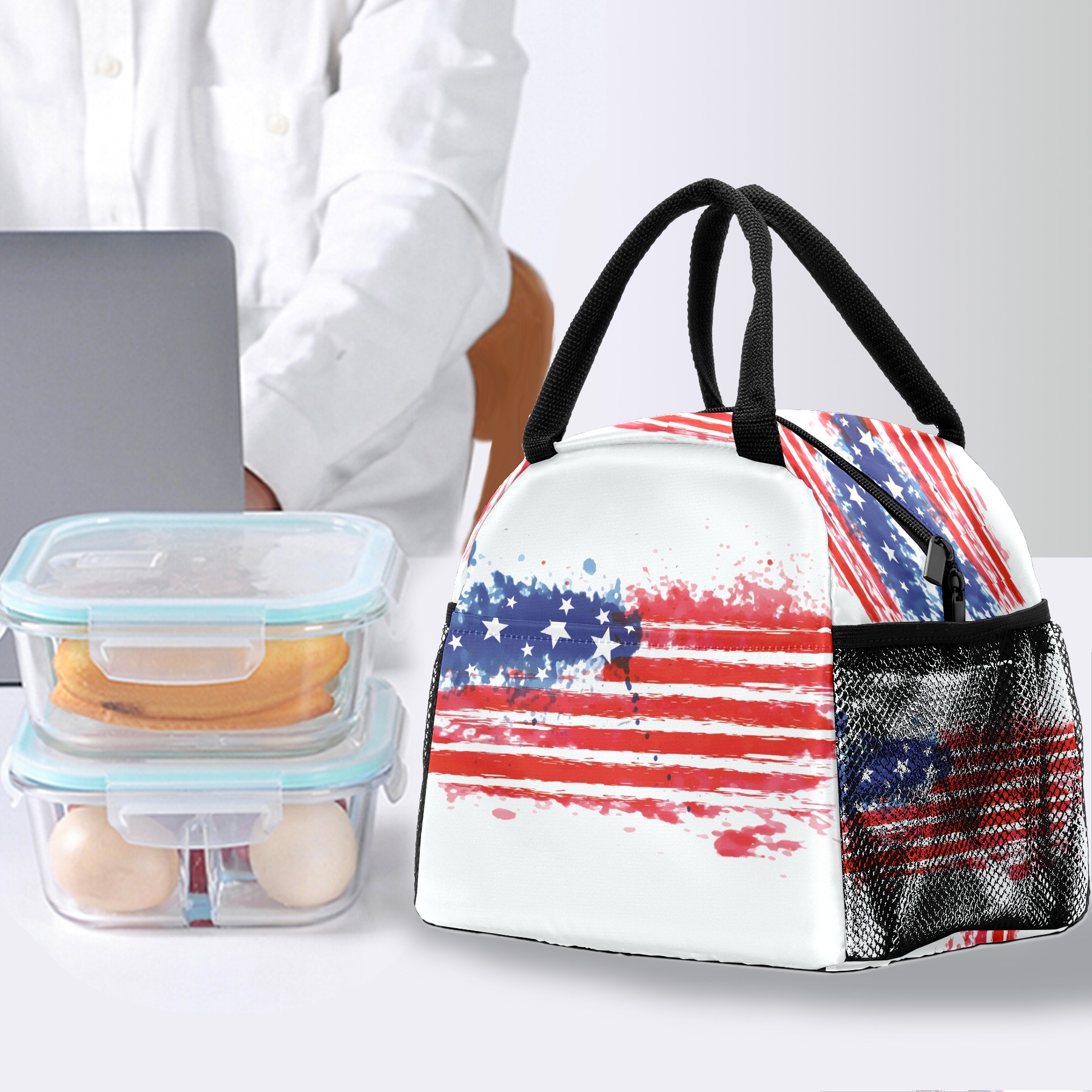 Lunch Bag for Women Men, Independence Day American Flag Insulated Reusable Lunch Box Thermal Cooler Tote Bag for Work Picnic Hiking Travel Beach