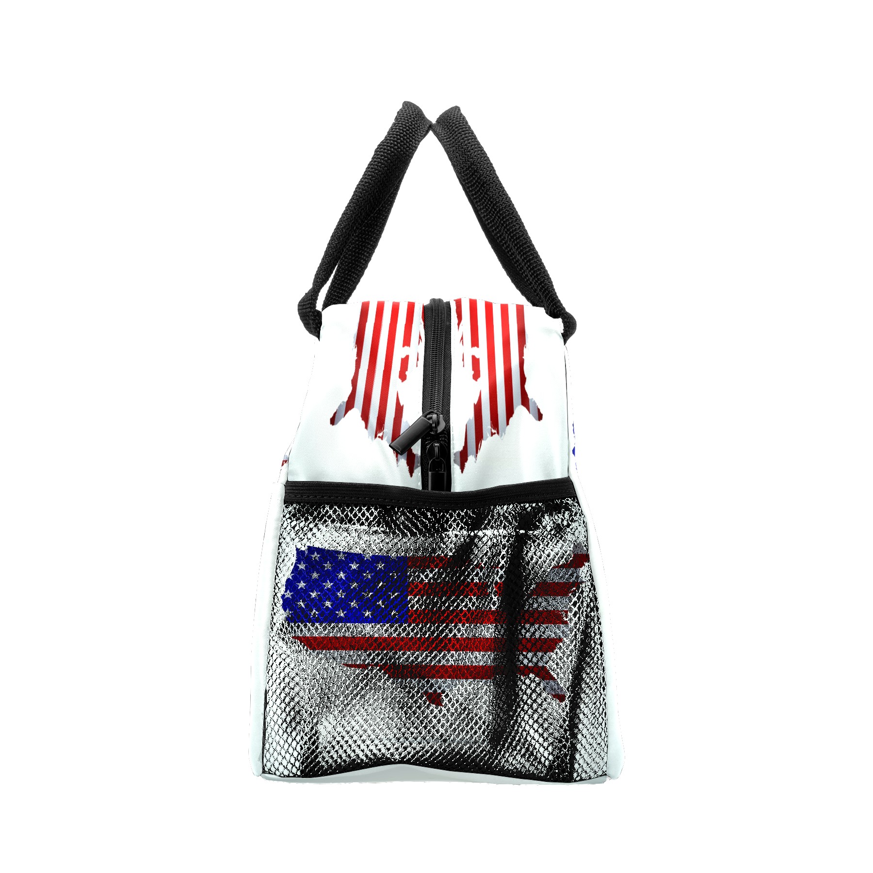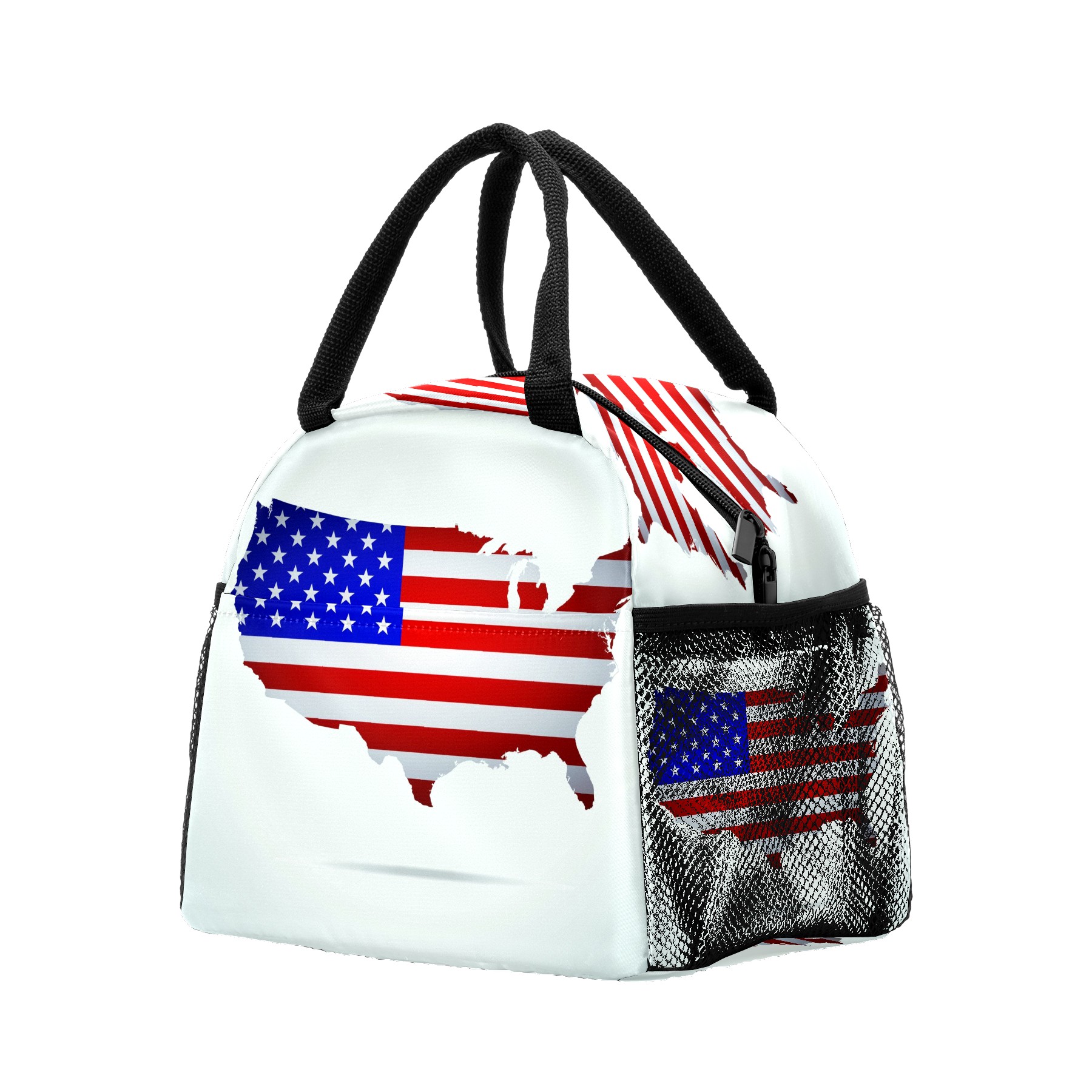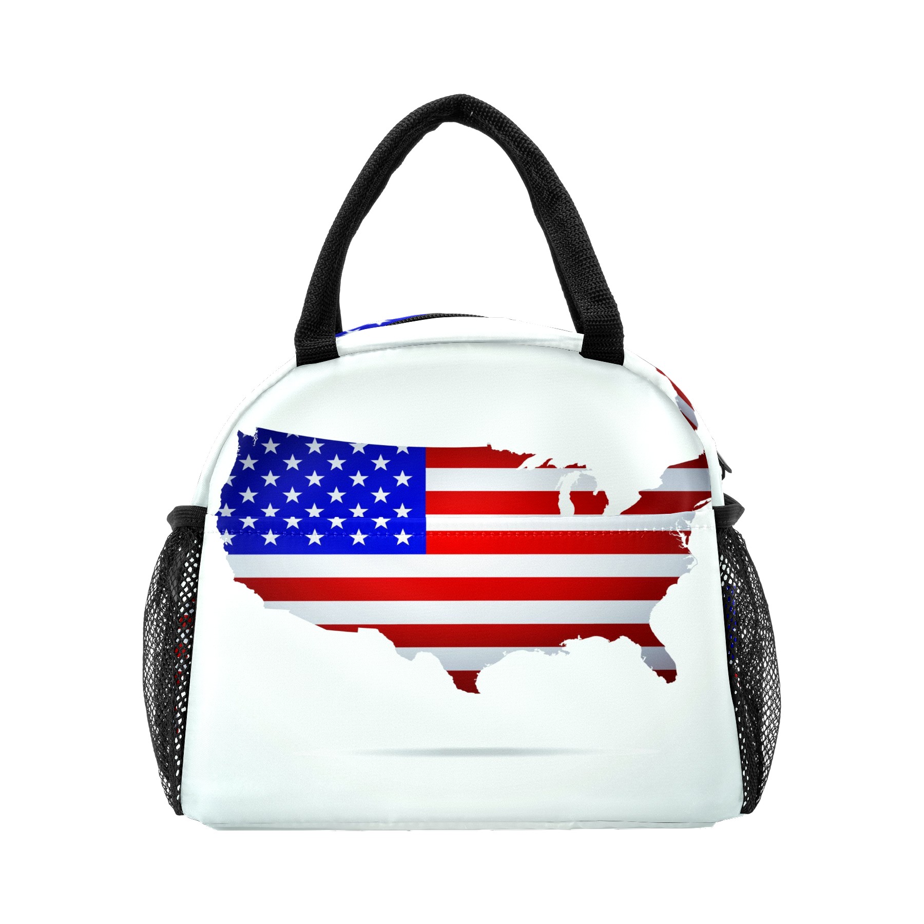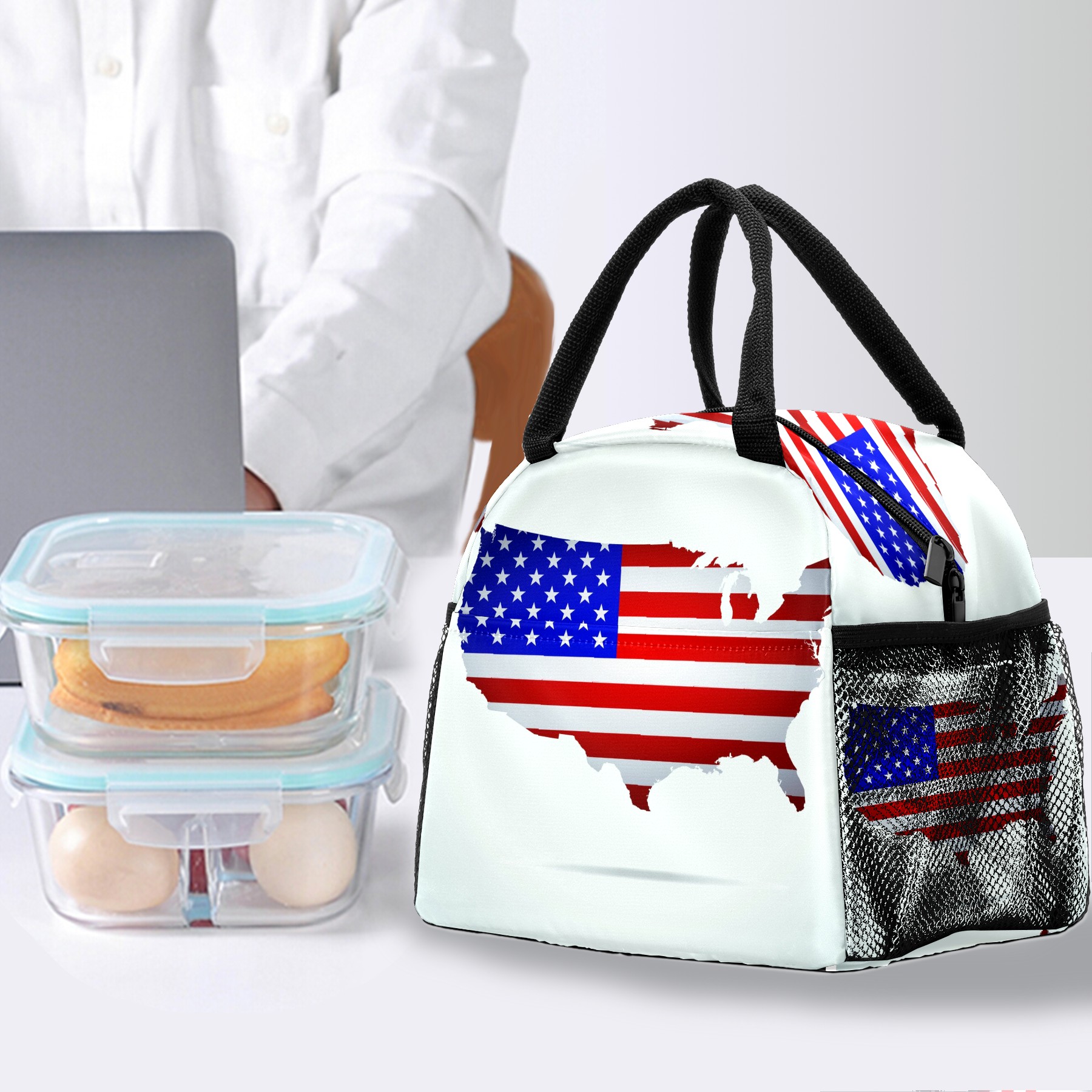 Lunch Bag for Women Men, American Flag Map Insulated Reusable Lunch Box Thermal Cooler Tote Bag for Work Picnic Hiking Travel Beach