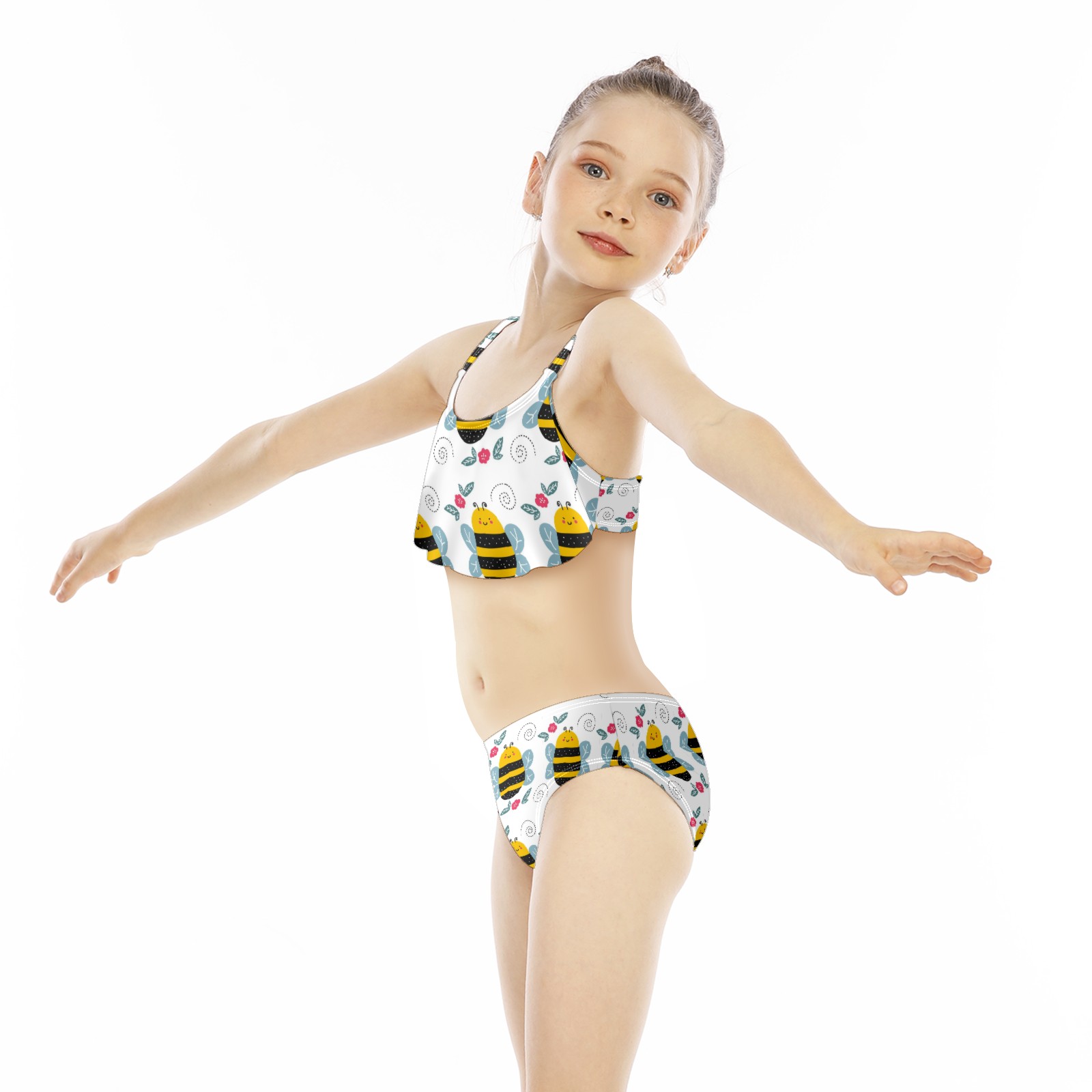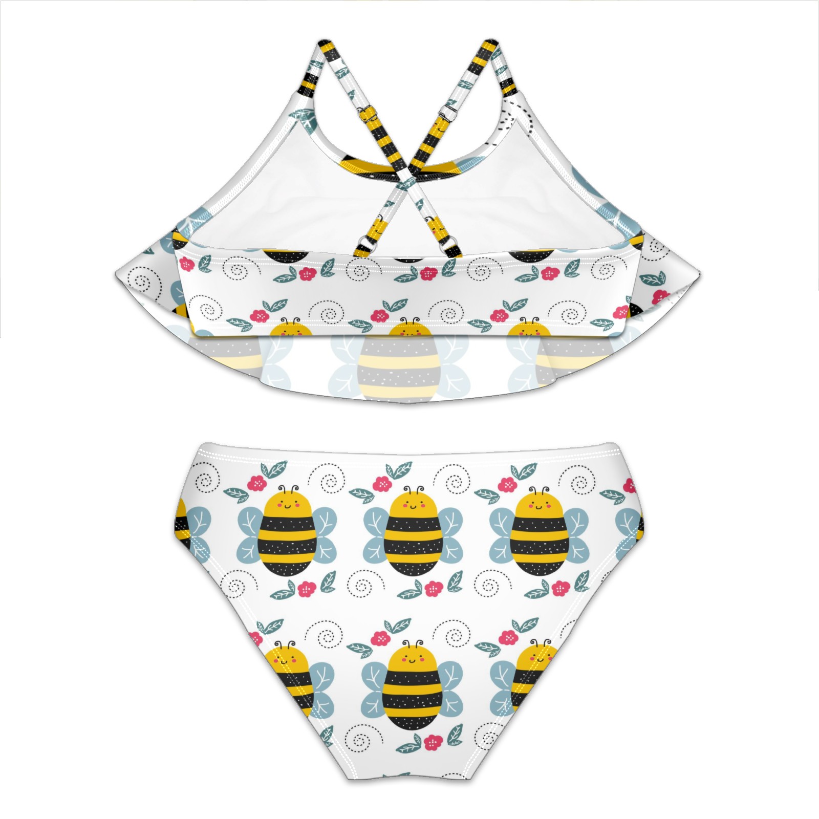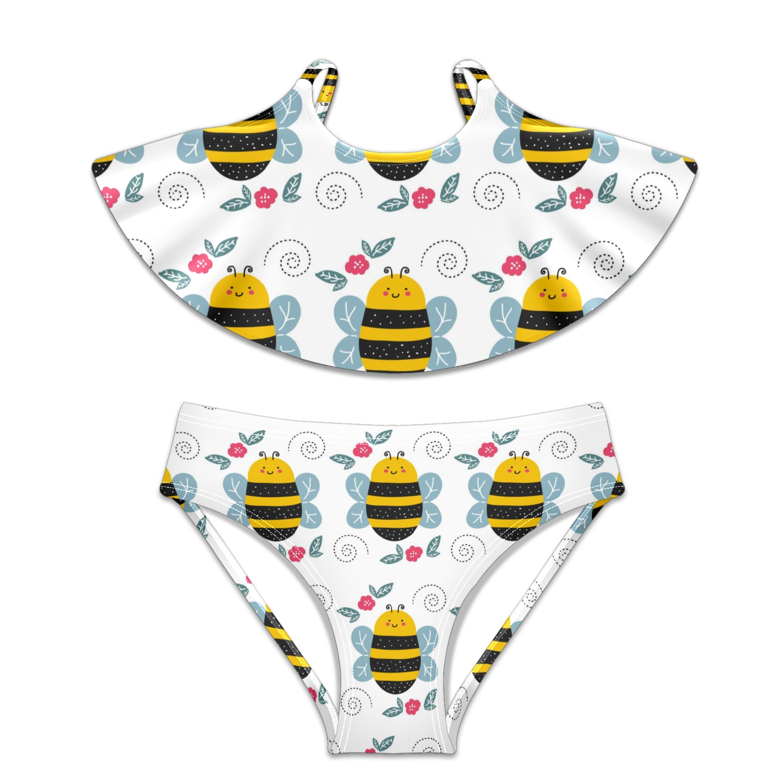 Swimsuits for Girls Two Pieces Bathing Suit Quick Dry Swimwear Cute Cartoon Bee Pattern Red Floral S