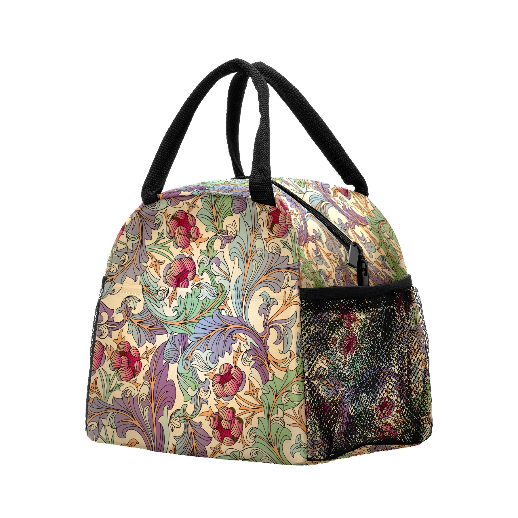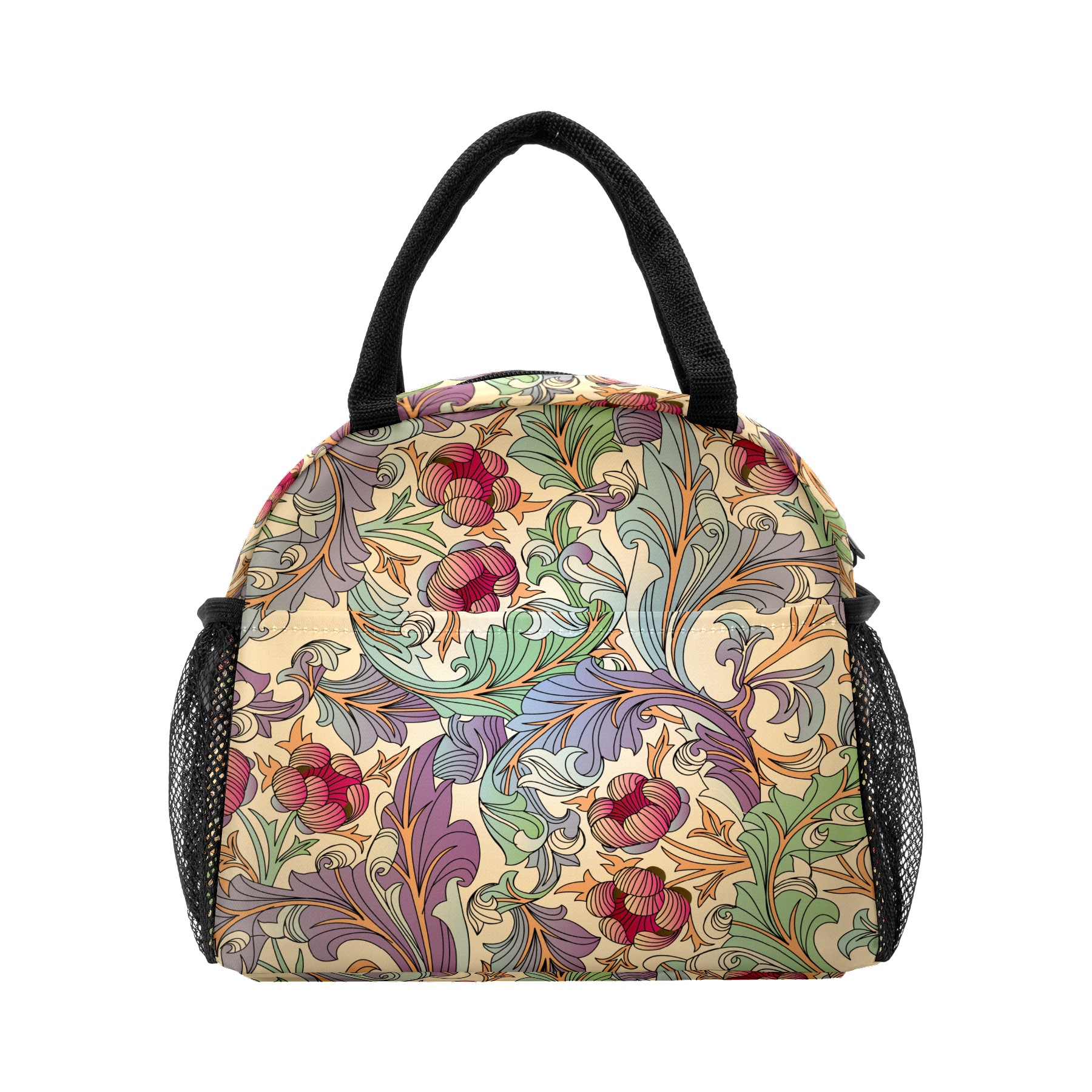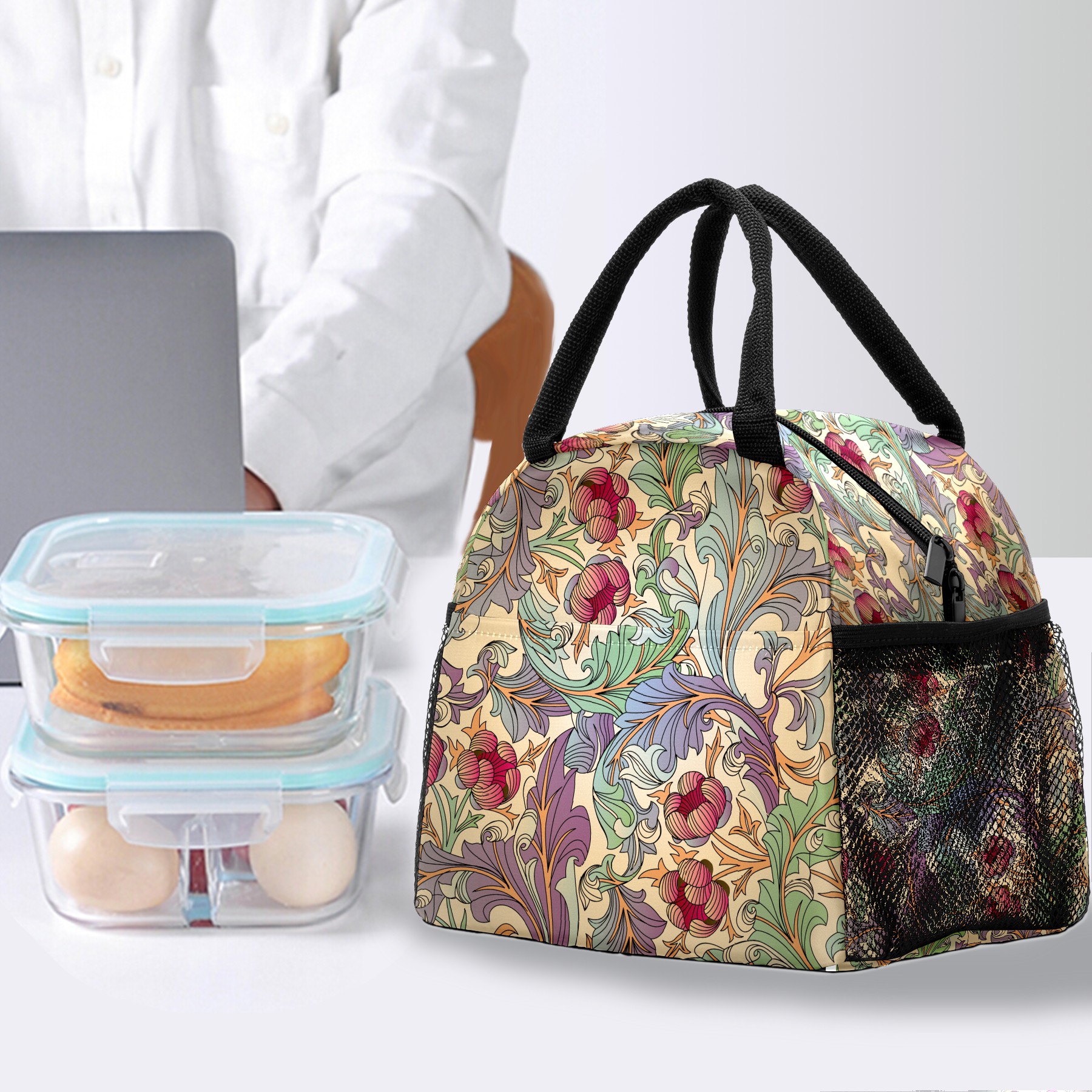 Lunch Bag for Women Men, Vintage Ethnic Boho Floral Print Insulated Reusable Lunch Box Thermal Cooler Tote Bag for Work Picnic Hiking Travel Beach