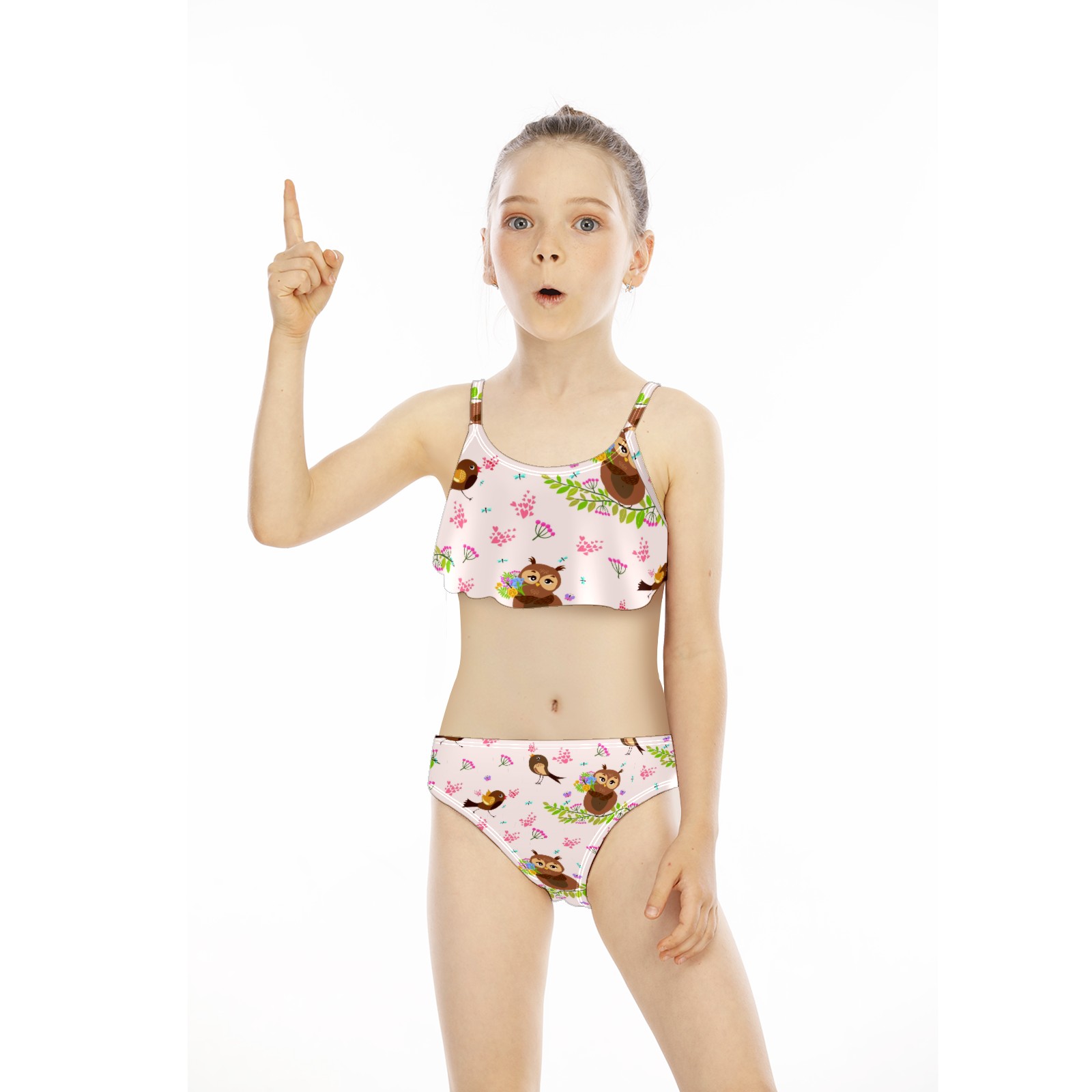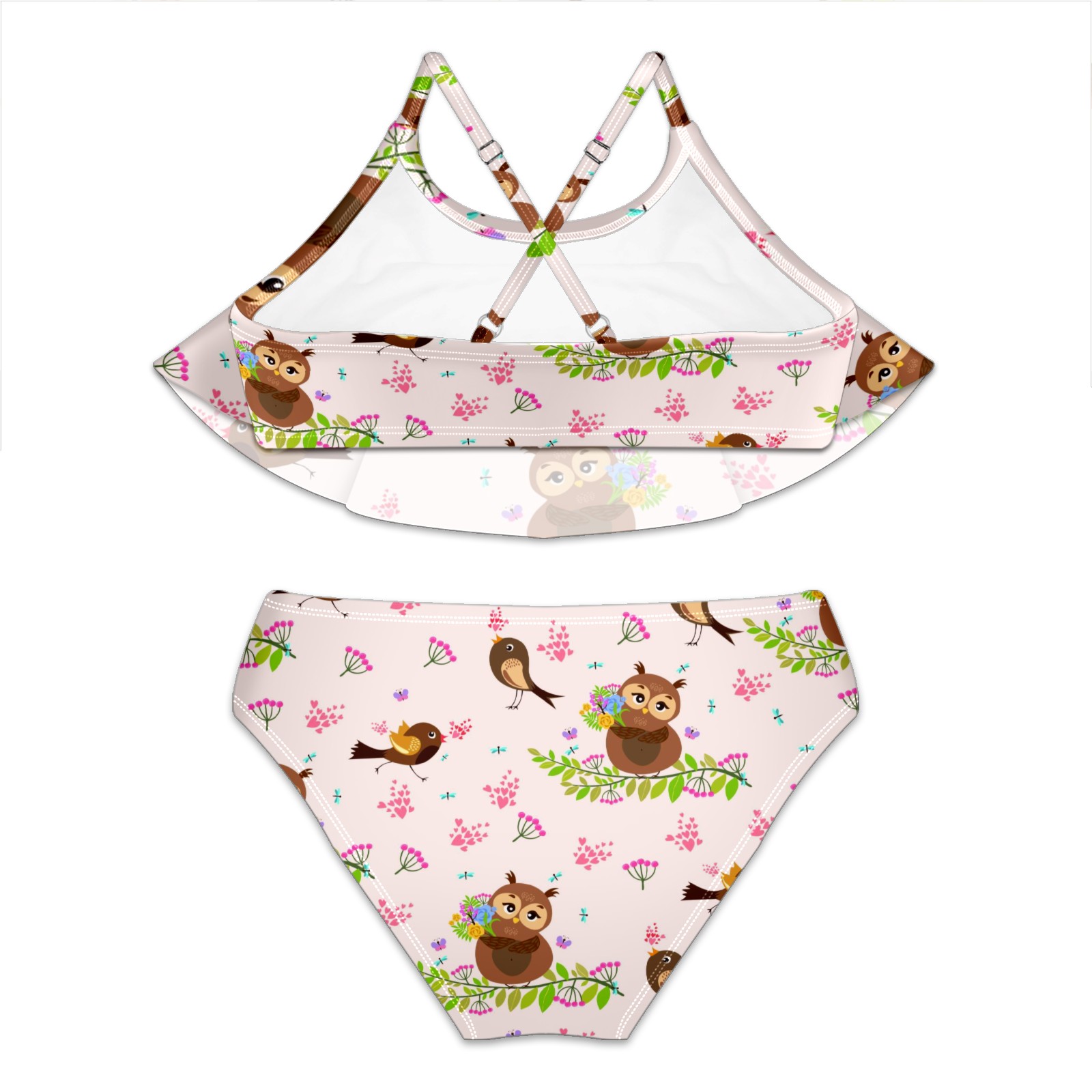 Swimsuits for Girls Two Pieces Bathing Suit Quick Dry Swimwear Cute Bird Owl Pattern S