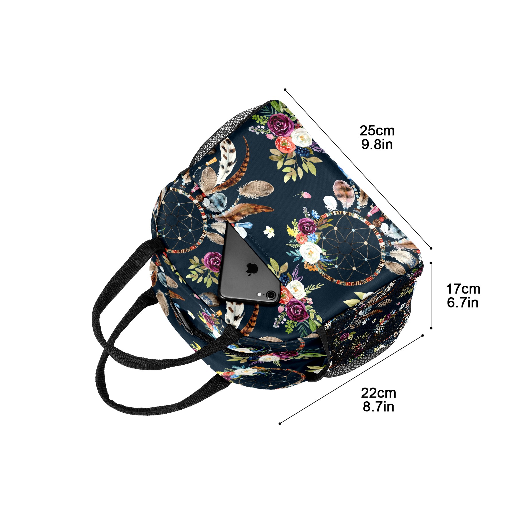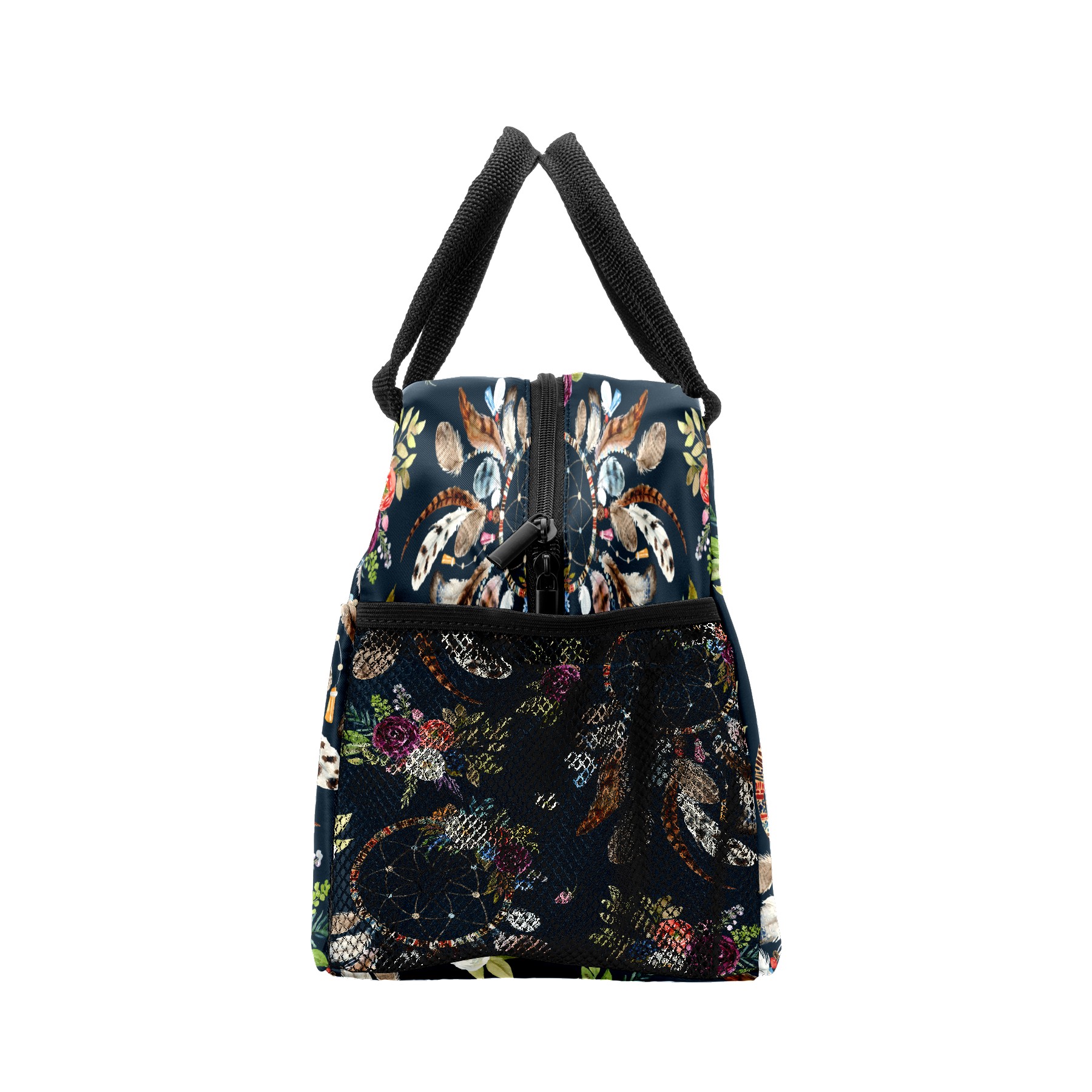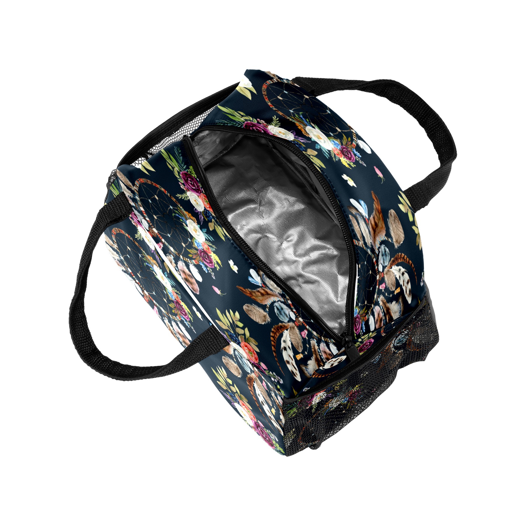 Lunch Bag for Women Men, Vintage Ethnic Dreamcather Feather Floral Insulated Reusable Lunch Box Thermal Cooler Tote Bag for Work Picnic Hiking Travel Beach
