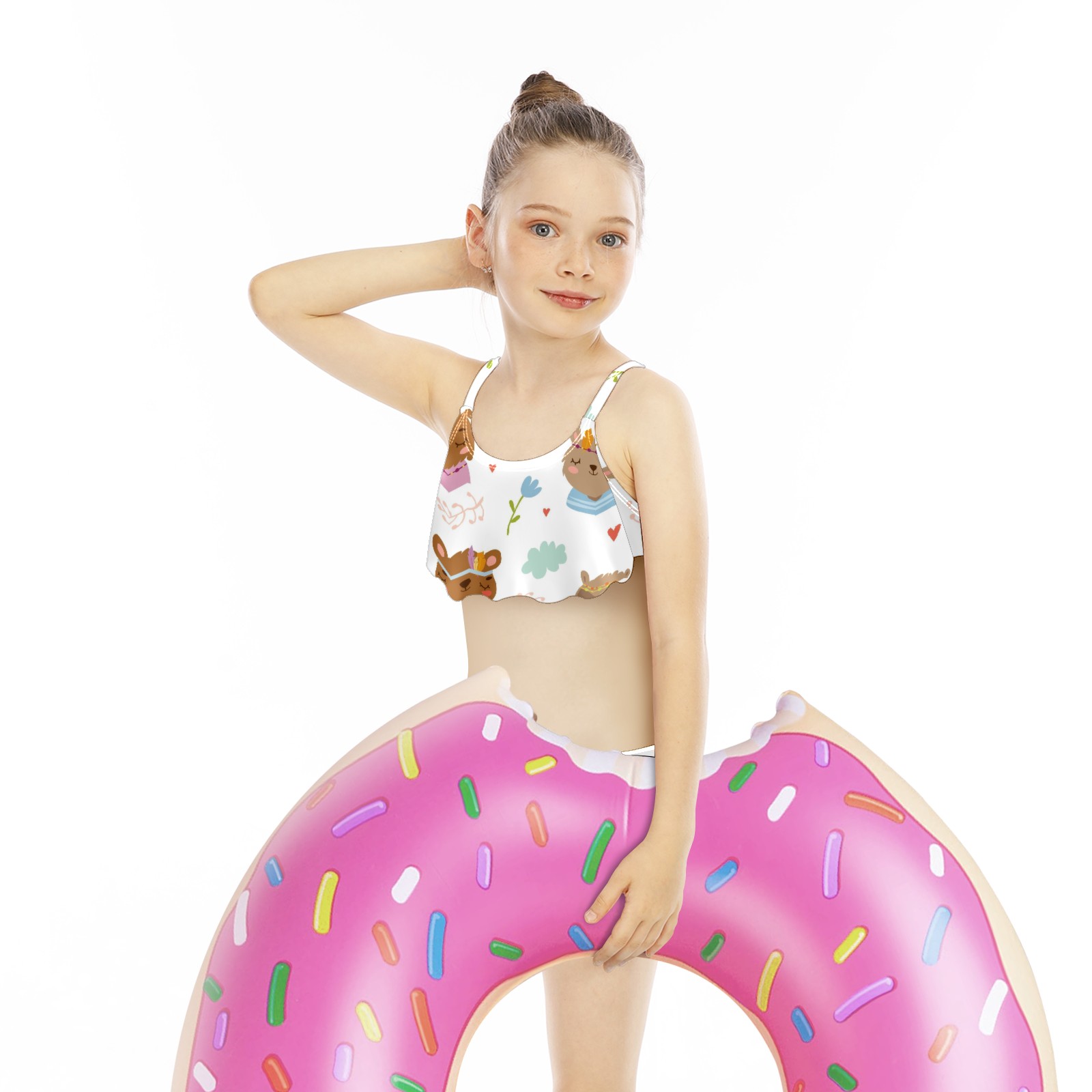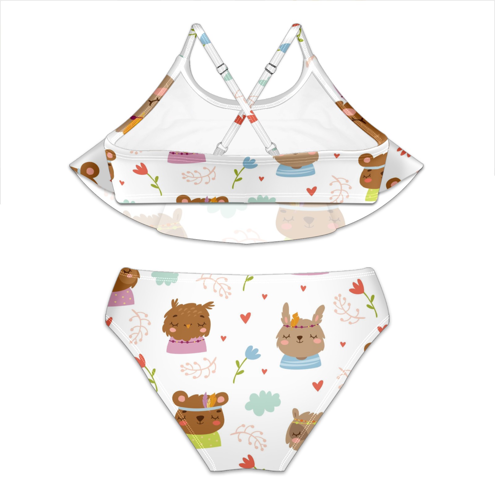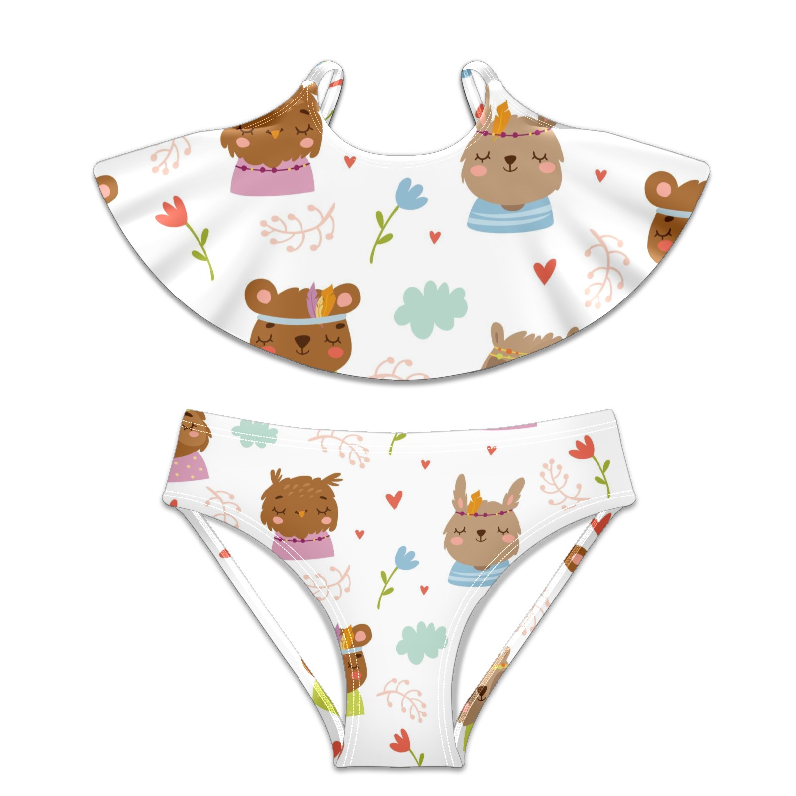 Swimsuits for Girls Two Pieces Bathing Suit Quick Dry Swimwear Cute Bear Owl Wreath Autumn Floral Cartoon S