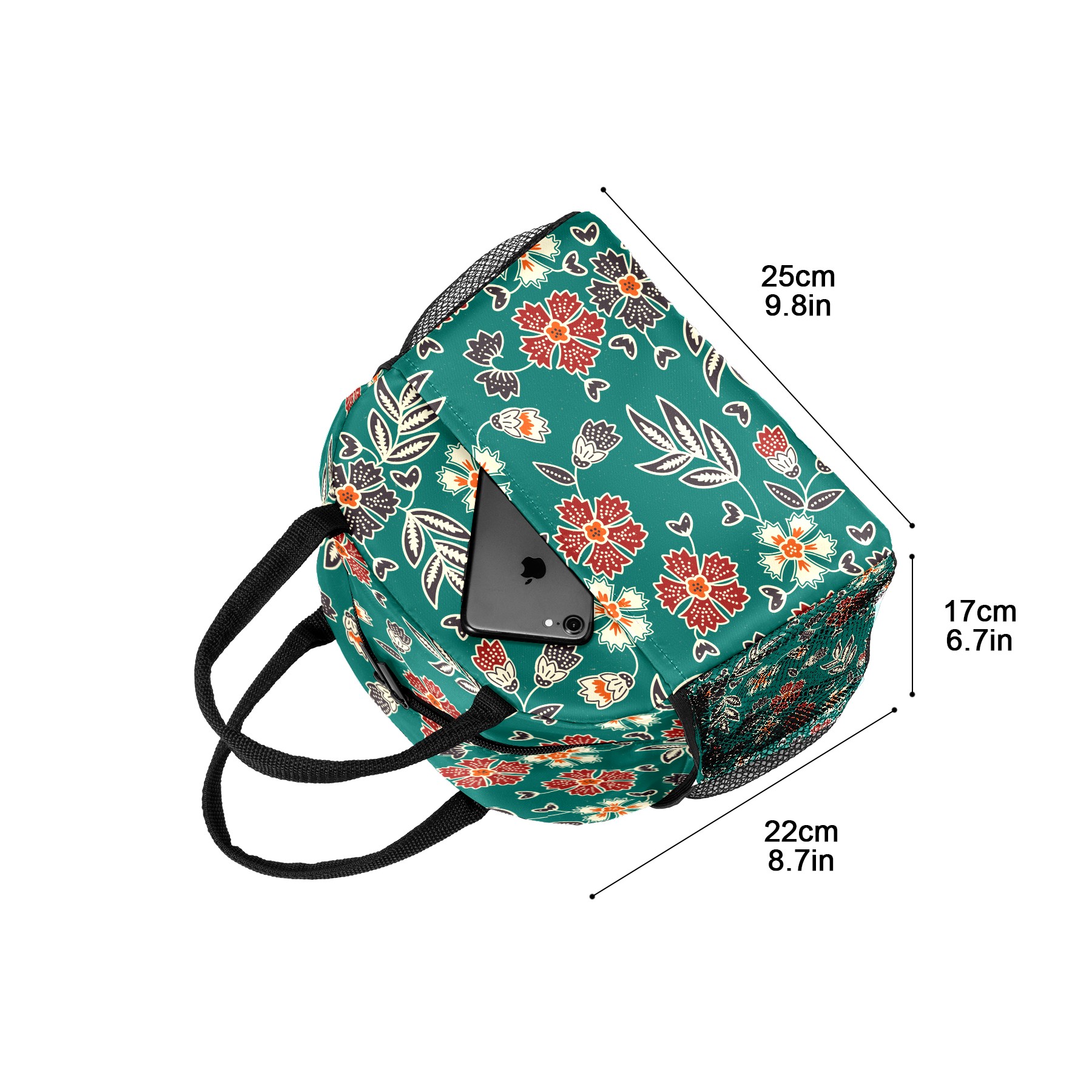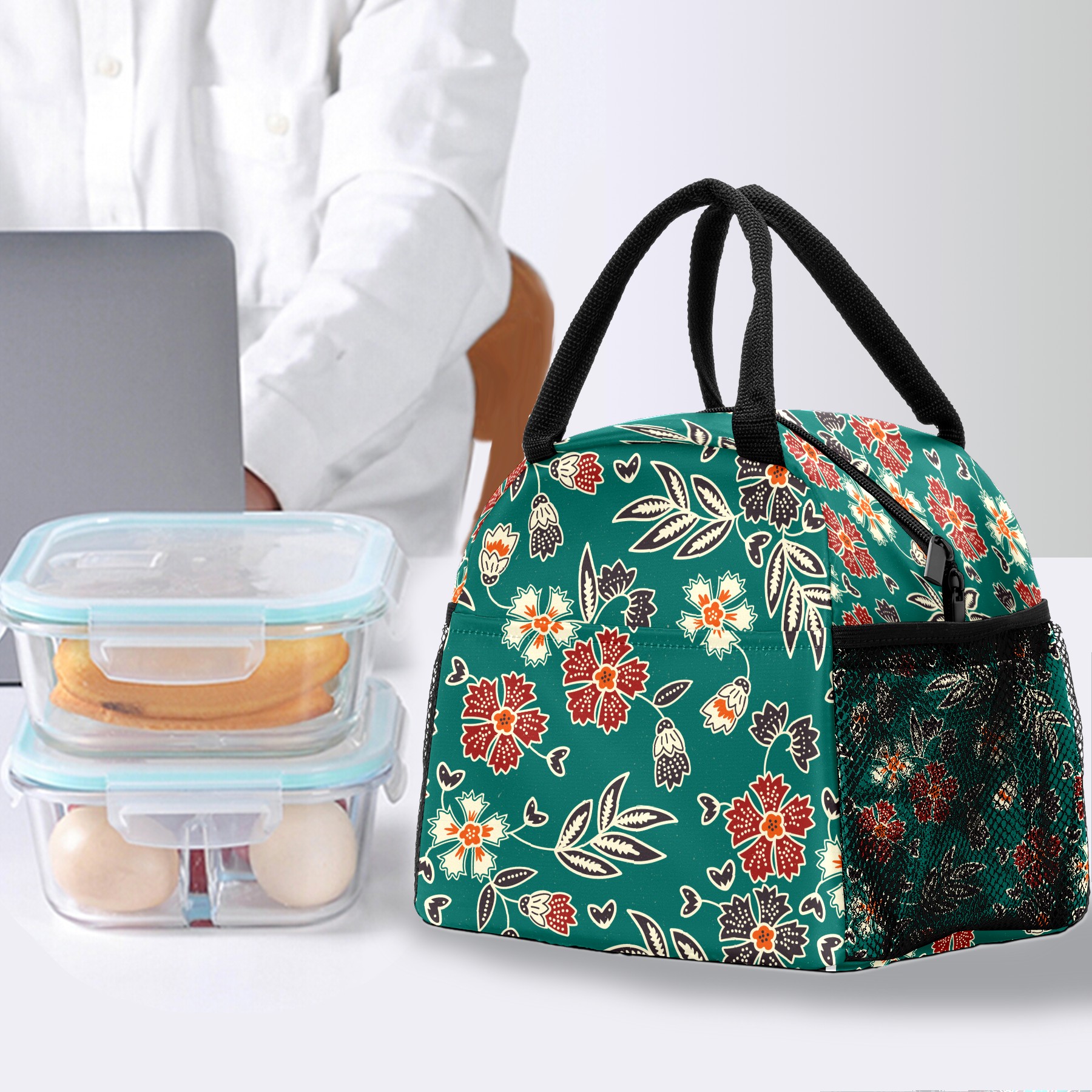 Lunch Bag for Women Men, Vintage Floral Print Insulated Reusable Lunch Box Thermal Cooler Tote Bag for Work Picnic Hiking Travel Beach