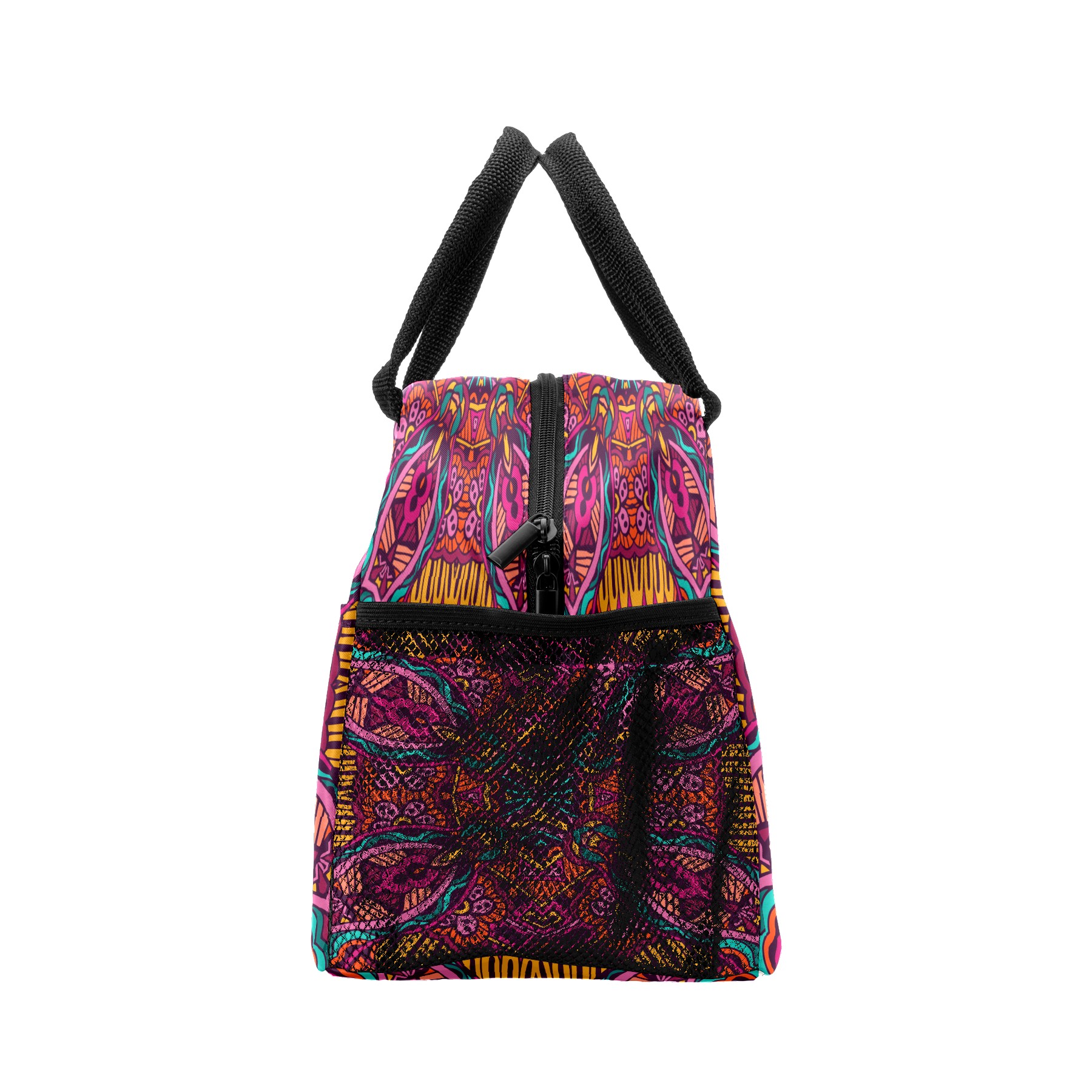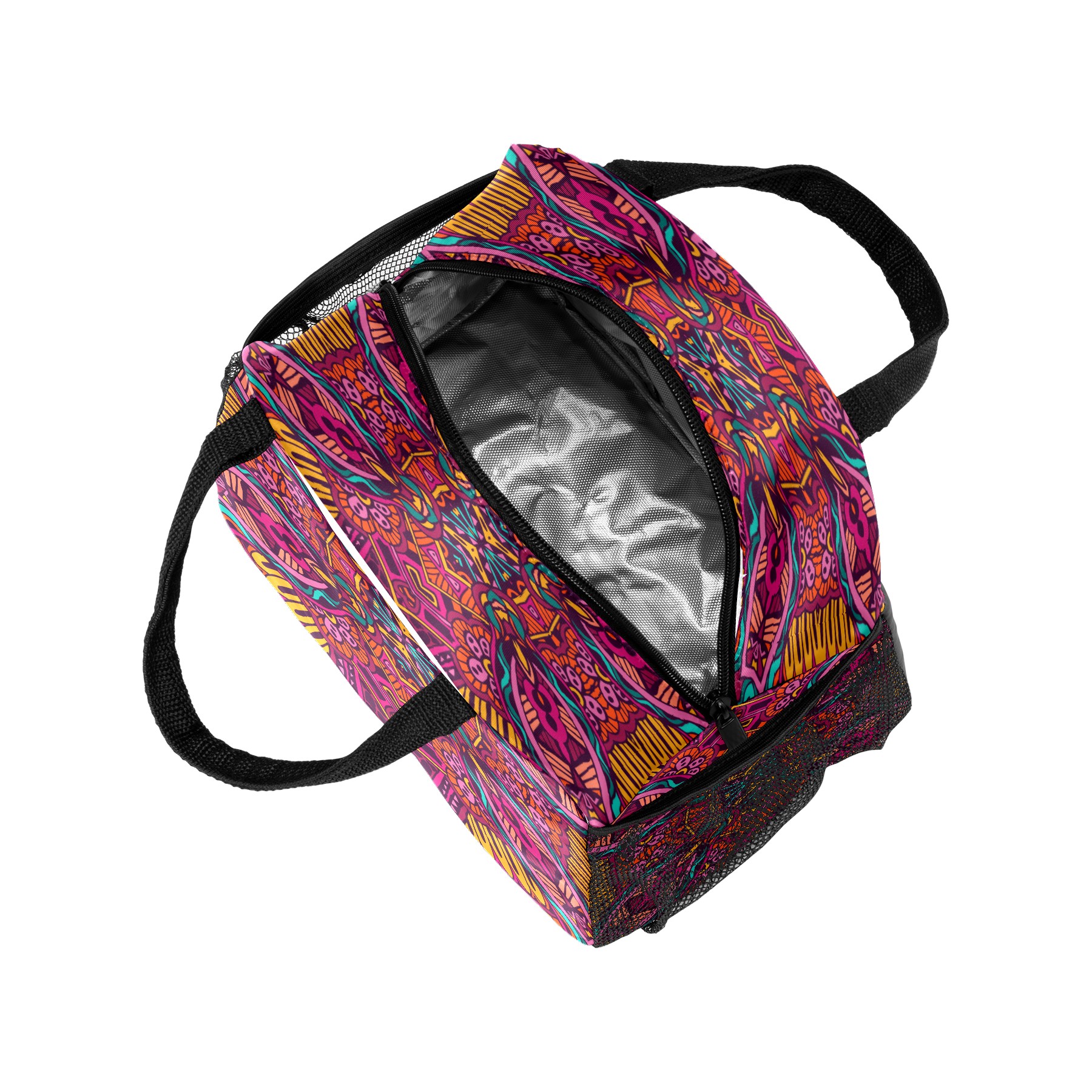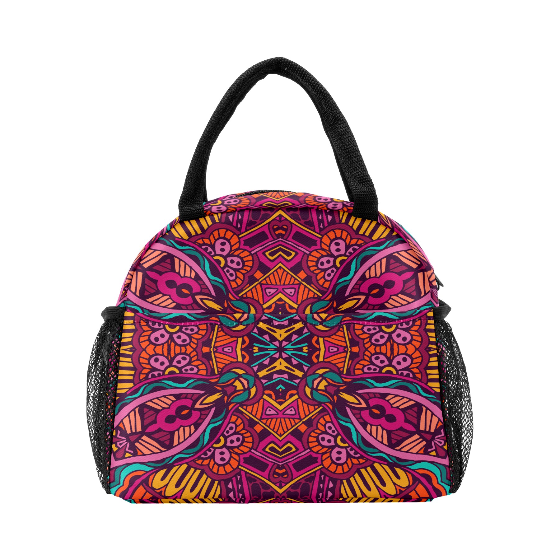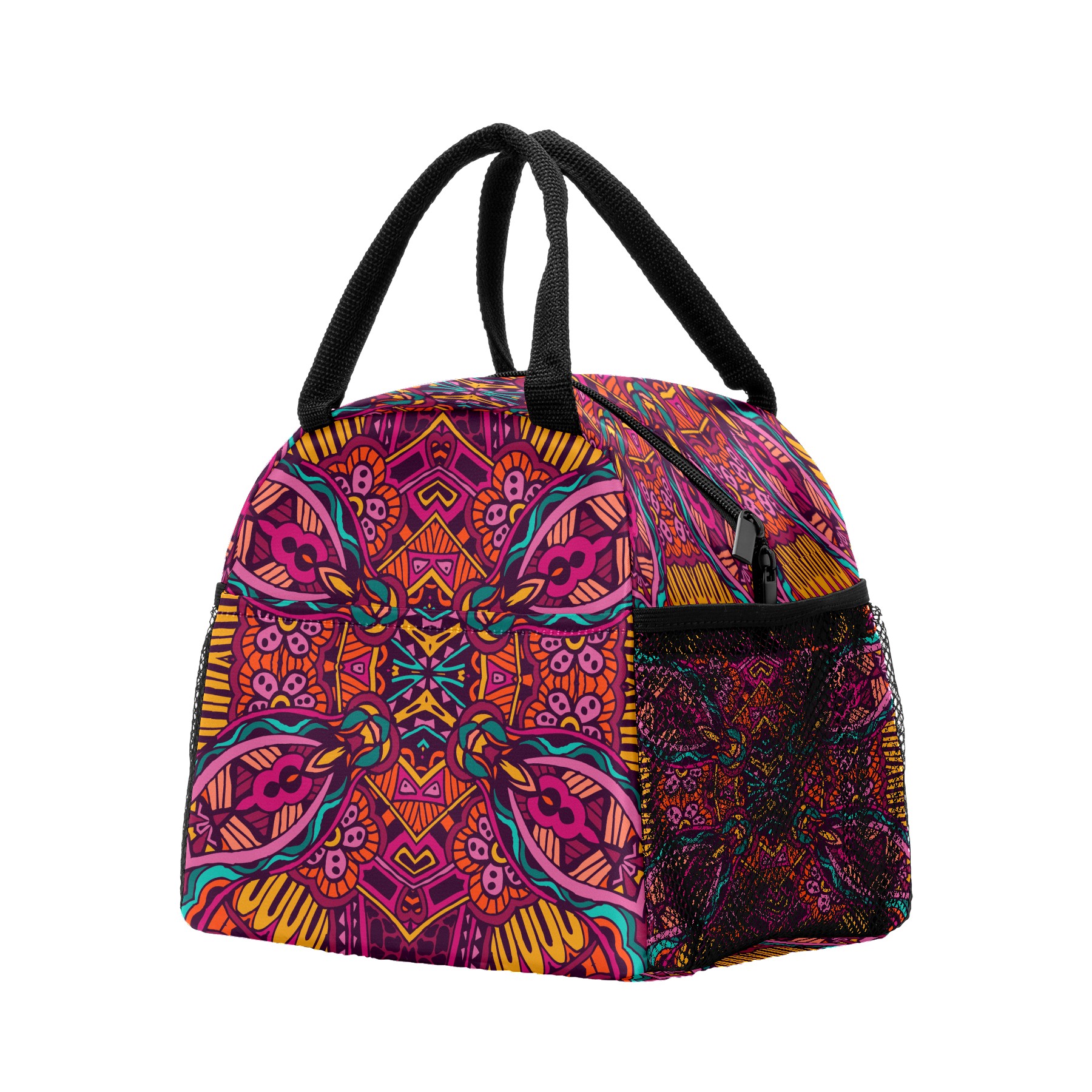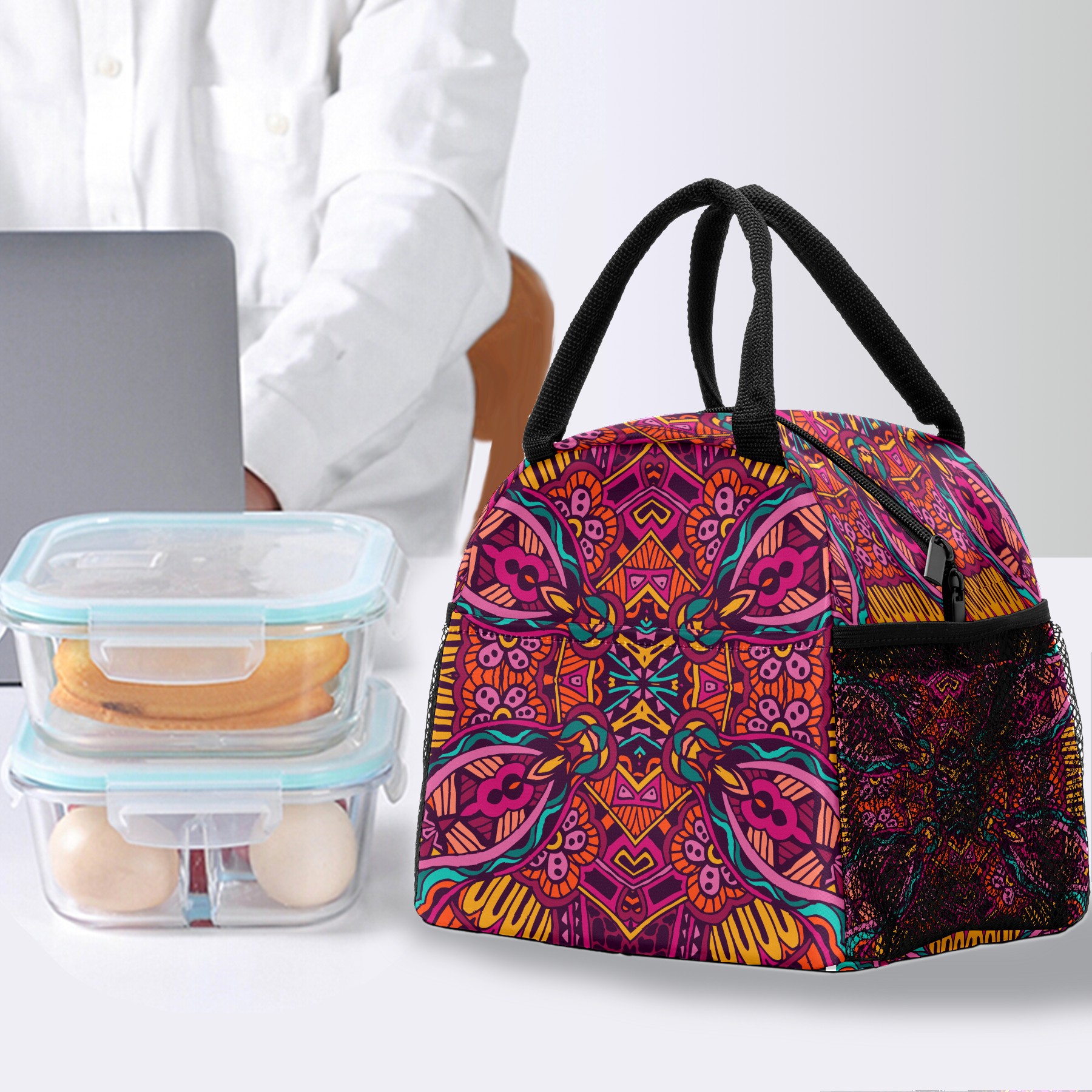 Lunch Bag for Women Men, Vintage Ethnic Boho Flower Insulated Reusable Lunch Box Thermal Cooler Tote Bag for Work Picnic Hiking Travel Beach