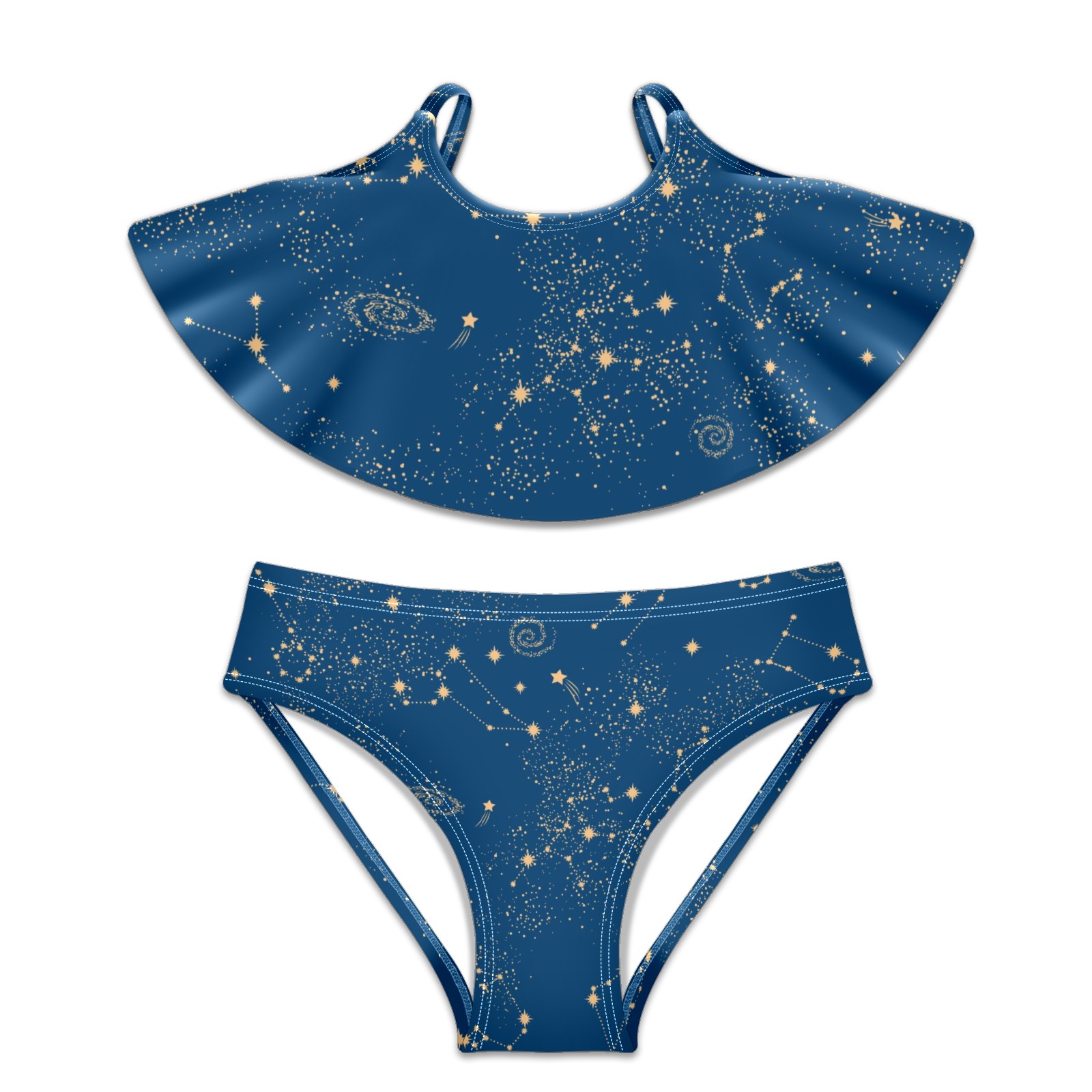 Swimsuits for Girls Two Pieces Bathing Suit Quick Dry Swimwear Constellation Starry Sky Glow Gold Moon Space S