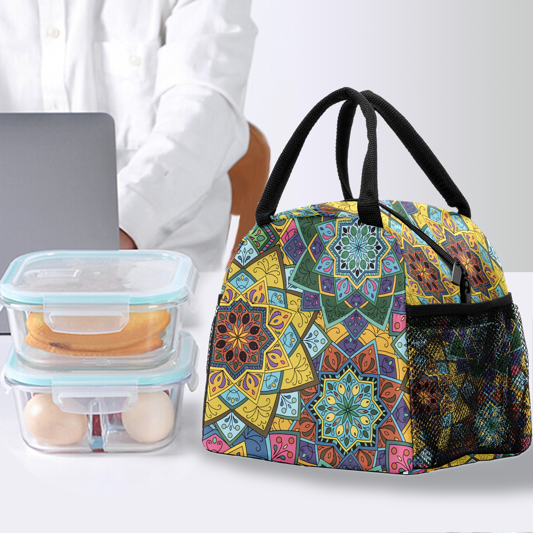 Lunch Bag for Women Men, Vintage Colorful Trippy Mandala Insulated Reusable Lunch Box Thermal Cooler Tote Bag for Work Picnic Hiking Travel Beach