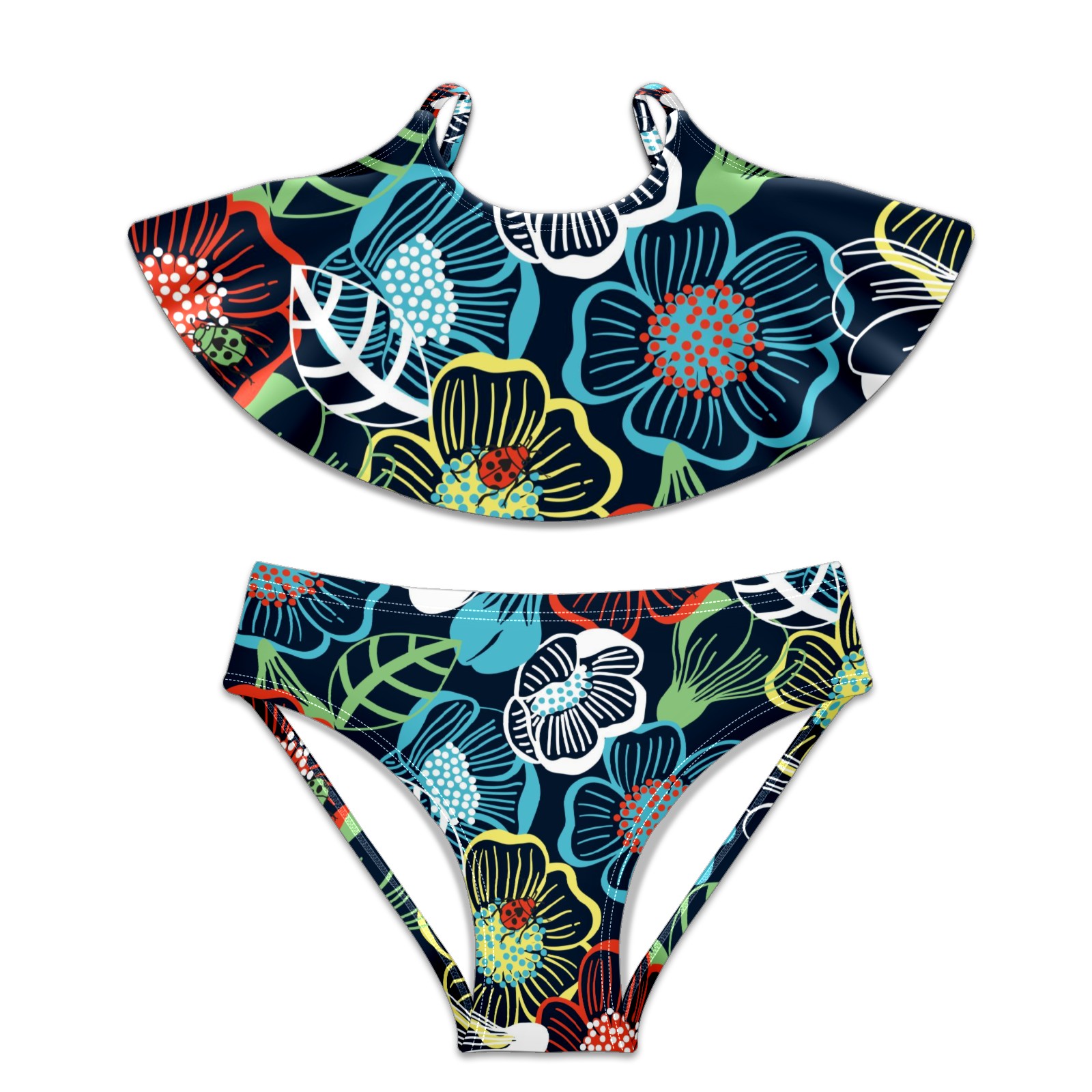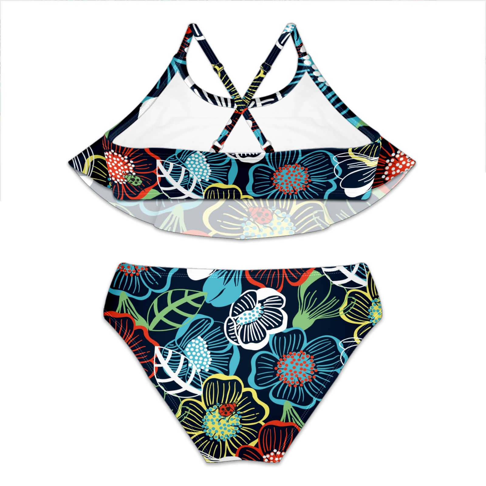 Swimsuits for Girls Two Pieces Bathing Suit Quick Dry Swimwear Colorful Large Floral Pattern Blue White Red S