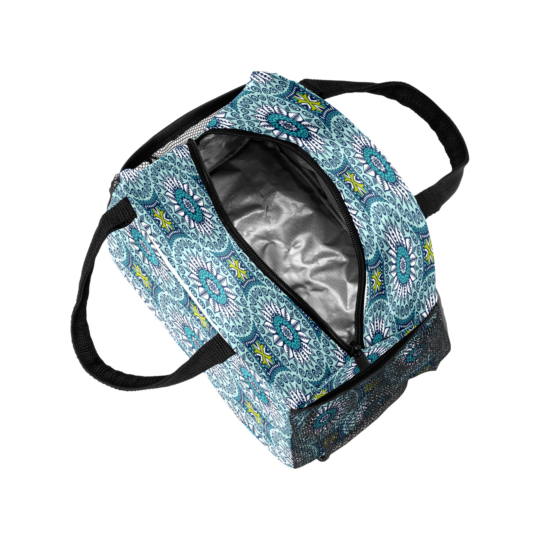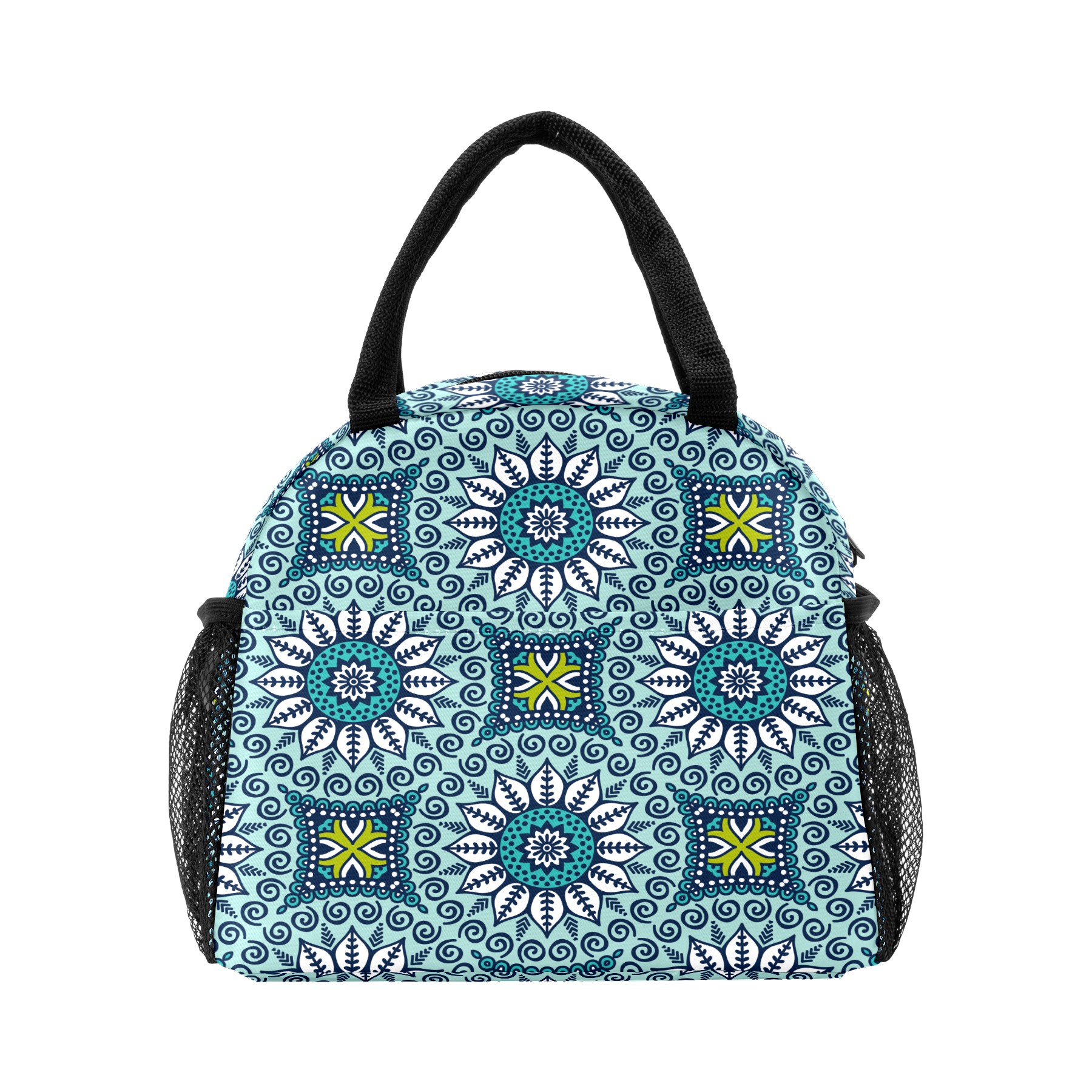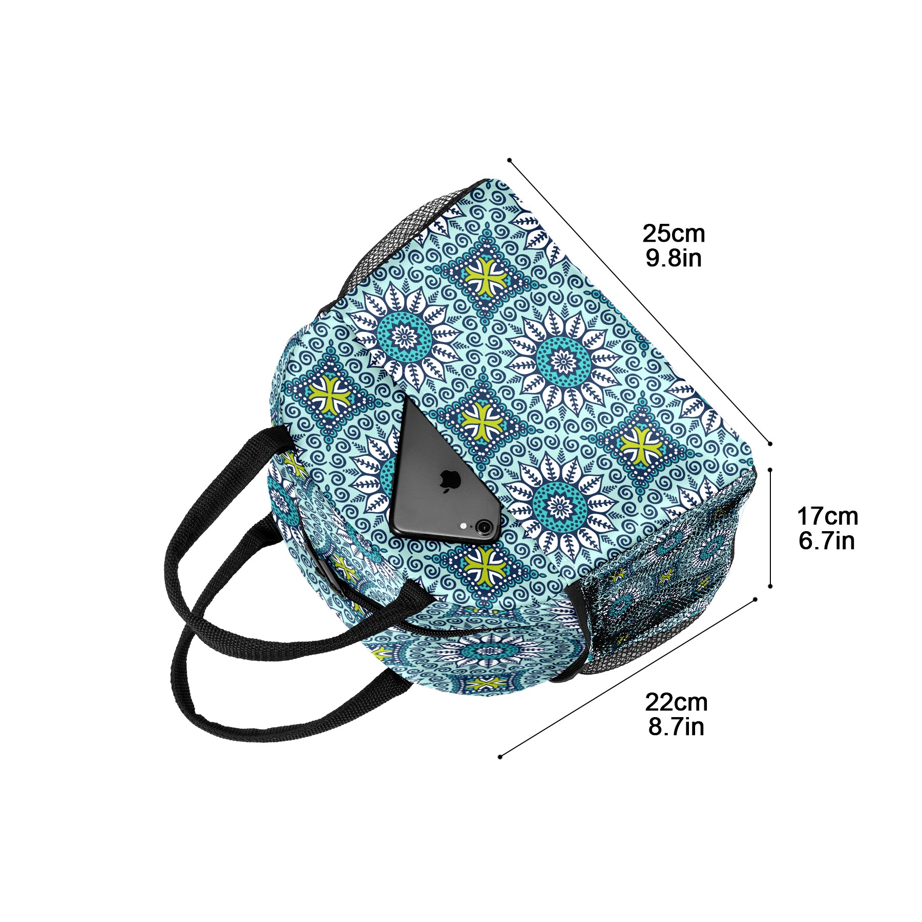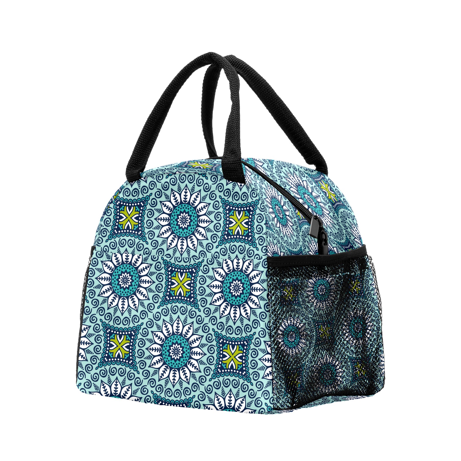Lunch Bag for Women Men, Vintage Ethnic Boho Floral Blue Insulated Reusable Lunch Box Thermal Cooler Tote Bag for Work Picnic Hiking Travel Beach