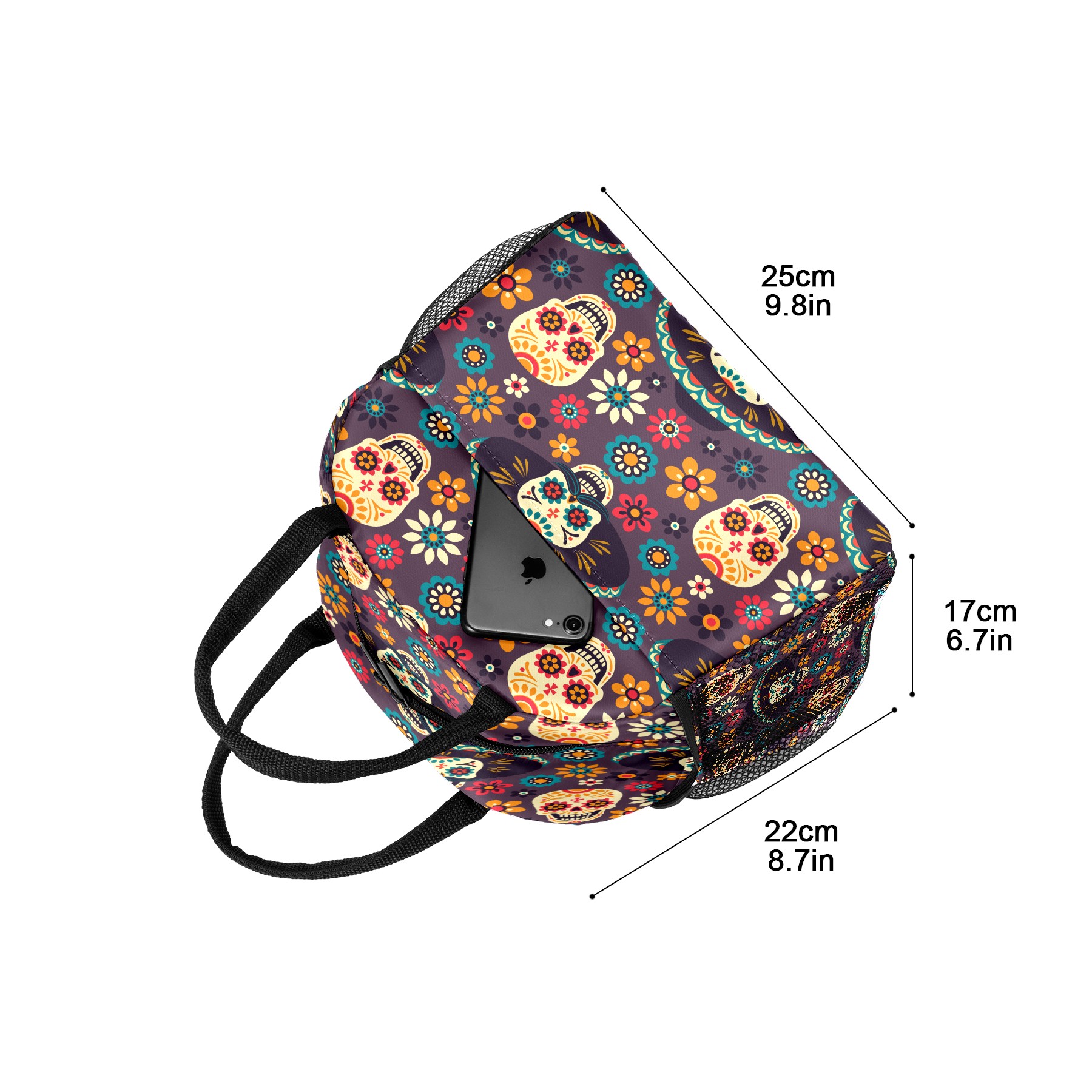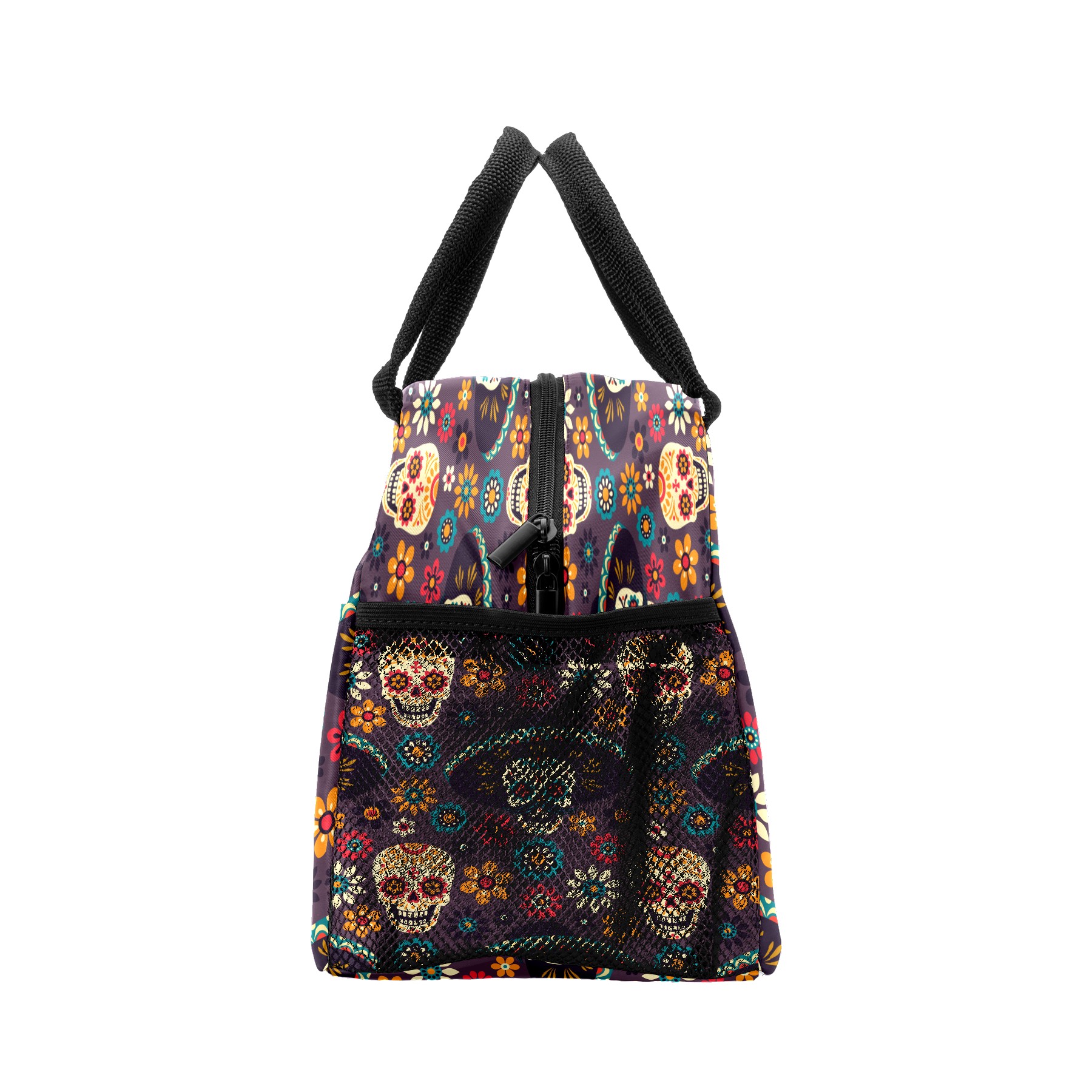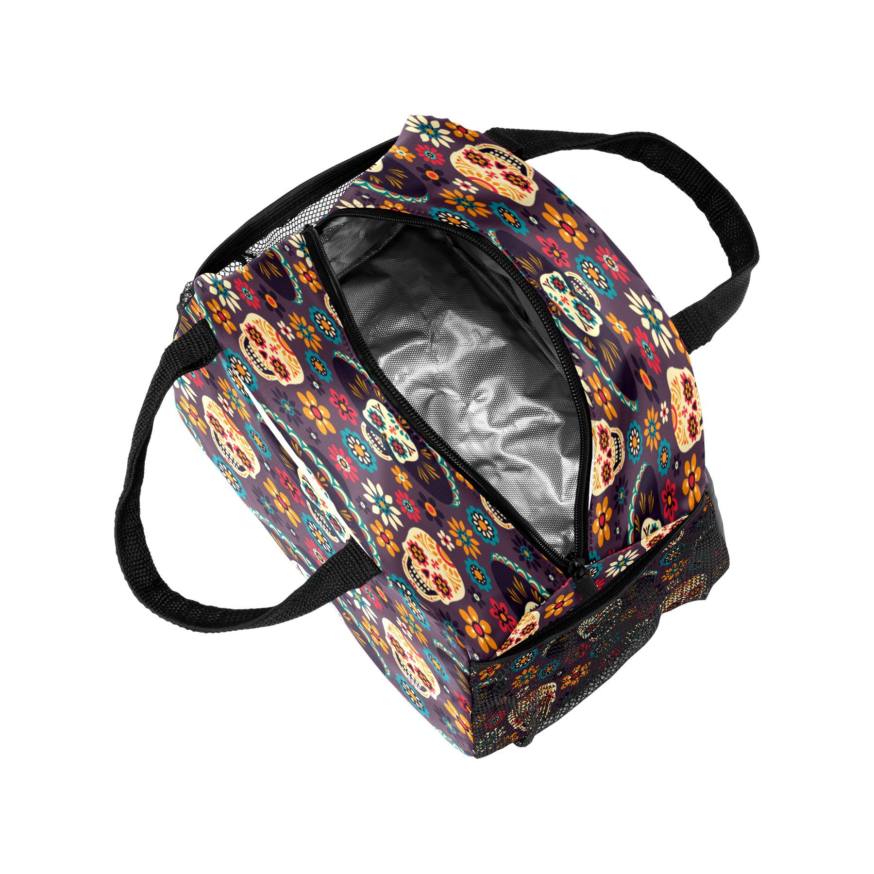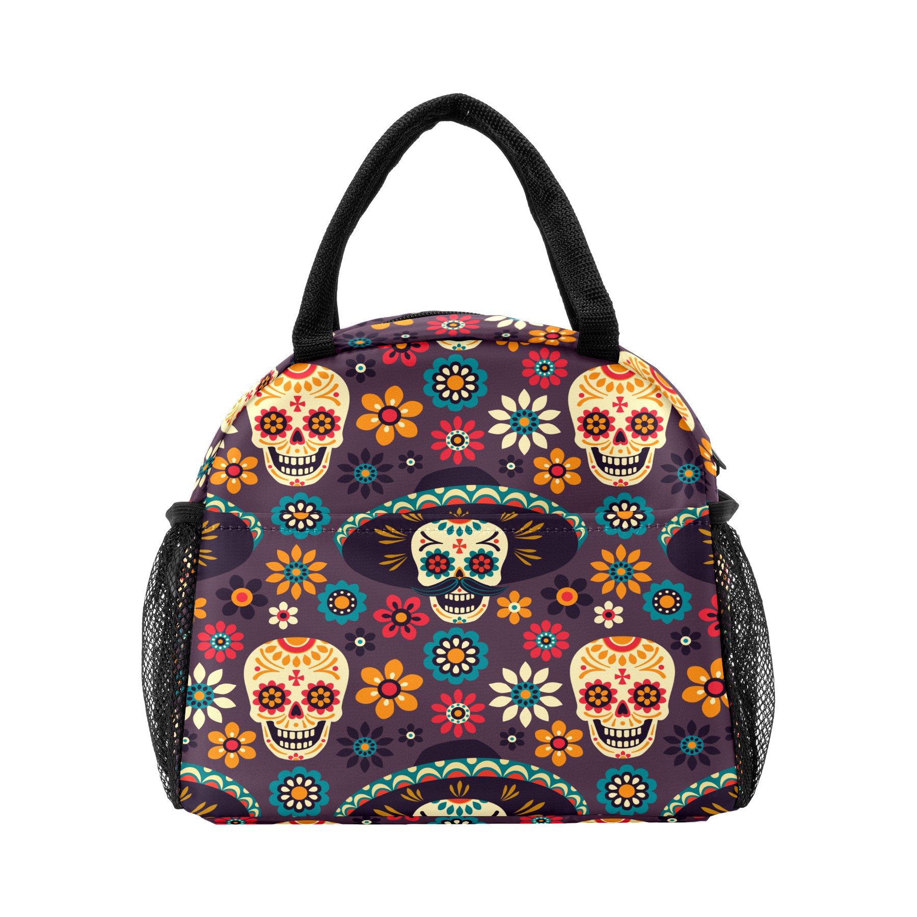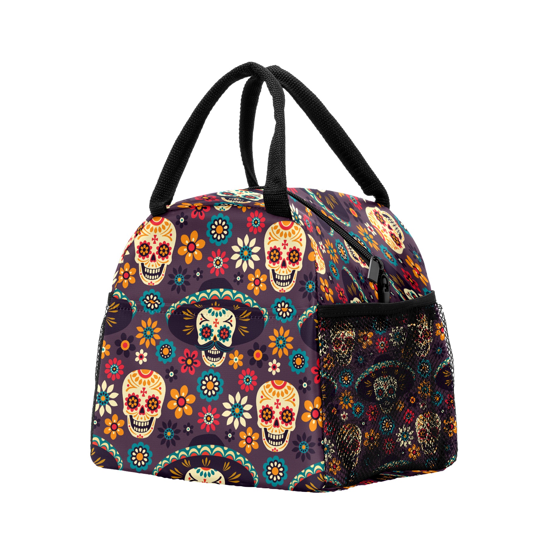 Lunch Bag for Women Men, Mexico Colorful Sugar Skull Floral Pattern Insulated Reusable Lunch Box Thermal Cooler Tote Bag for Work Picnic Hiking Travel Beach