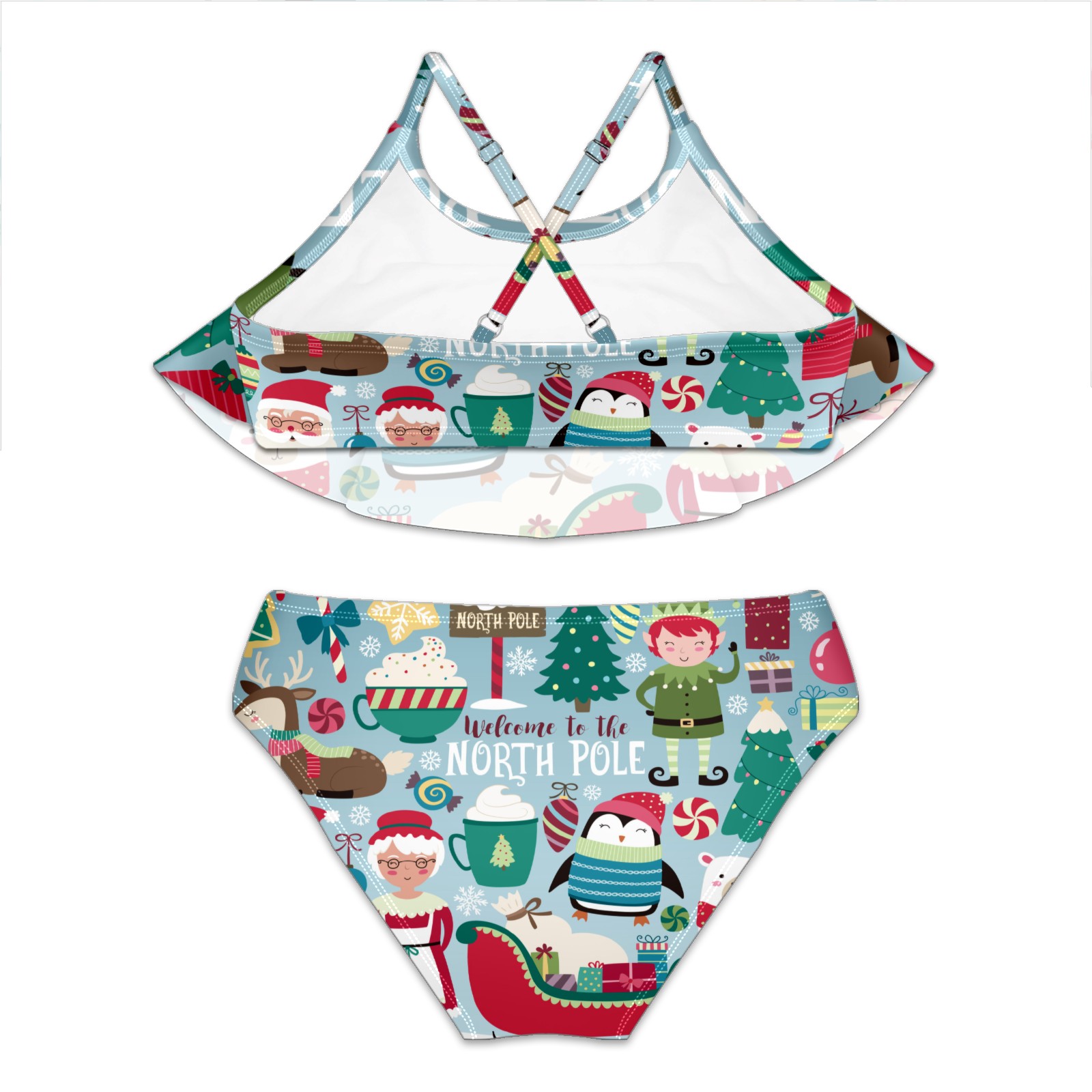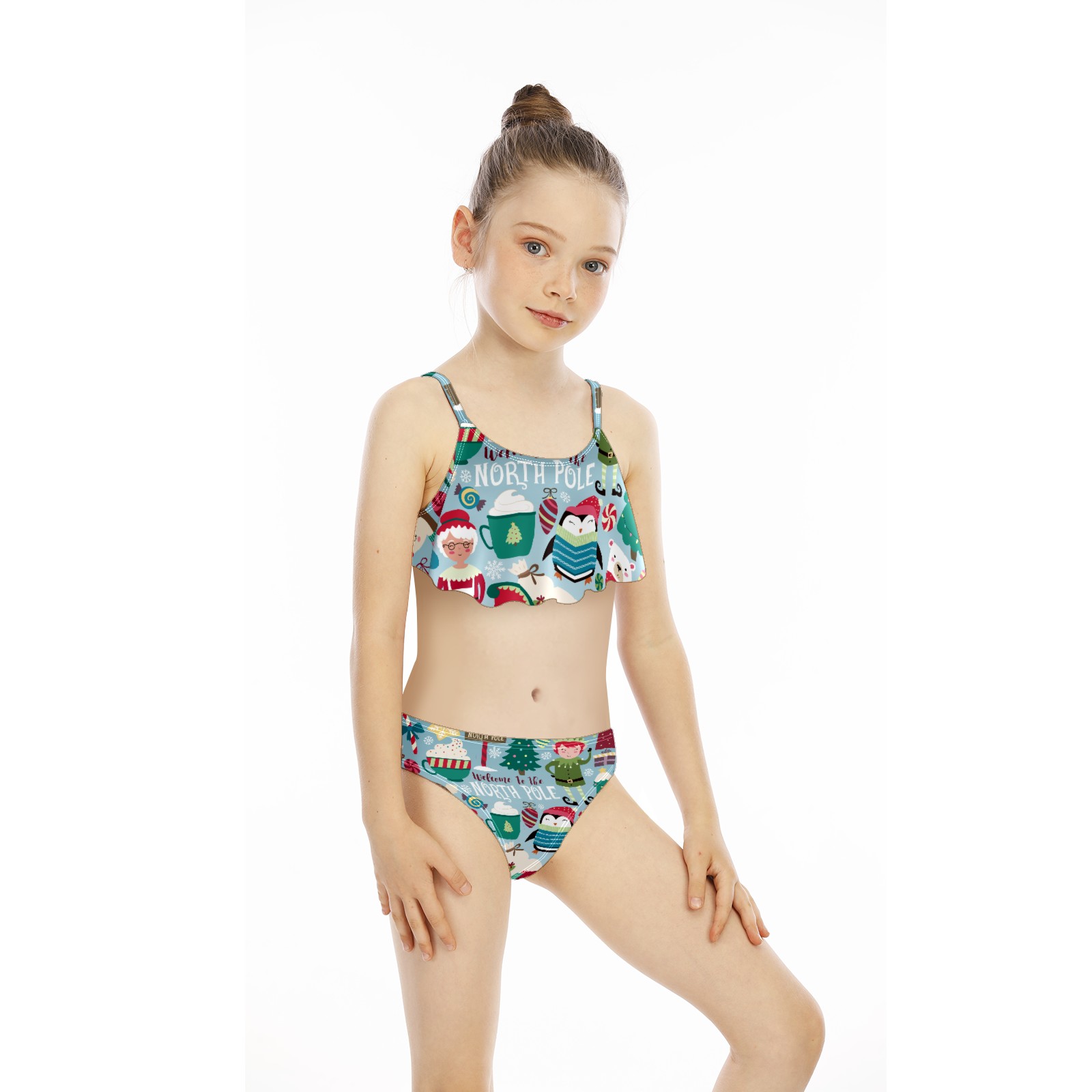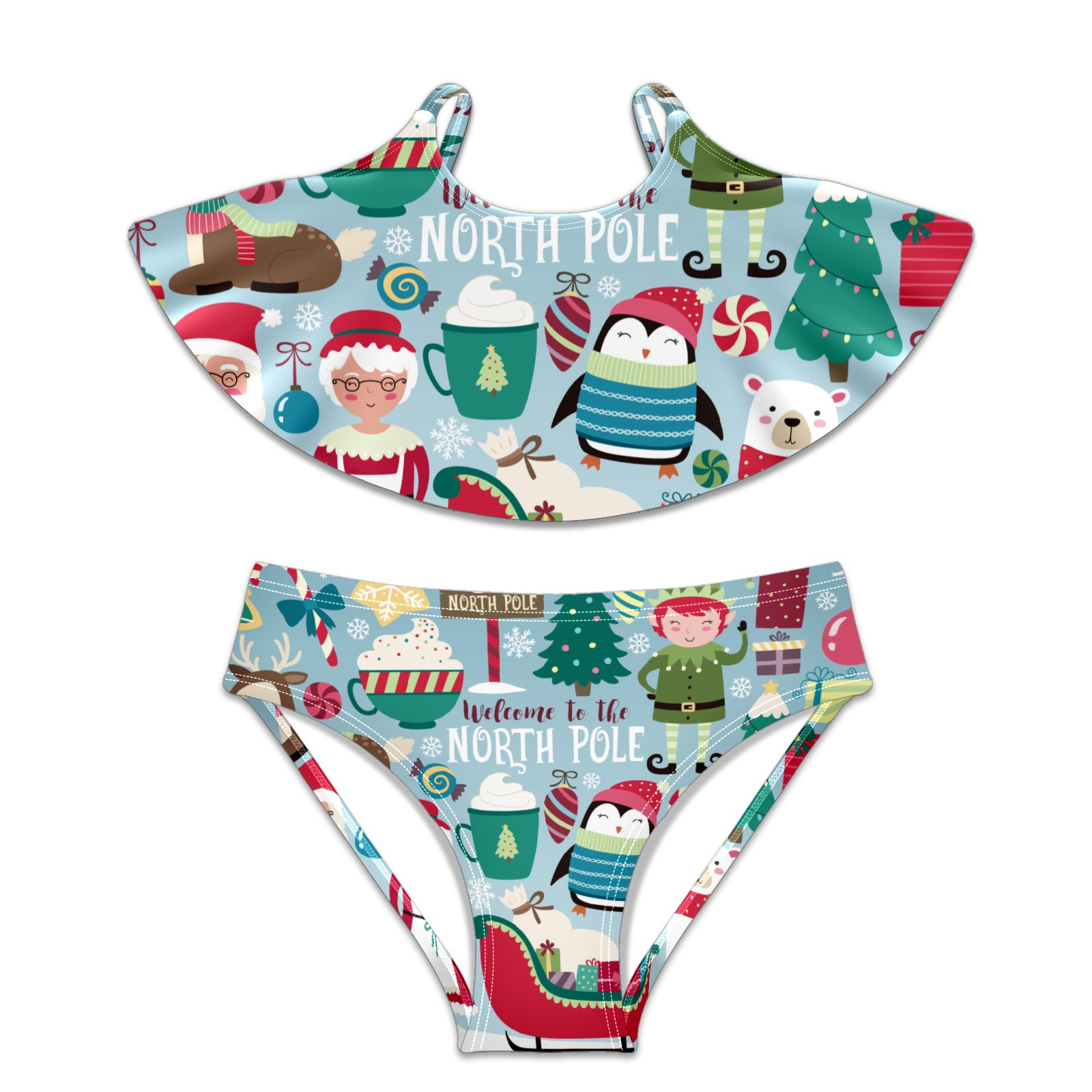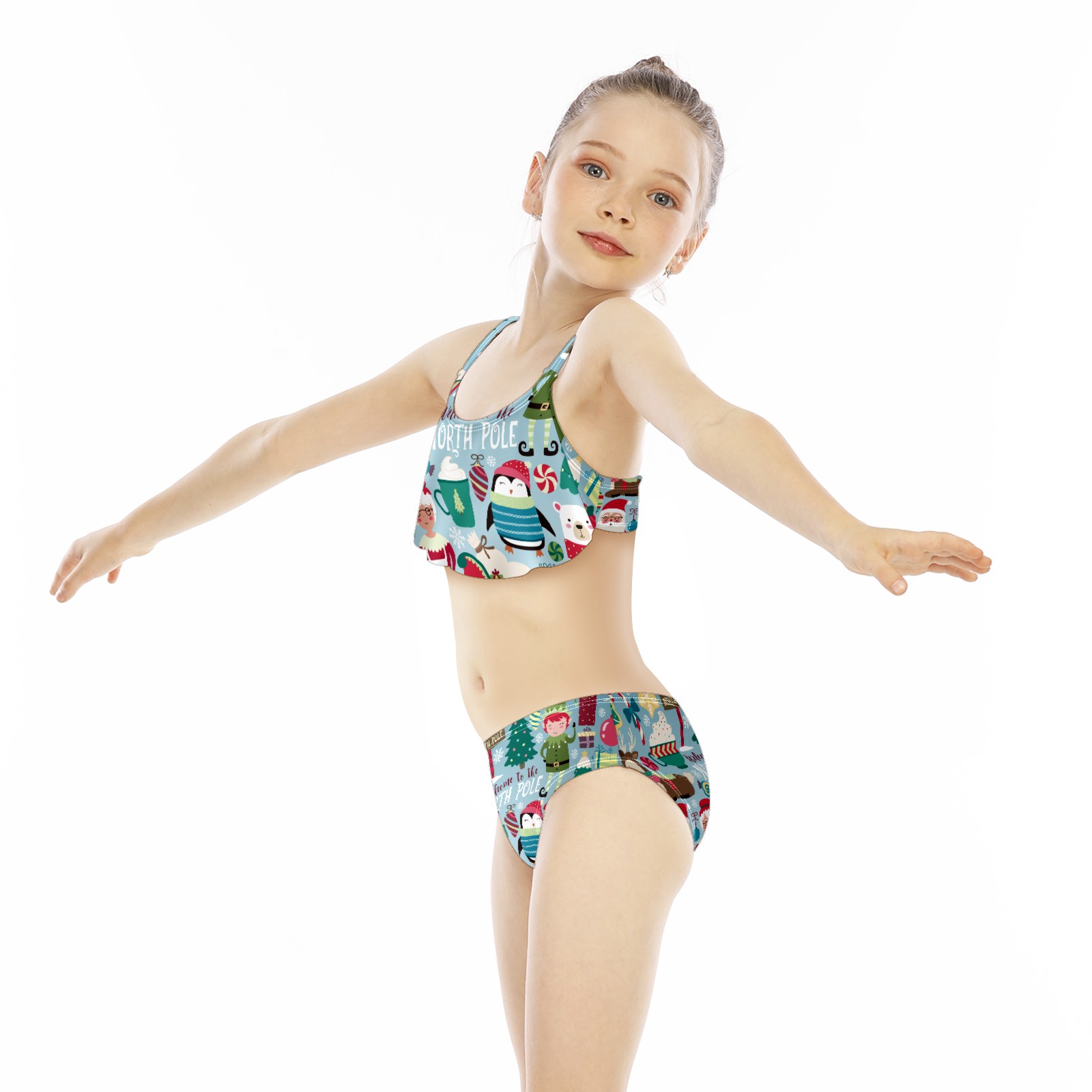 Swimsuits for Girls Two Pieces Bathing Suit Quick Dry Swimwear Christmas Santa Claus Penguin Bear North Pole S