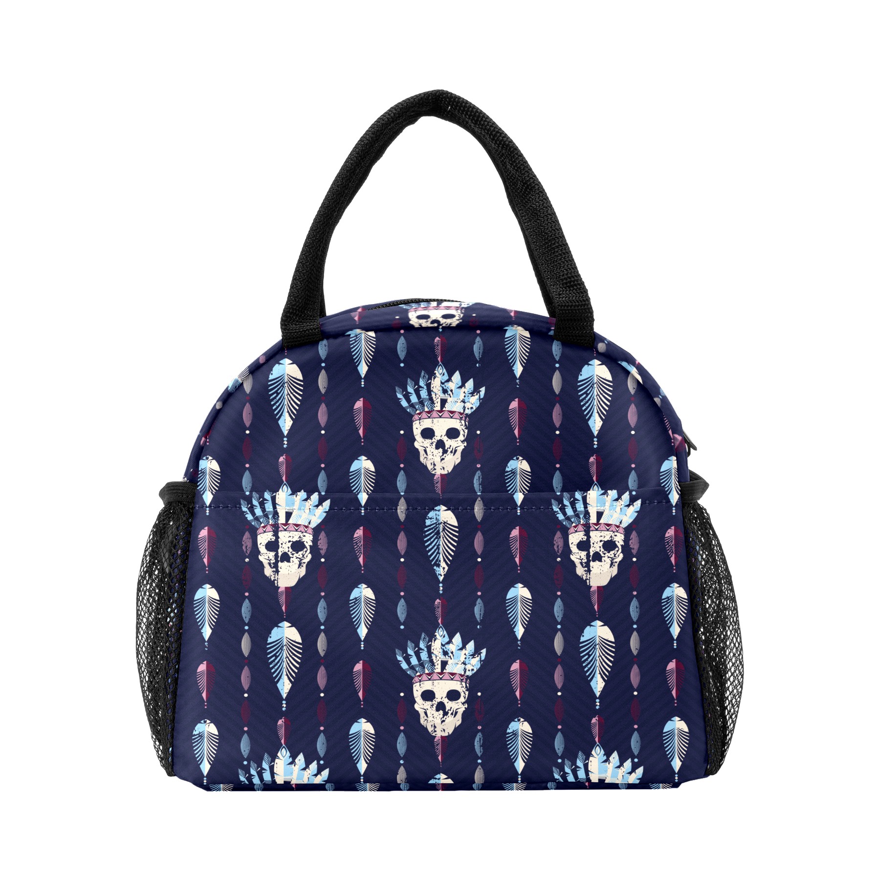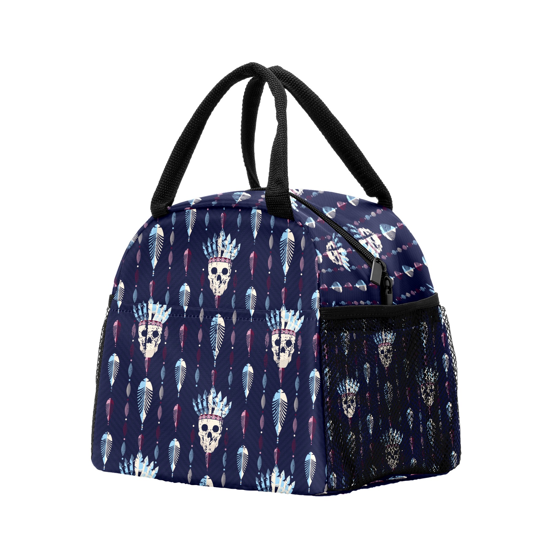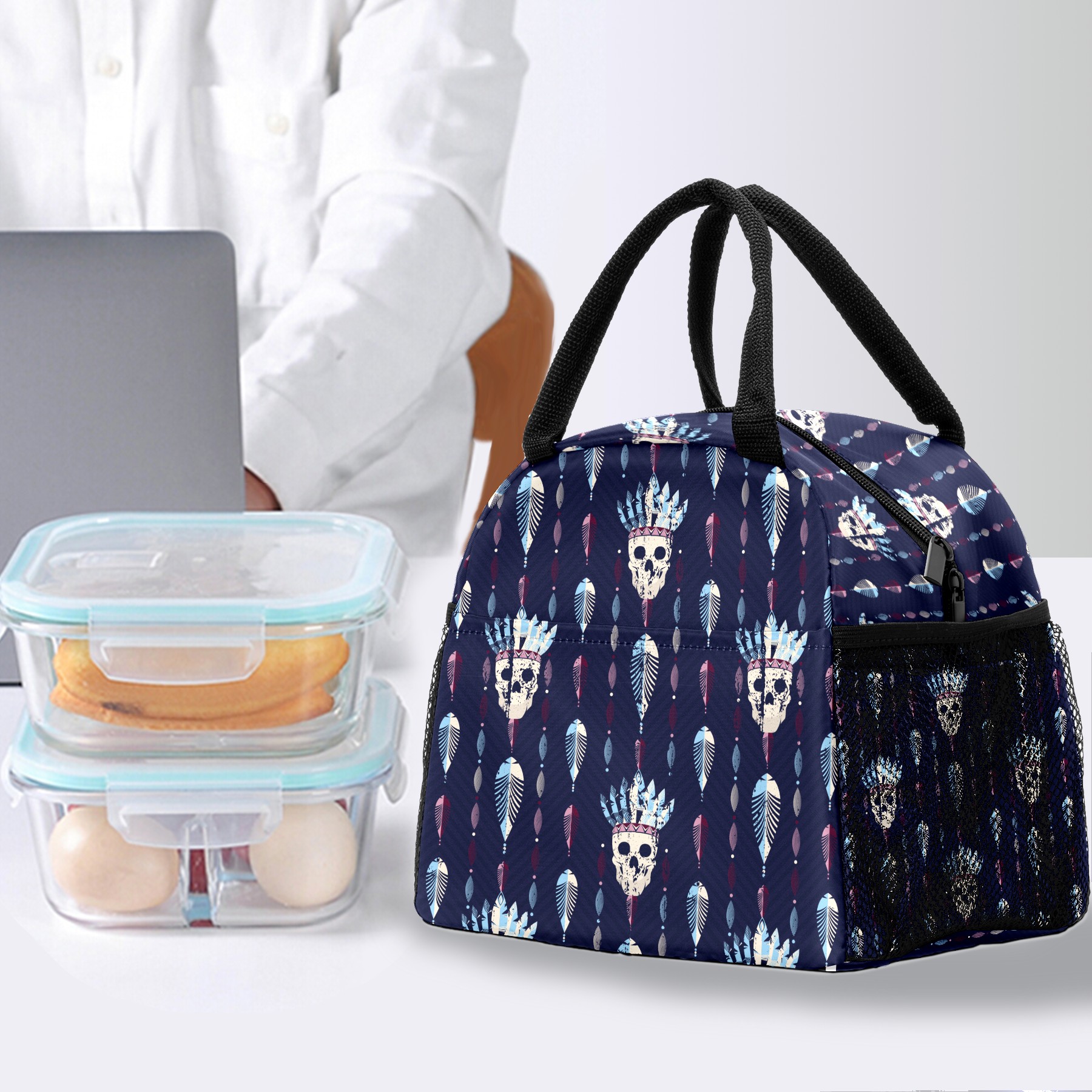 Lunch Bag for Women Men, Tribal Indian Skull Pattern Insulated Reusable Lunch Box Thermal Cooler Tote Bag for Work Picnic Hiking Travel Beach