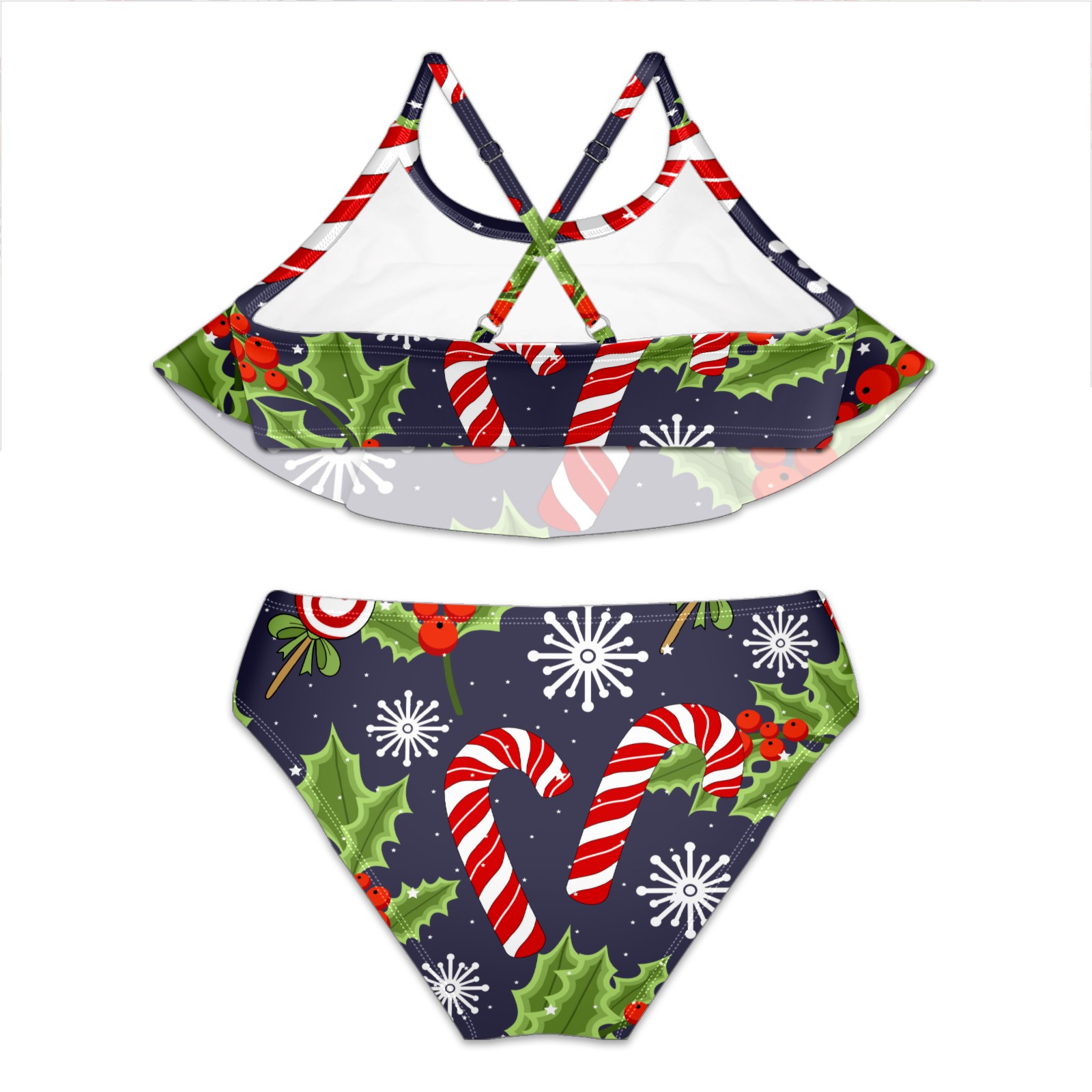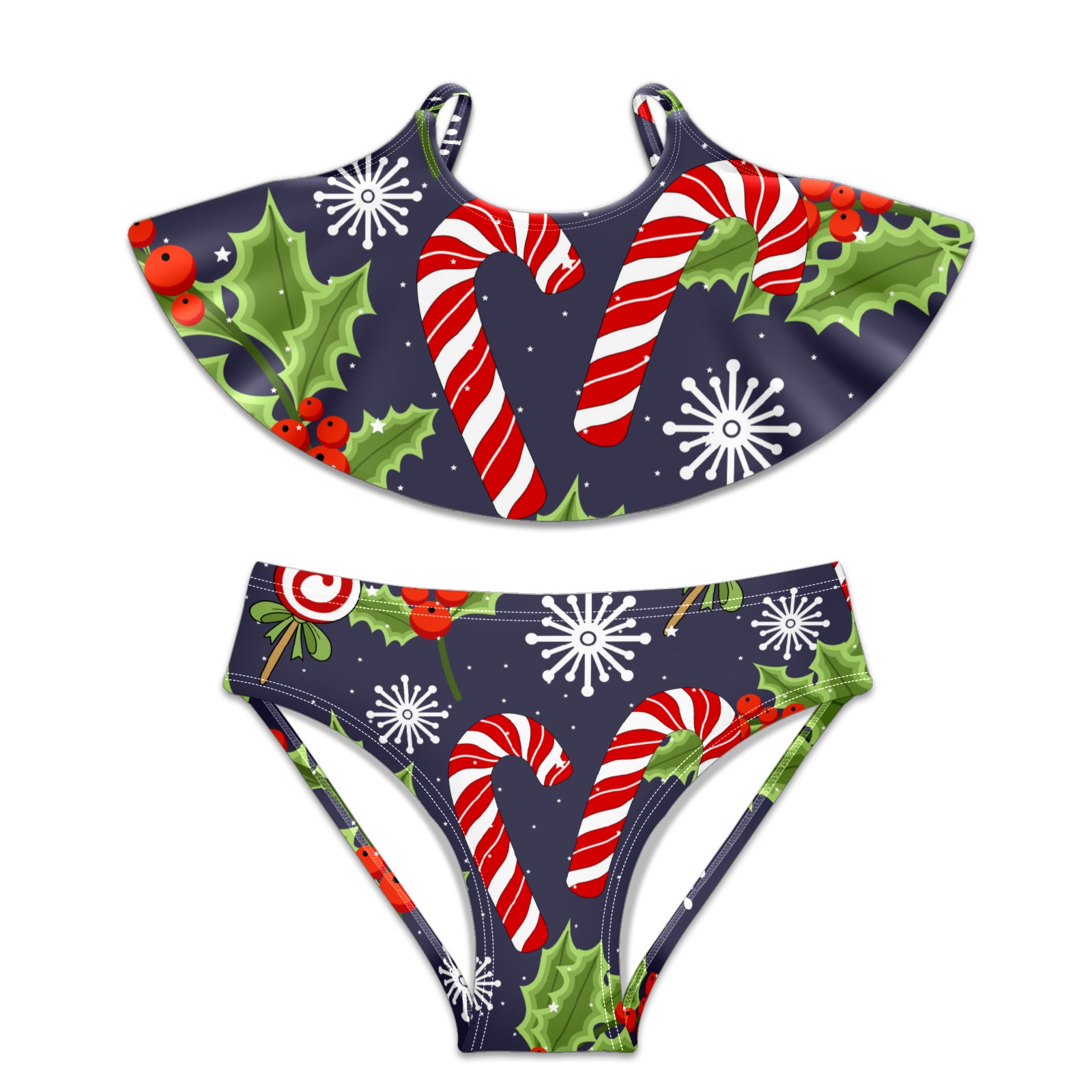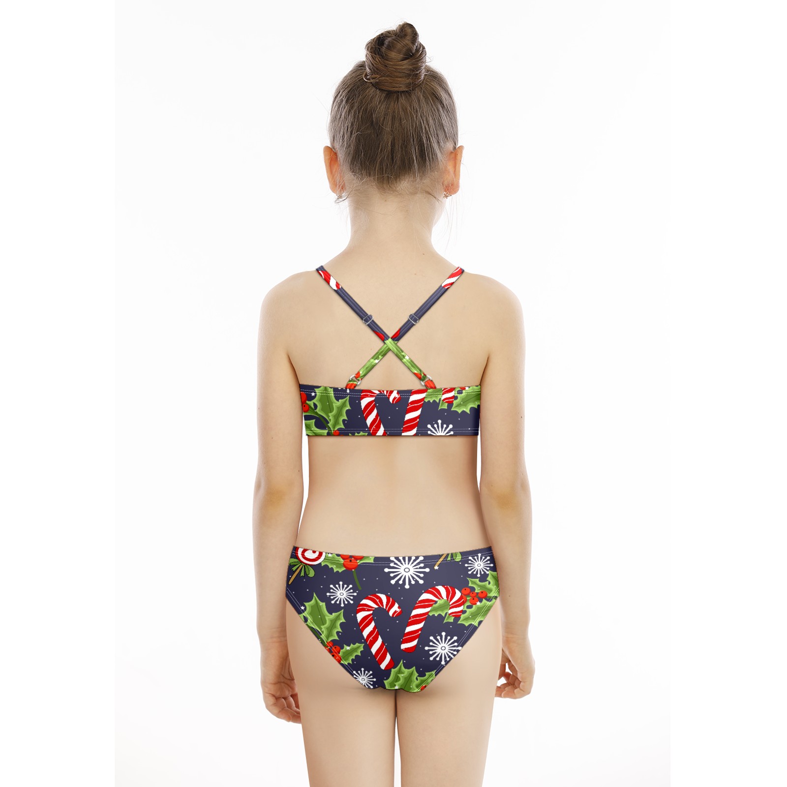 Swimsuits for Girls Two Pieces Bathing Suit Quick Dry Swimwear Christmas Candy Leaves Snowflakes S