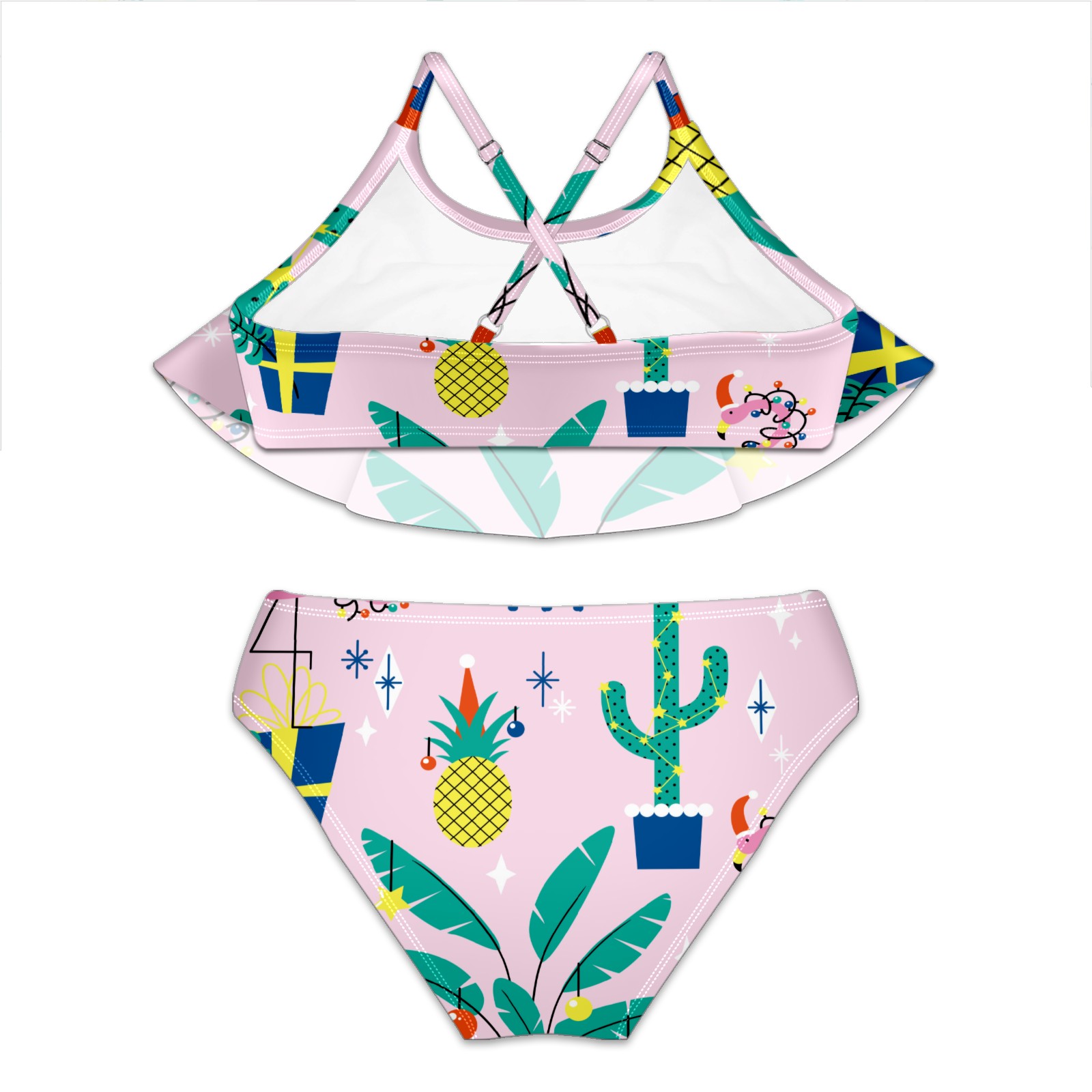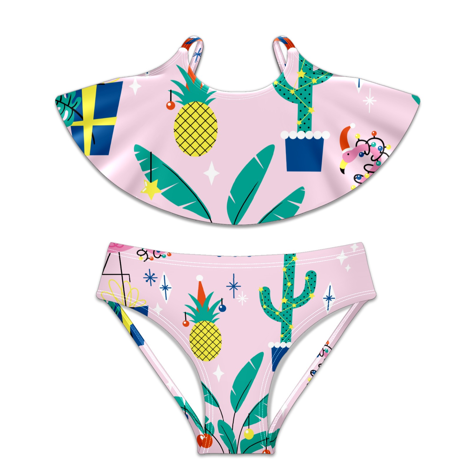 Swimsuits for Girls Two Pieces Bathing Suit Quick Dry Swimwear Christmas Pink Tropical Flamingo Pineapple Cactus S