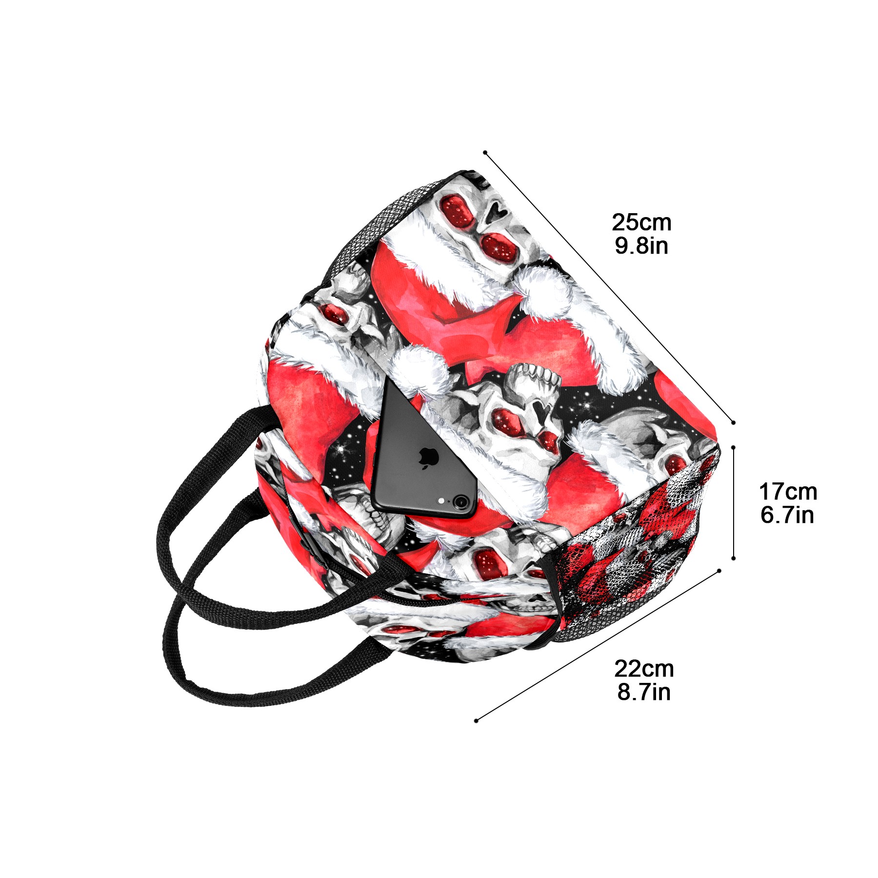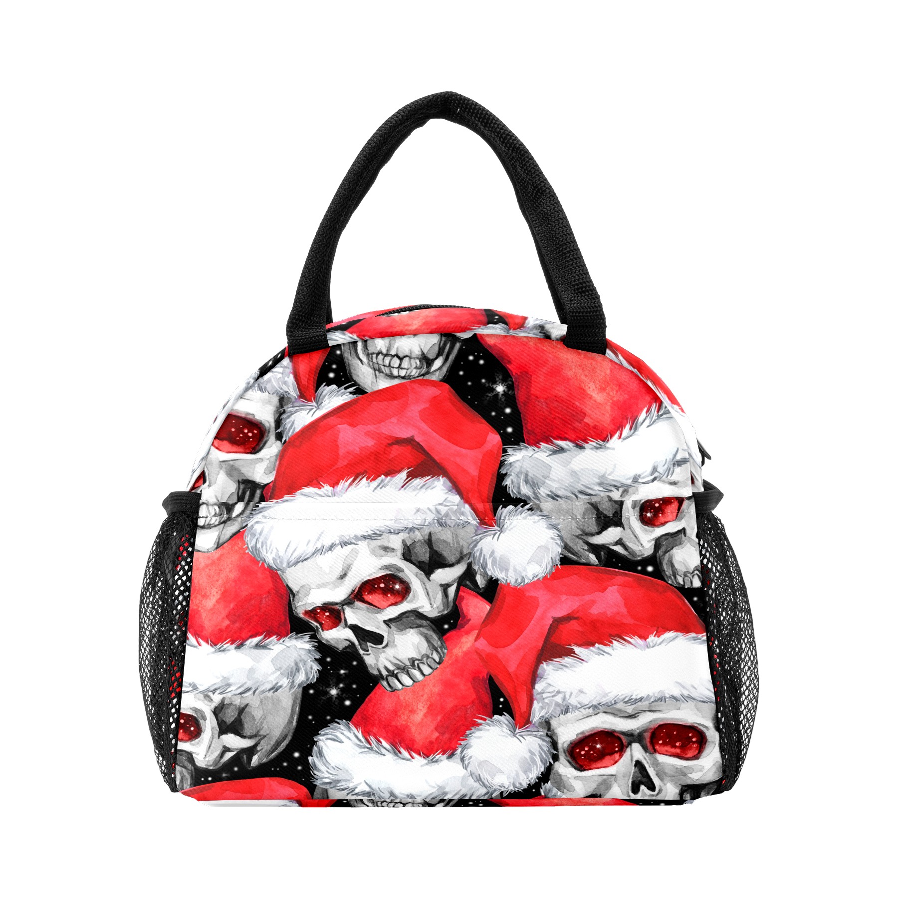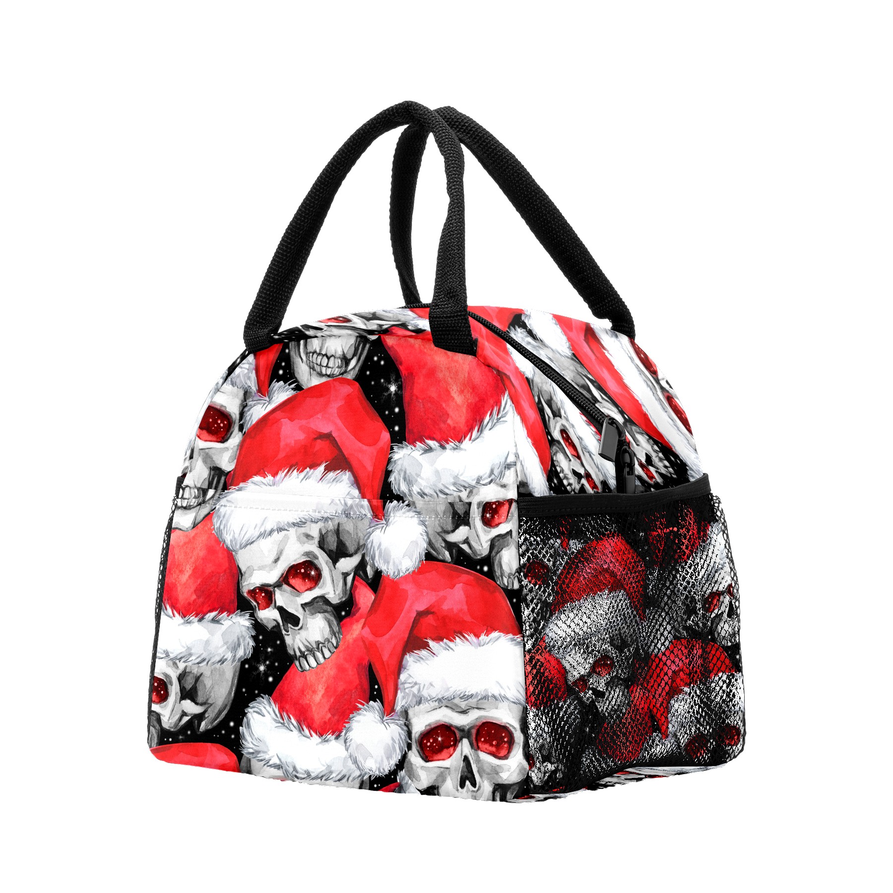 Lunch Bag for Women Men, Skull With Christmas Hat Insulated Reusable Lunch Box Thermal Cooler Tote Bag for Work Picnic Hiking Travel Beach