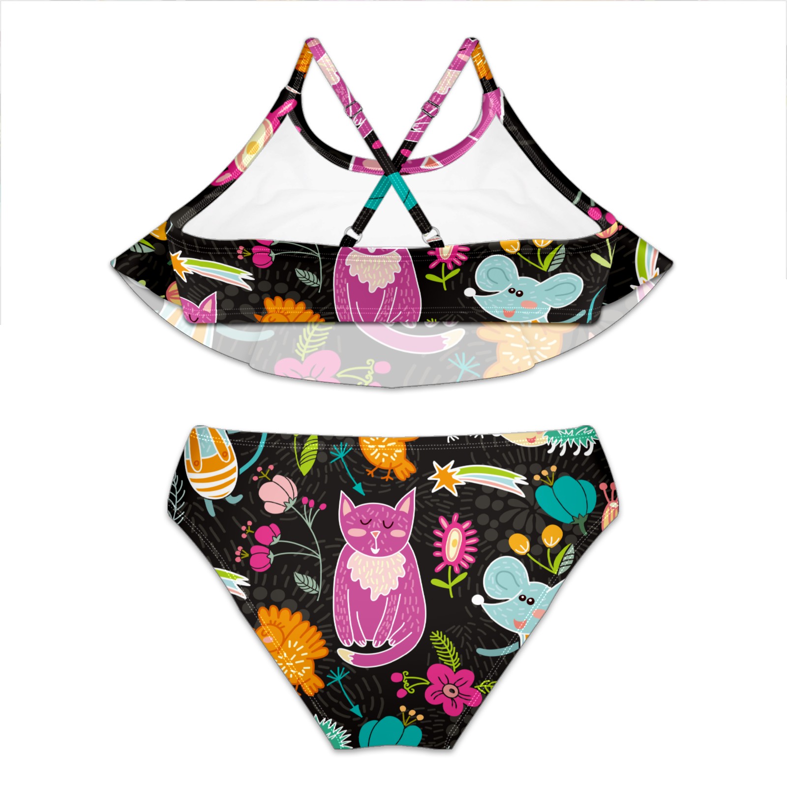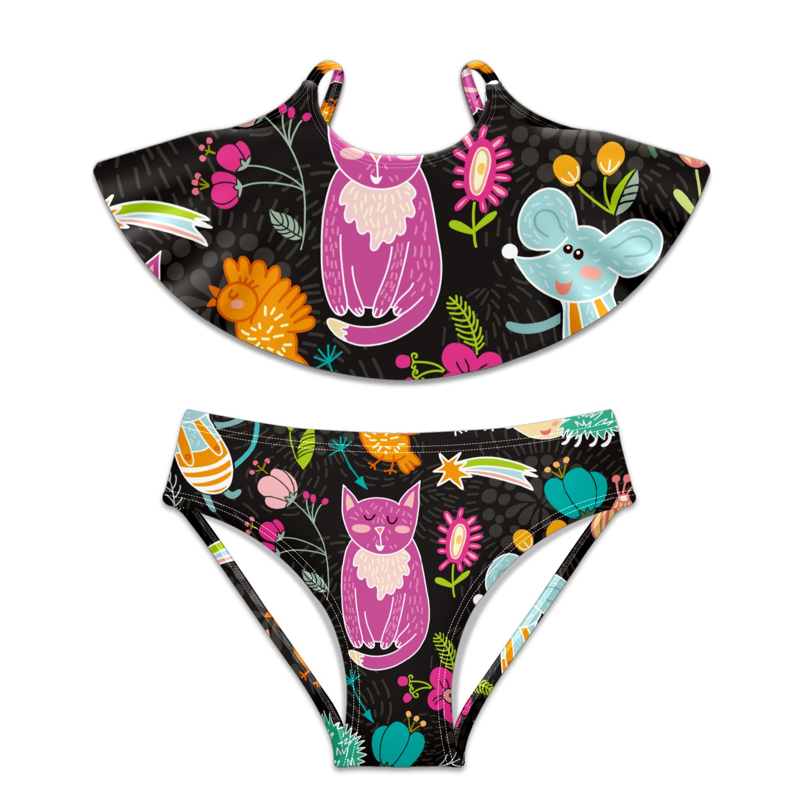 Swimsuits for Girls Two Pieces Bathing Suit Quick Dry Swimwear Cats Owls S