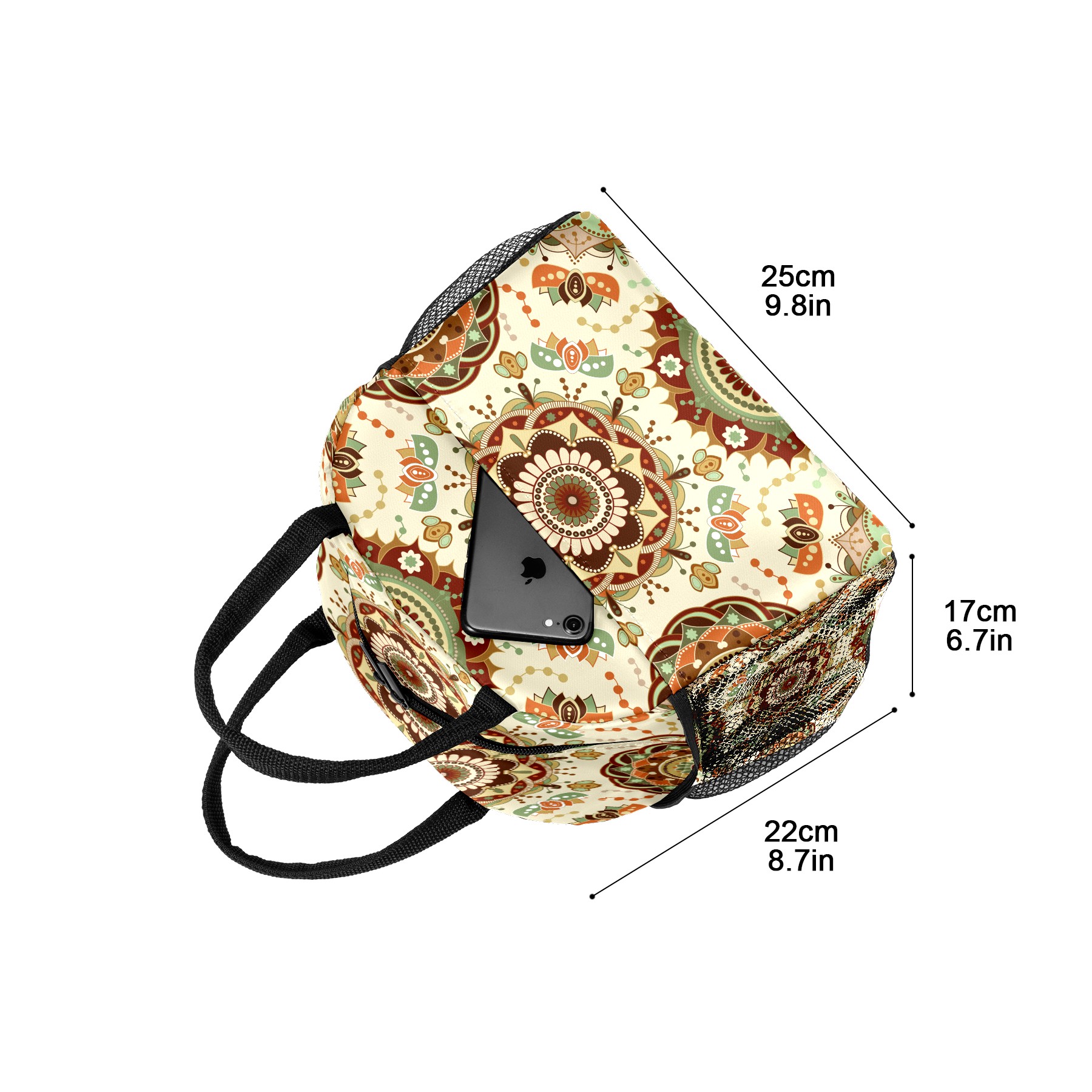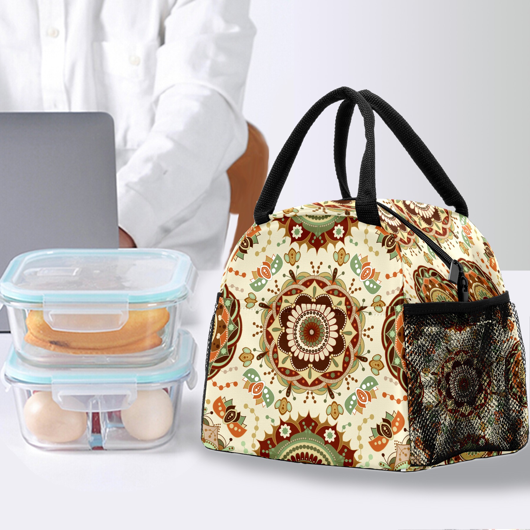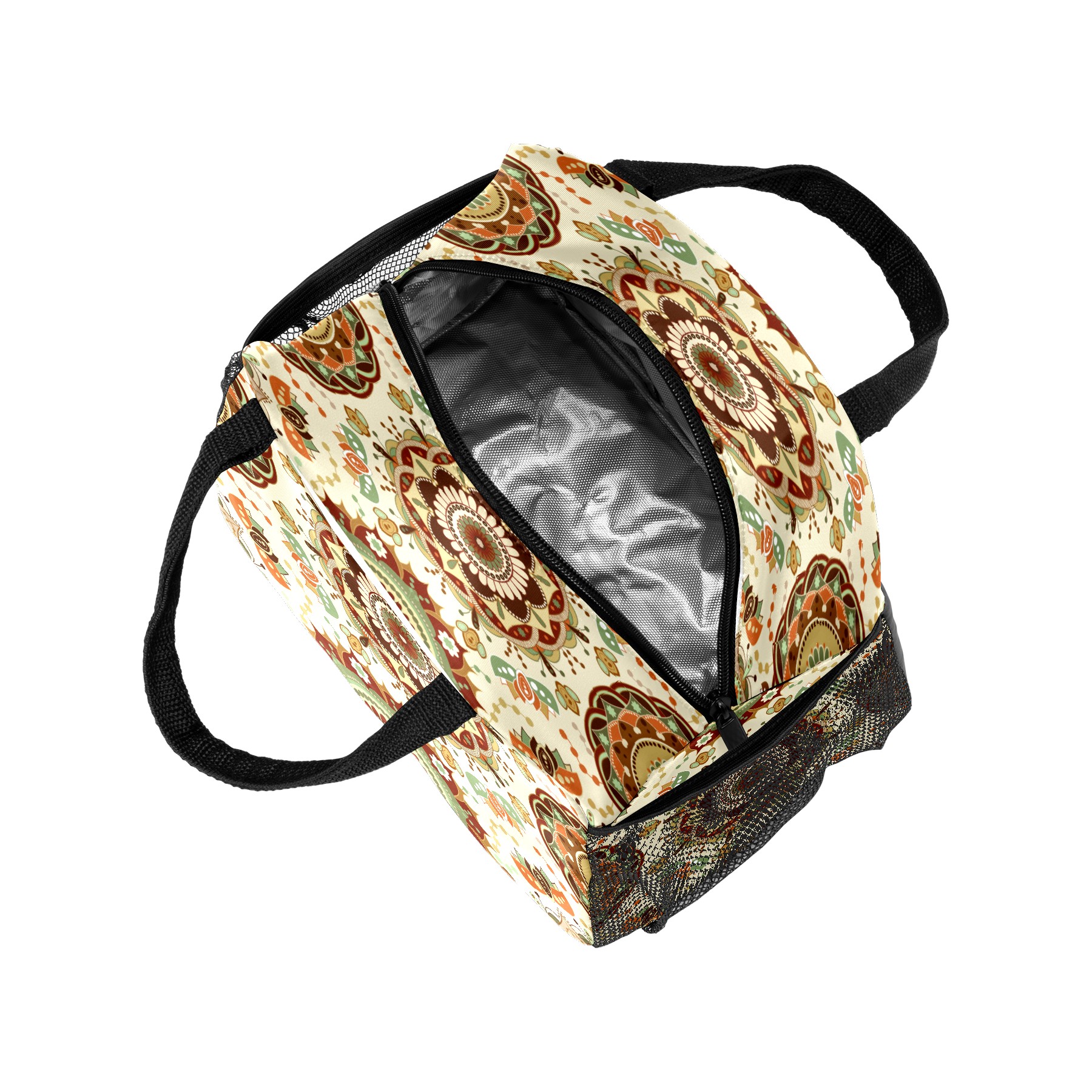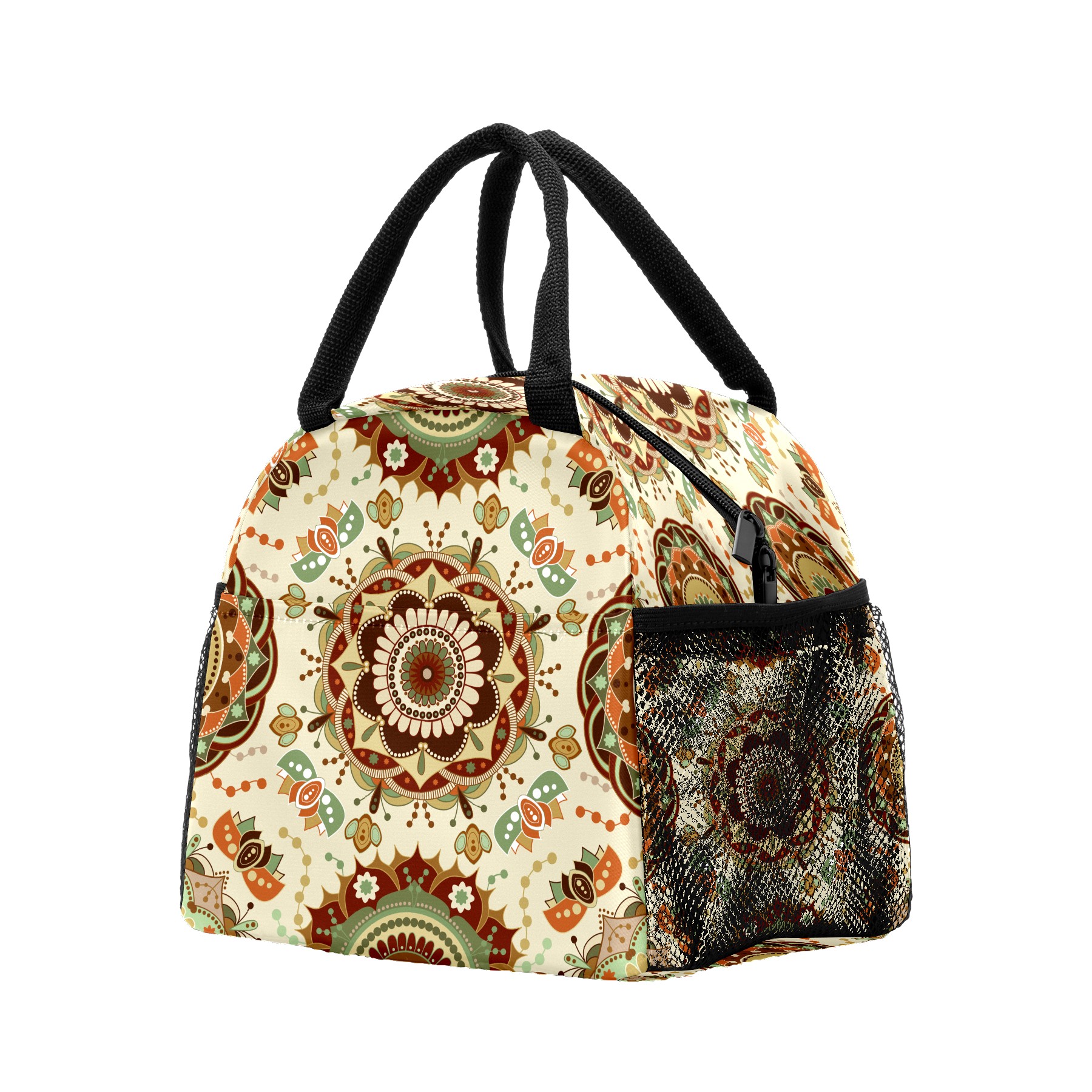 Lunch Bag for Women Men, Retro Trippy Mandala Floral Insulated Reusable Lunch Box Thermal Cooler Tote Bag for Work Picnic Hiking Travel Beach