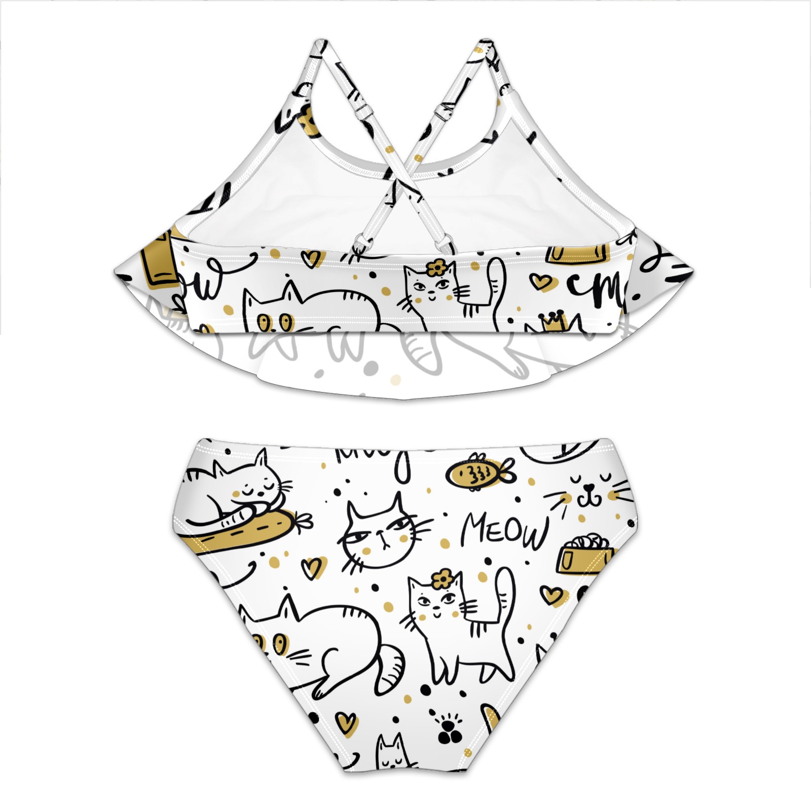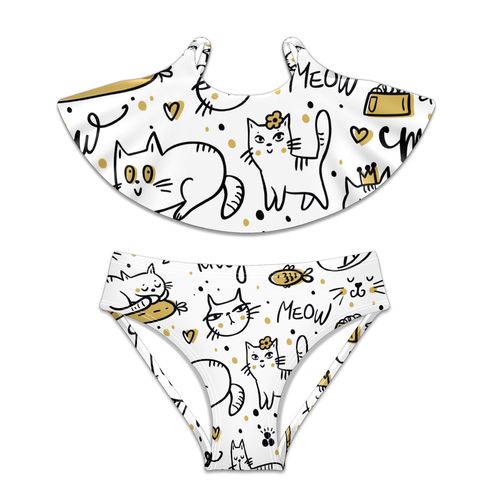 Swimsuits for Girls Two Pieces Bathing Suit Quick Dry Swimwear Cat Neko Kitten Kitty Fish Sleep S