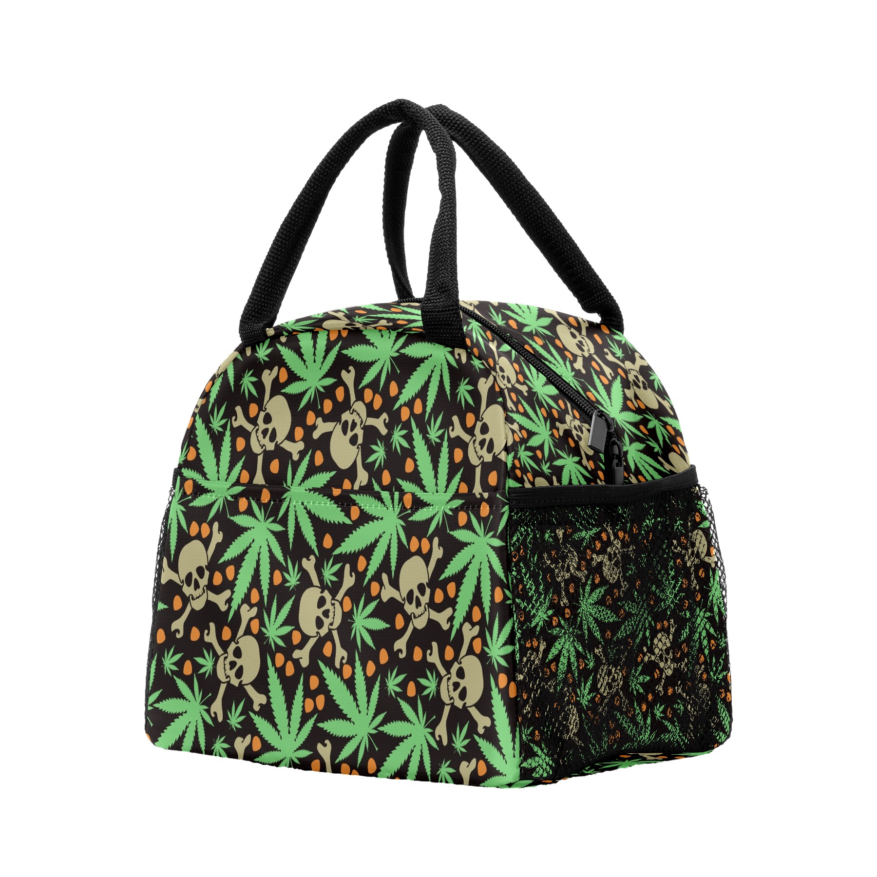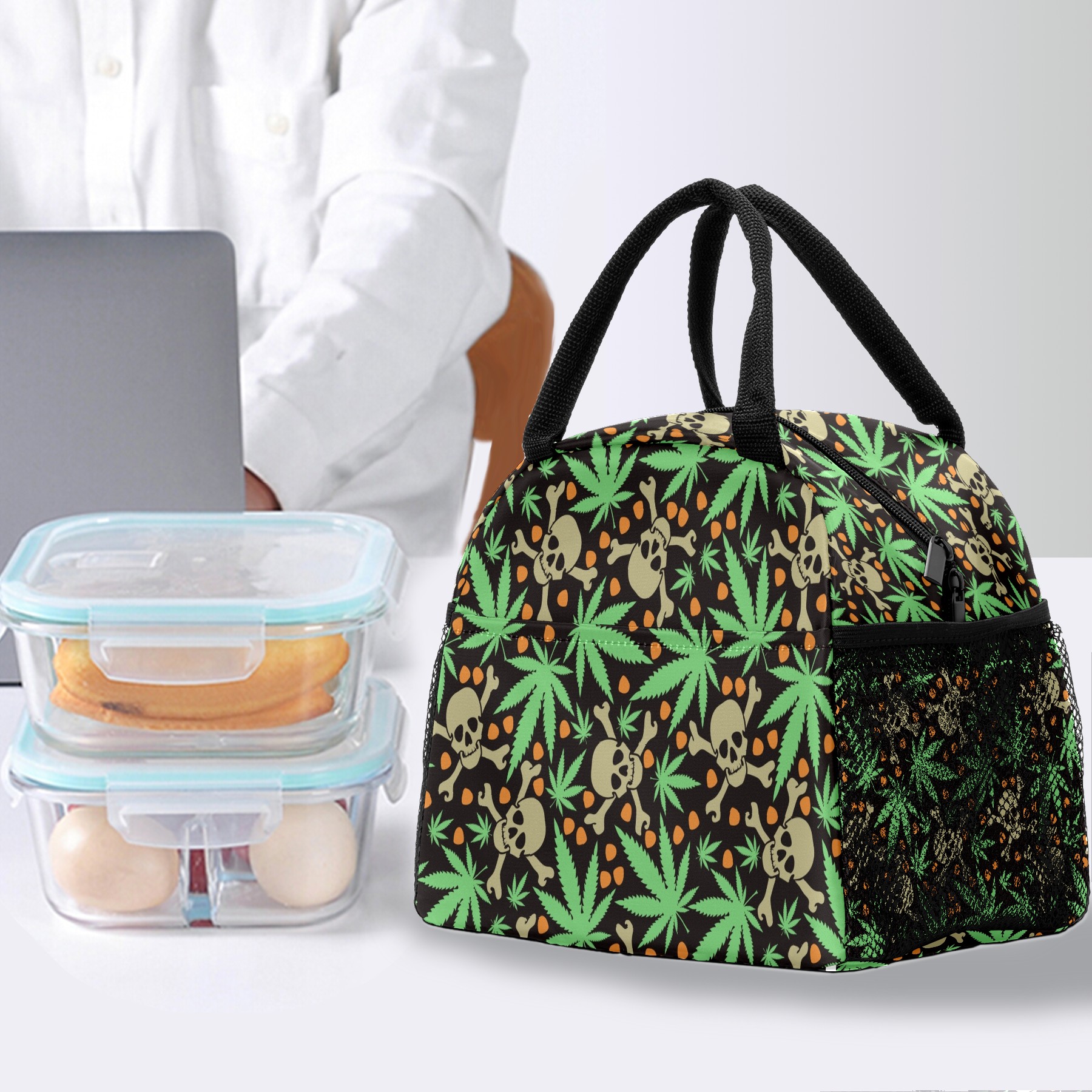 Lunch Bag for Women Men, Pirate Skeleton Skull Leaves Pattern Insulated Reusable Lunch Box Thermal Cooler Tote Bag for Work Picnic Hiking Travel Beach