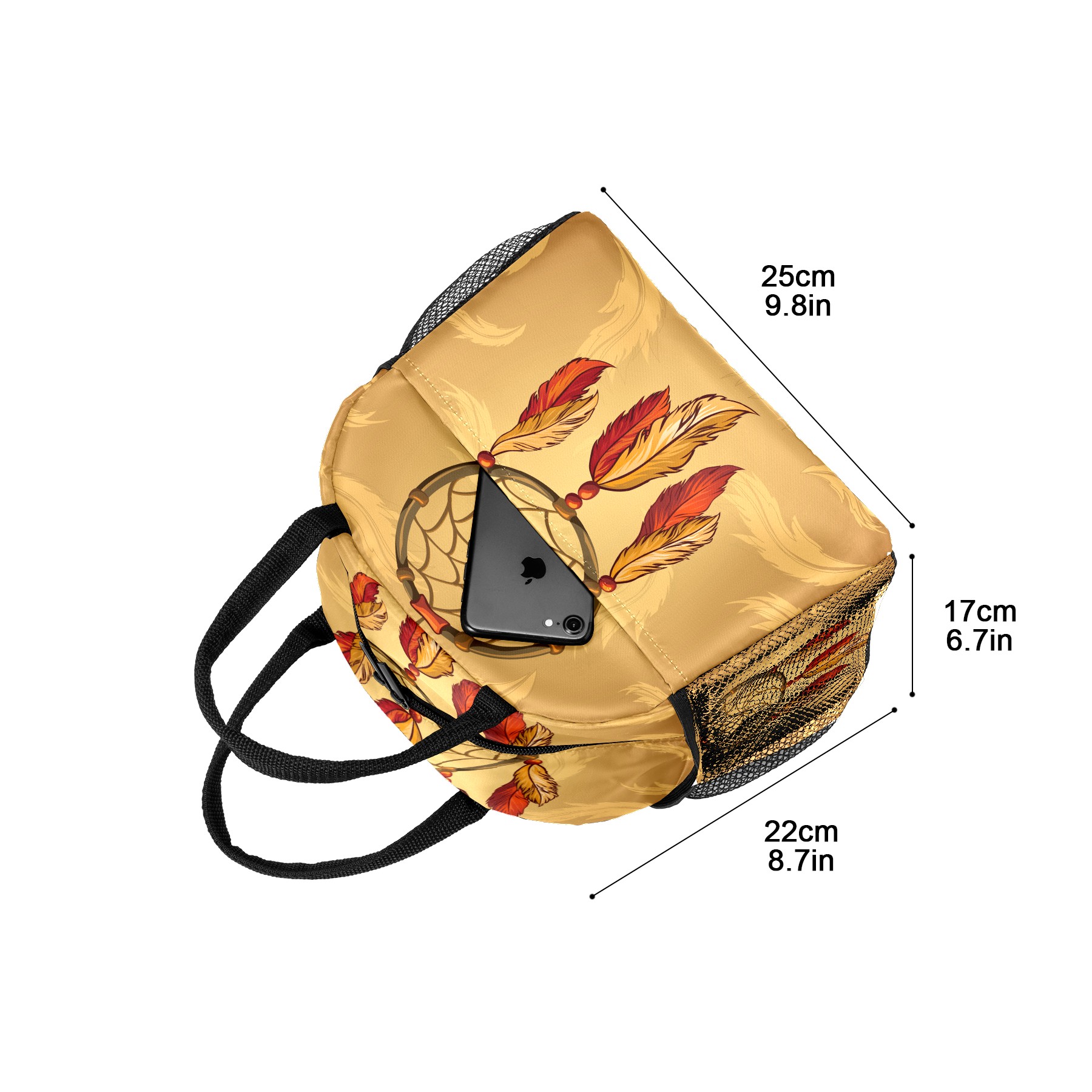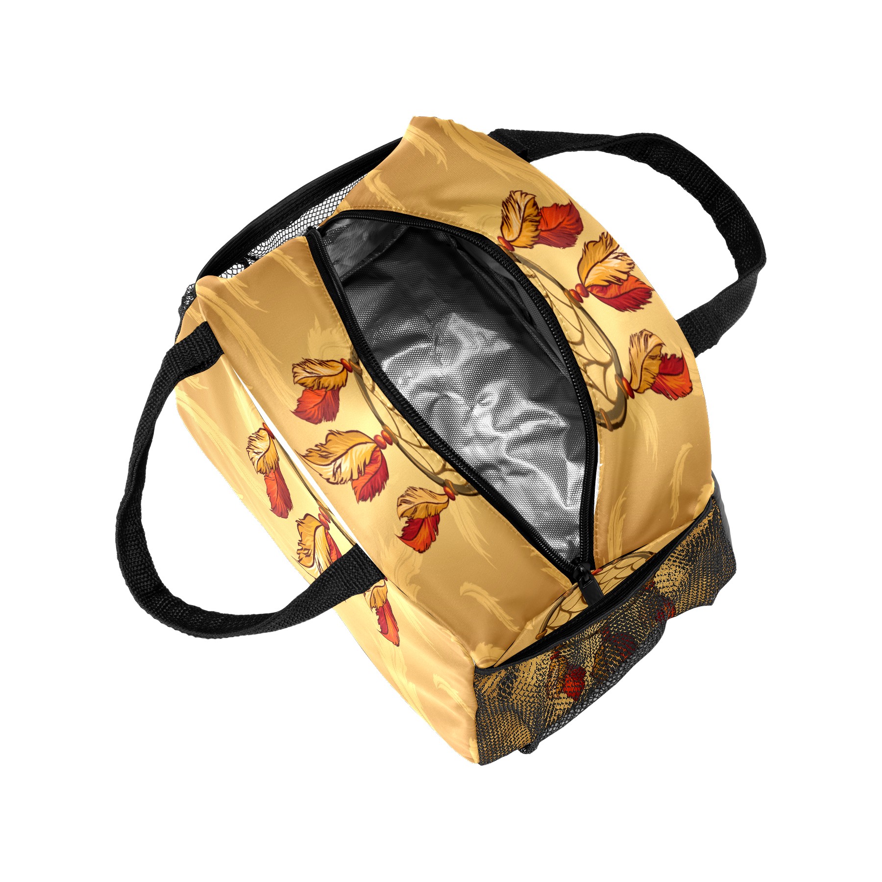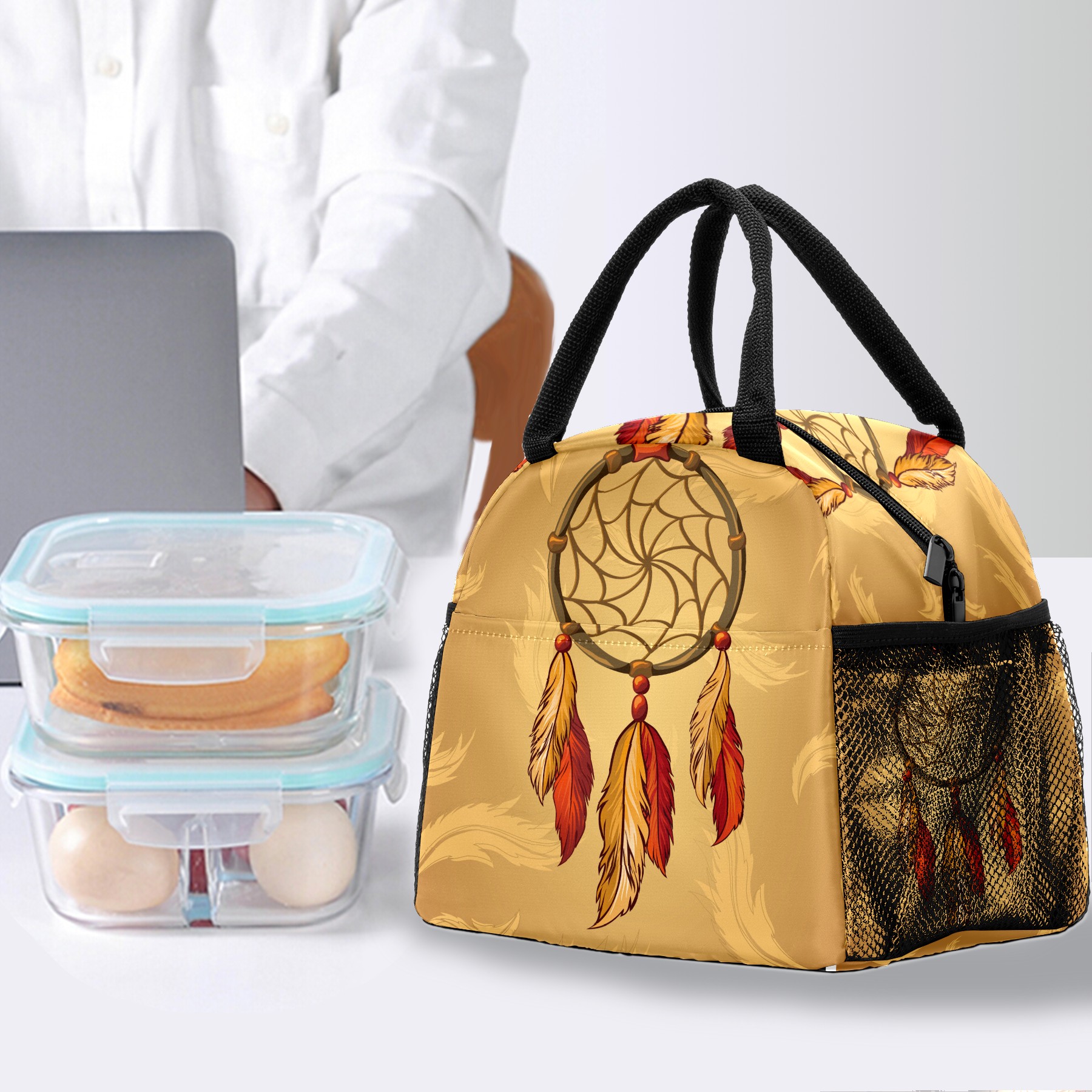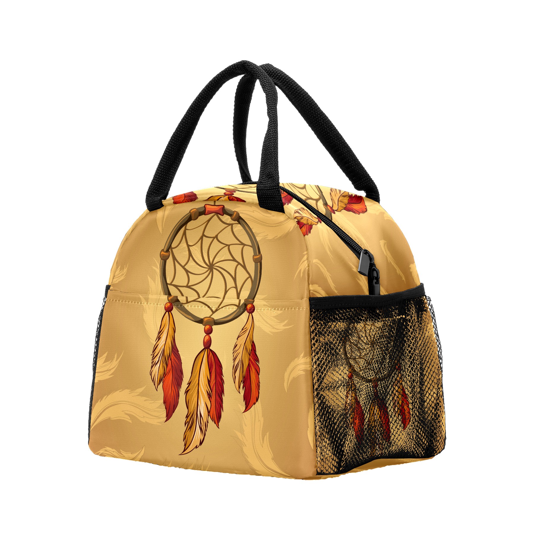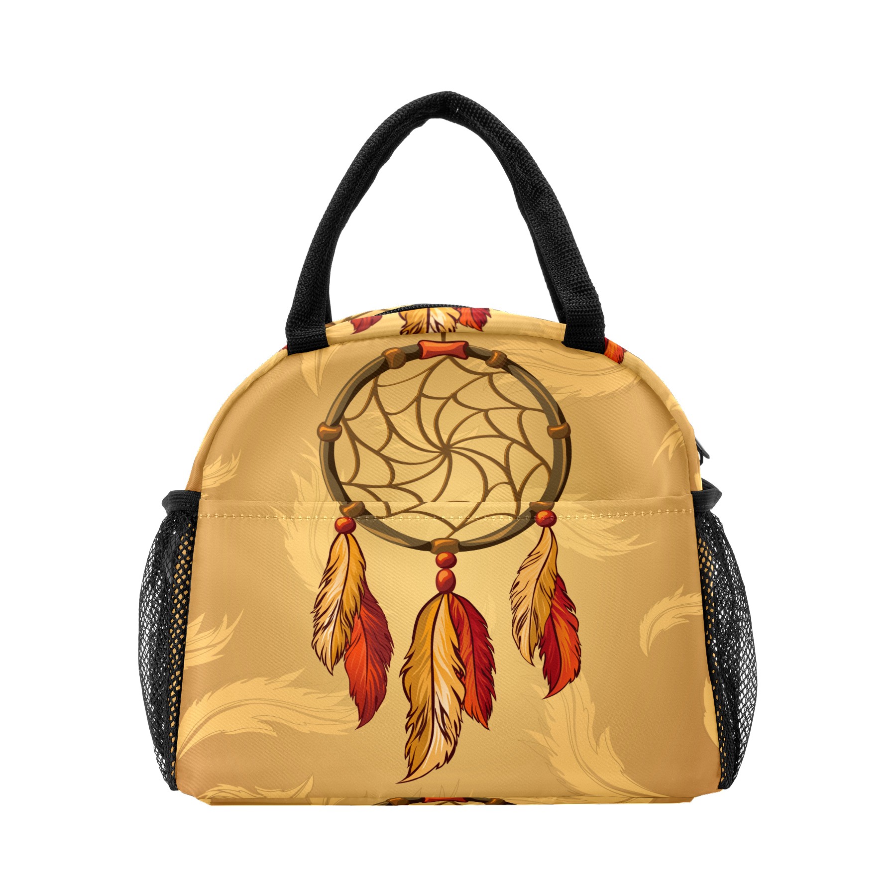 Lunch Bag for Women Men, Retro Indian Dreamcatcher Feather Insulated Reusable Lunch Box Thermal Cooler Tote Bag for Work Picnic Hiking Travel Beach