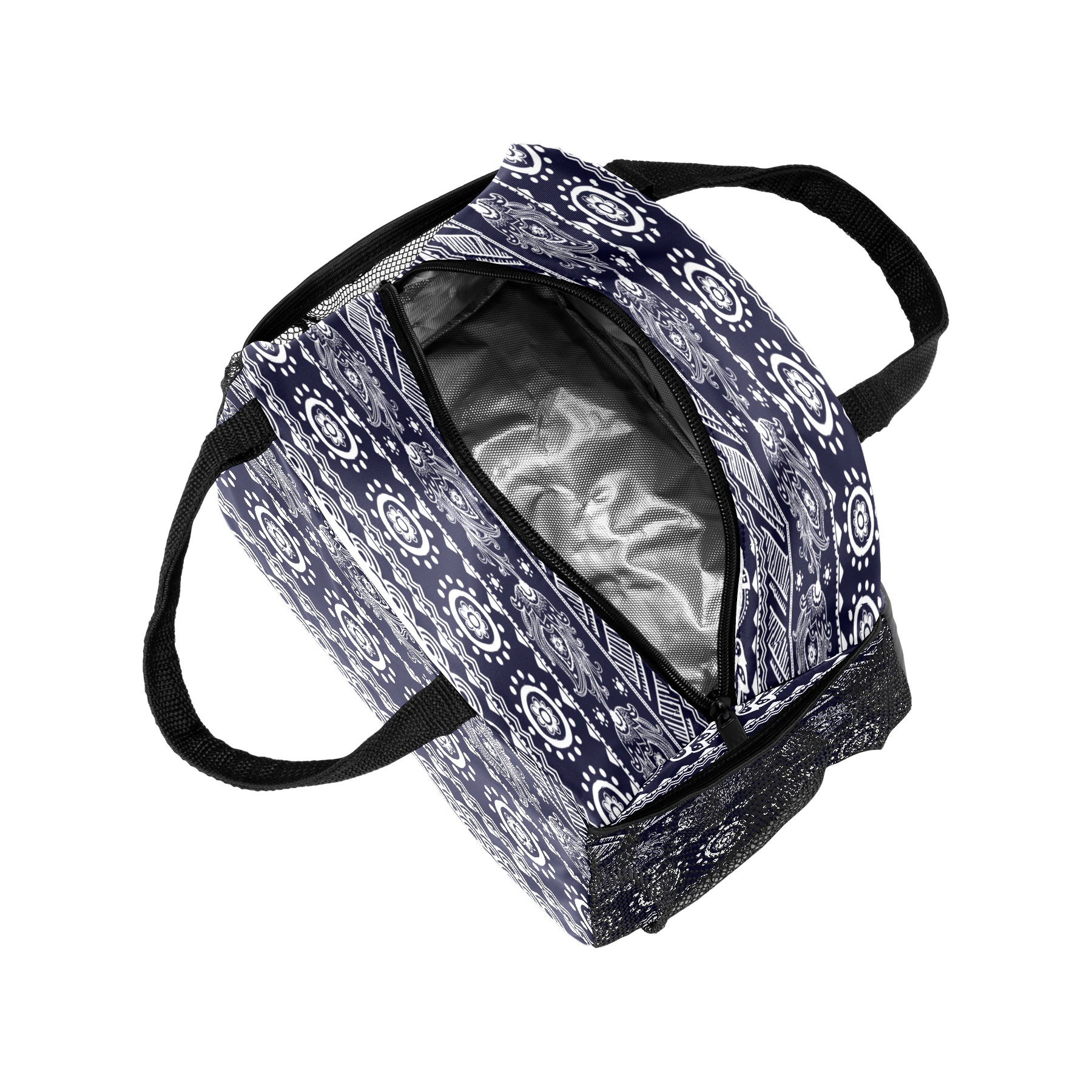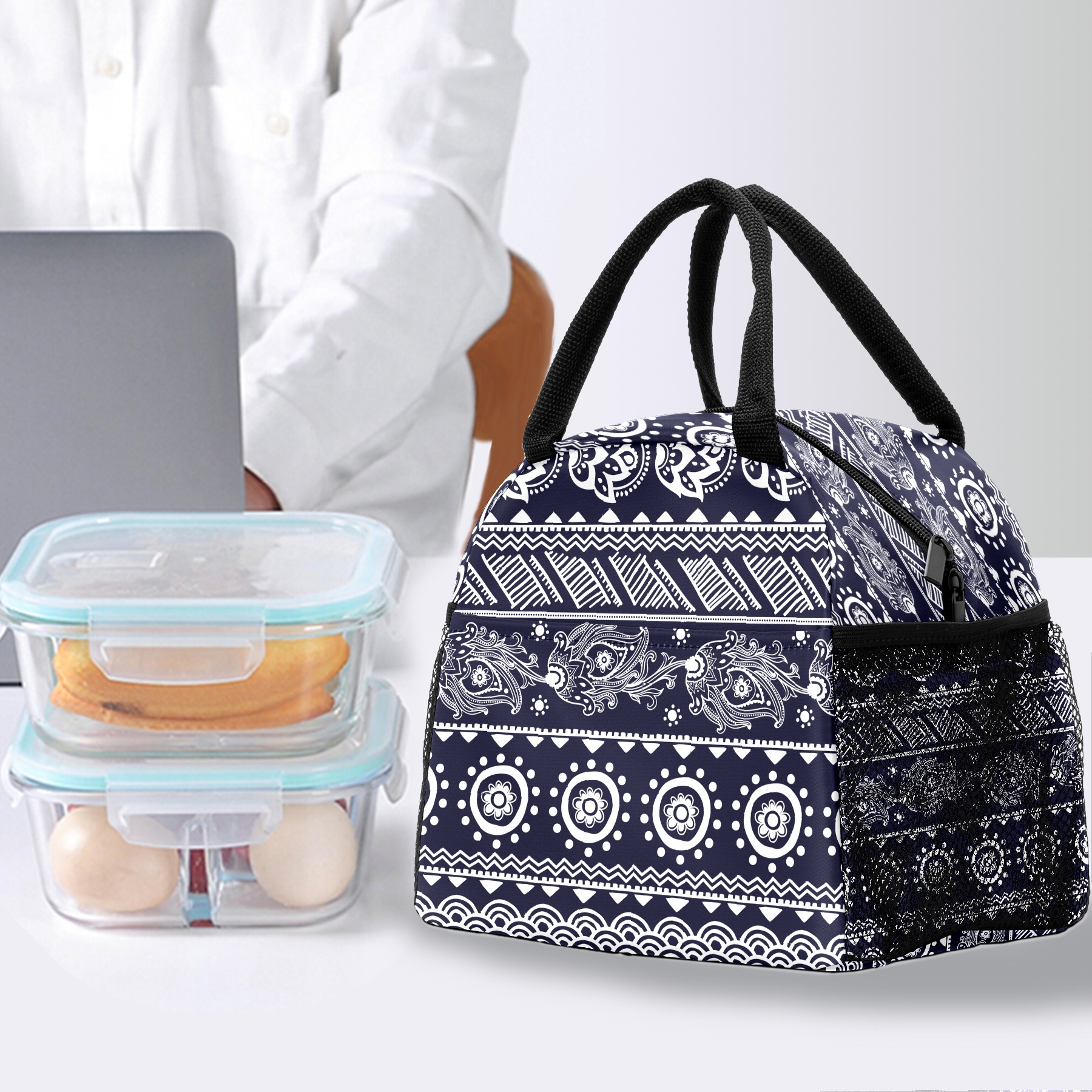Lunch Bag for Women Men, Retro Ethnic Boho Floral Insulated Reusable Lunch Box Thermal Cooler Tote Bag for Work Picnic Hiking Travel Beach