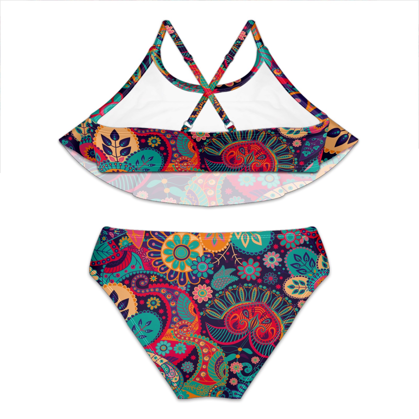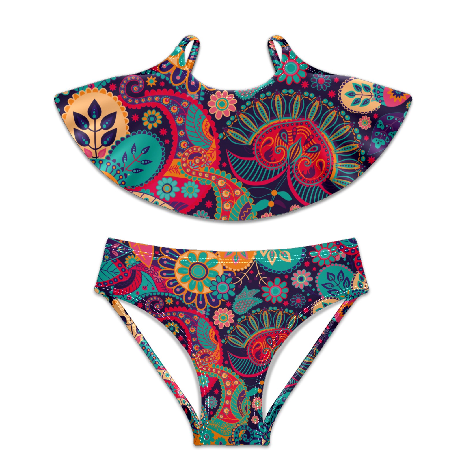 Swimsuits for Girls Two Pieces Bathing Suit Quick Dry Swimwear Boho Bohemia Plant Leaves Colorful Floral S