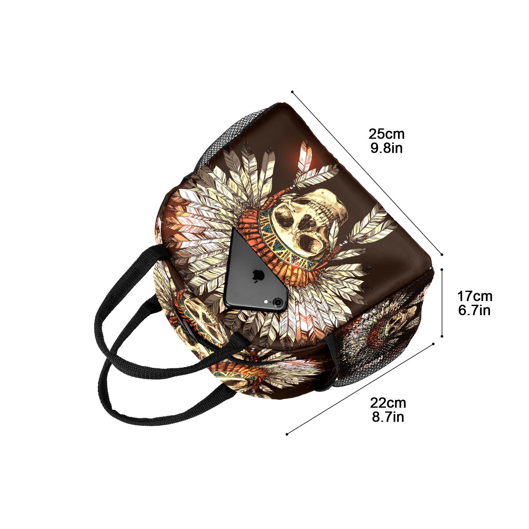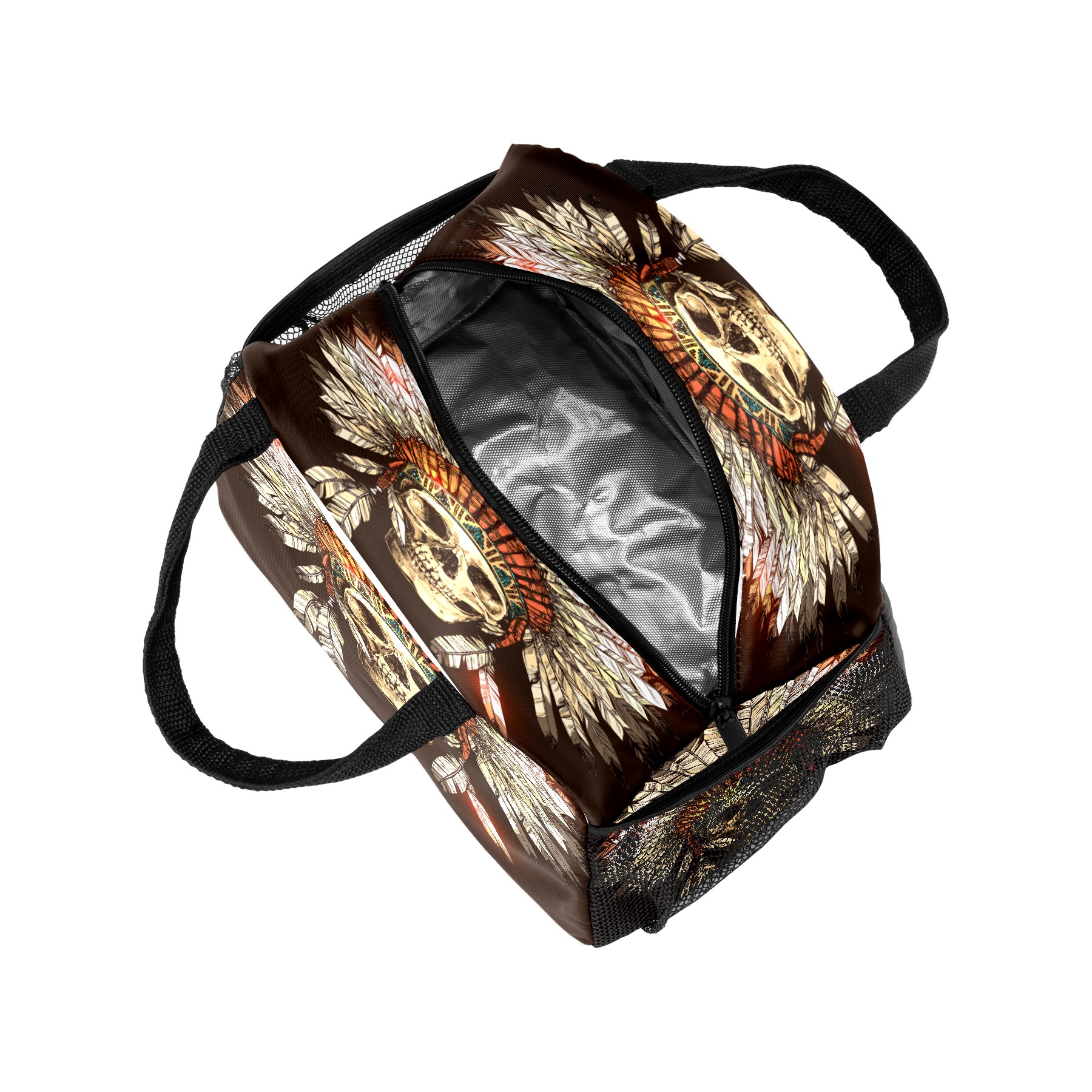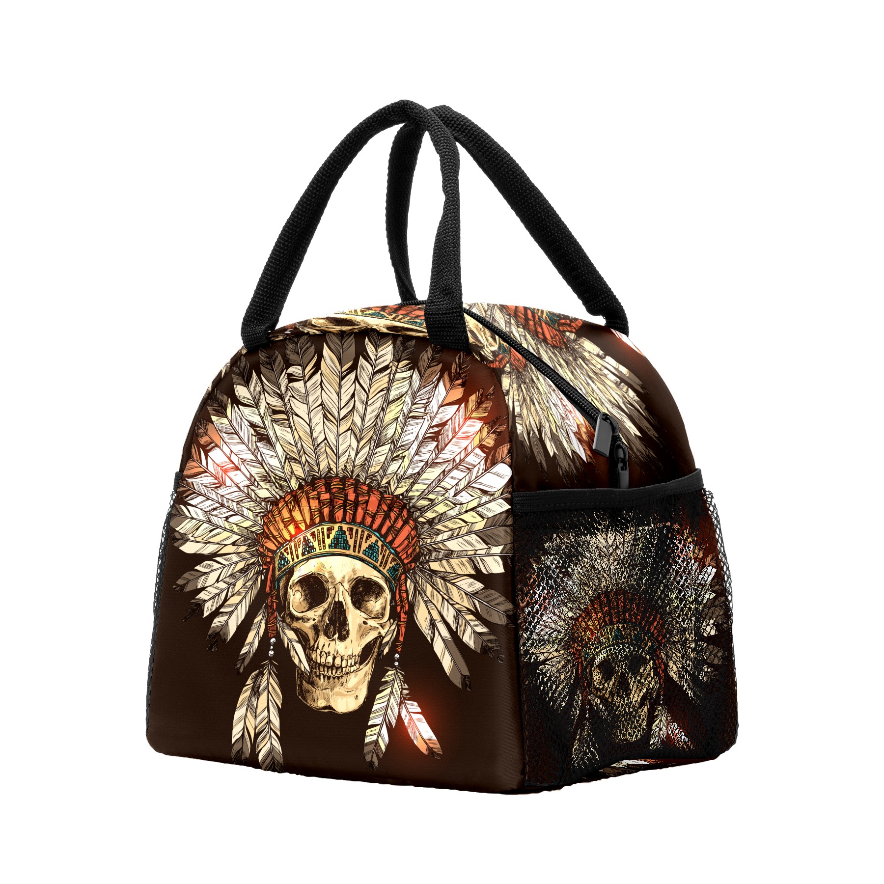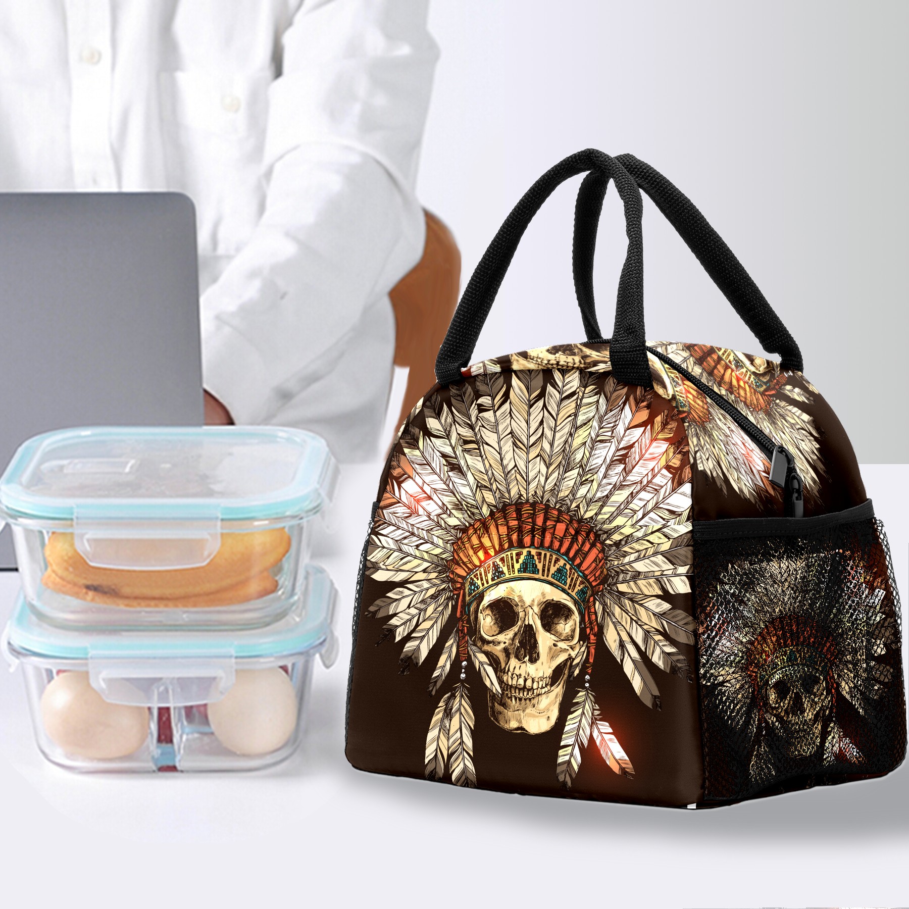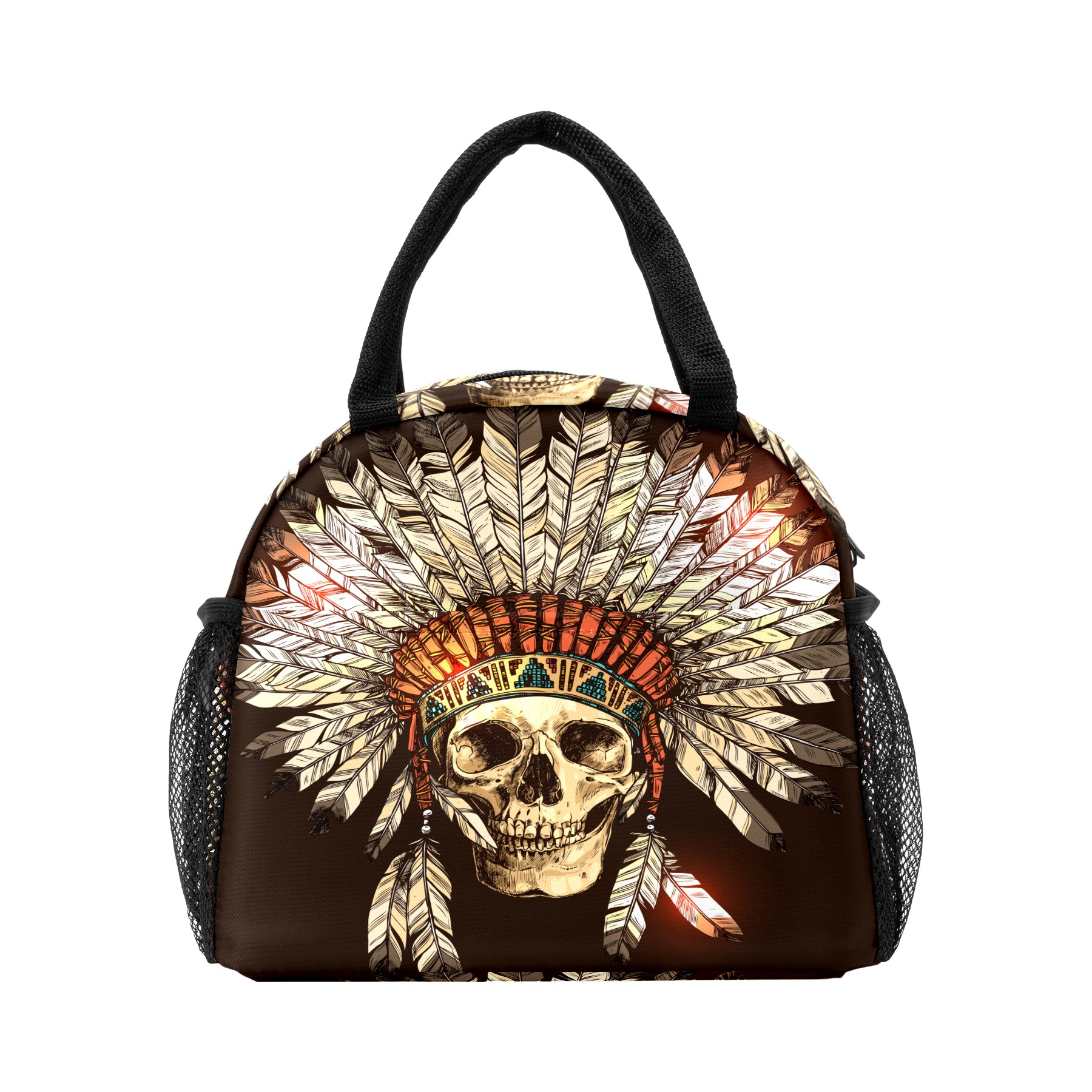 Lunch Bag for Women Men, Indian Tribal Skull Insulated Reusable Lunch Box Thermal Cooler Tote Bag for Work Picnic Hiking Travel Beach