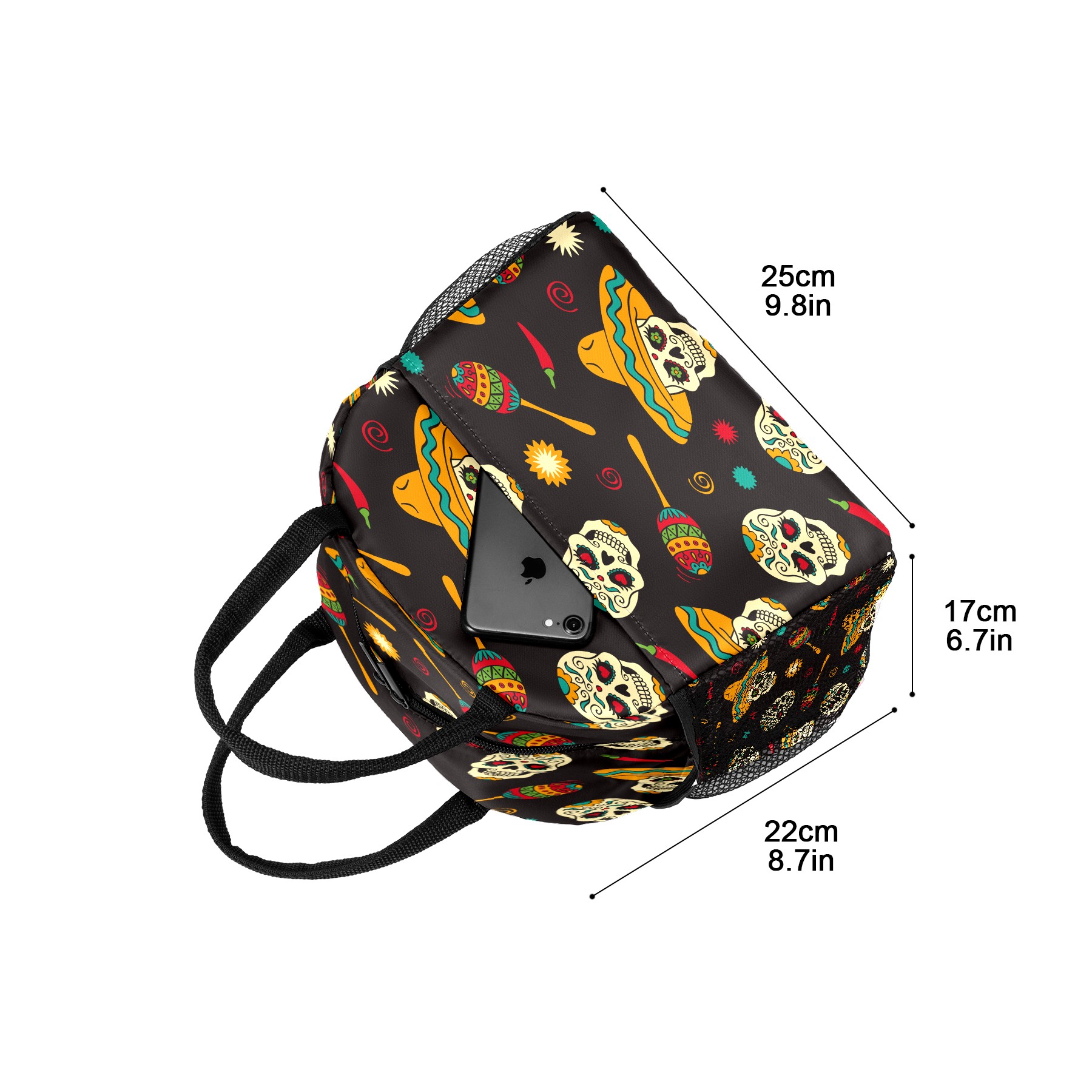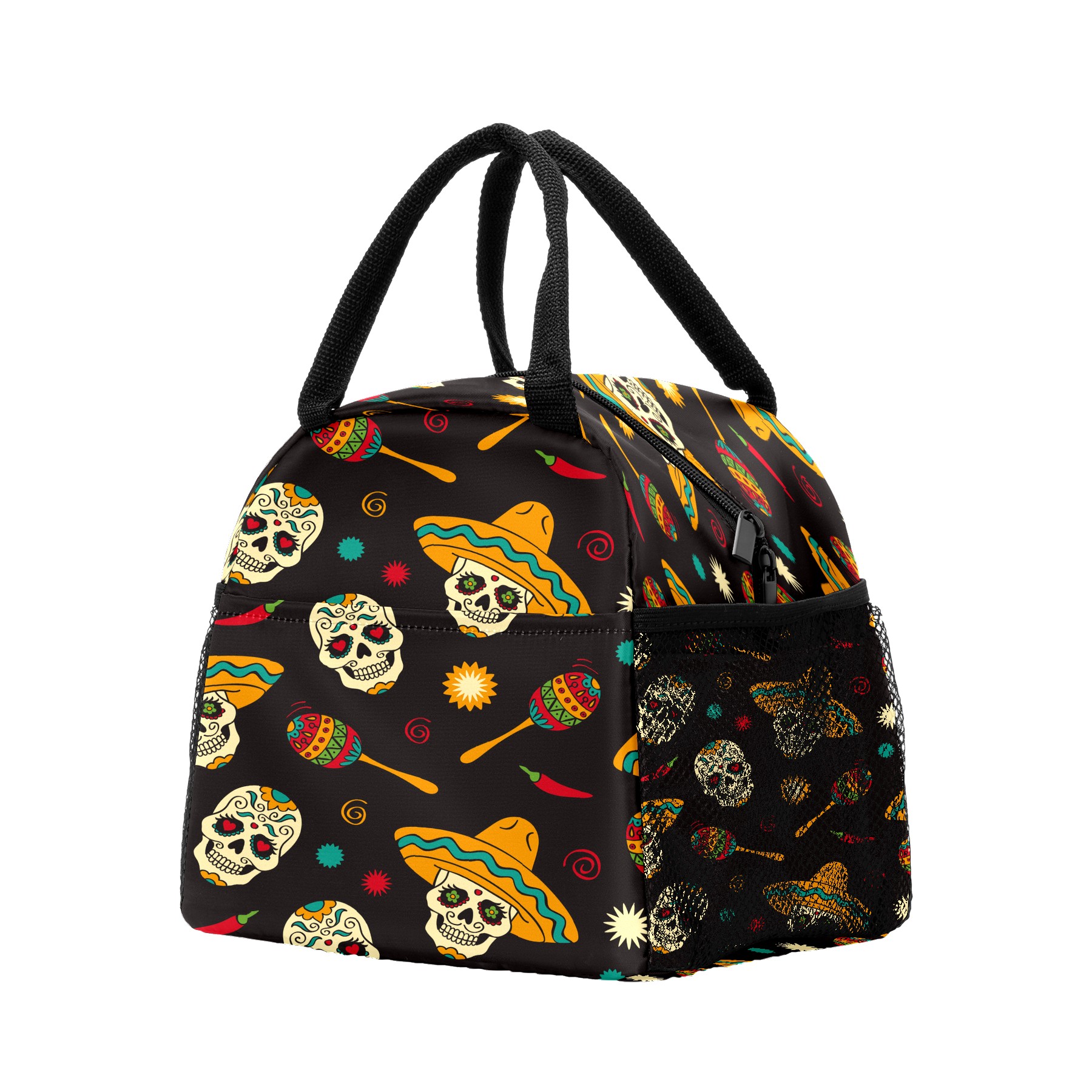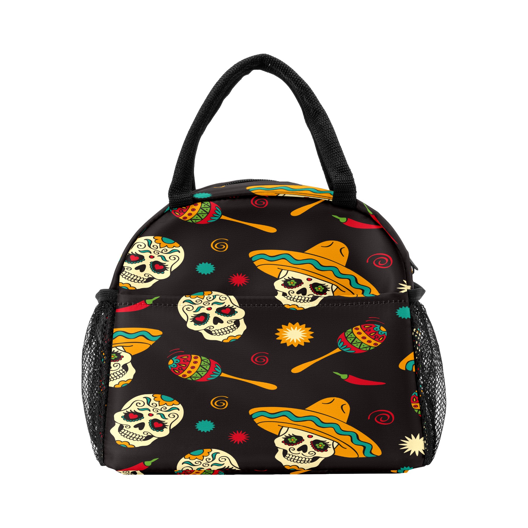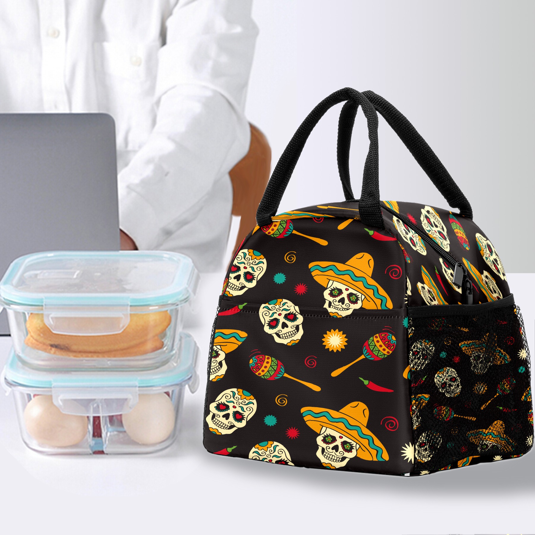 Lunch Bag for Women Men, Mexico Sugar Skull Design Insulated Reusable Lunch Box Thermal Cooler Tote Bag for Work Picnic Hiking Travel Beach