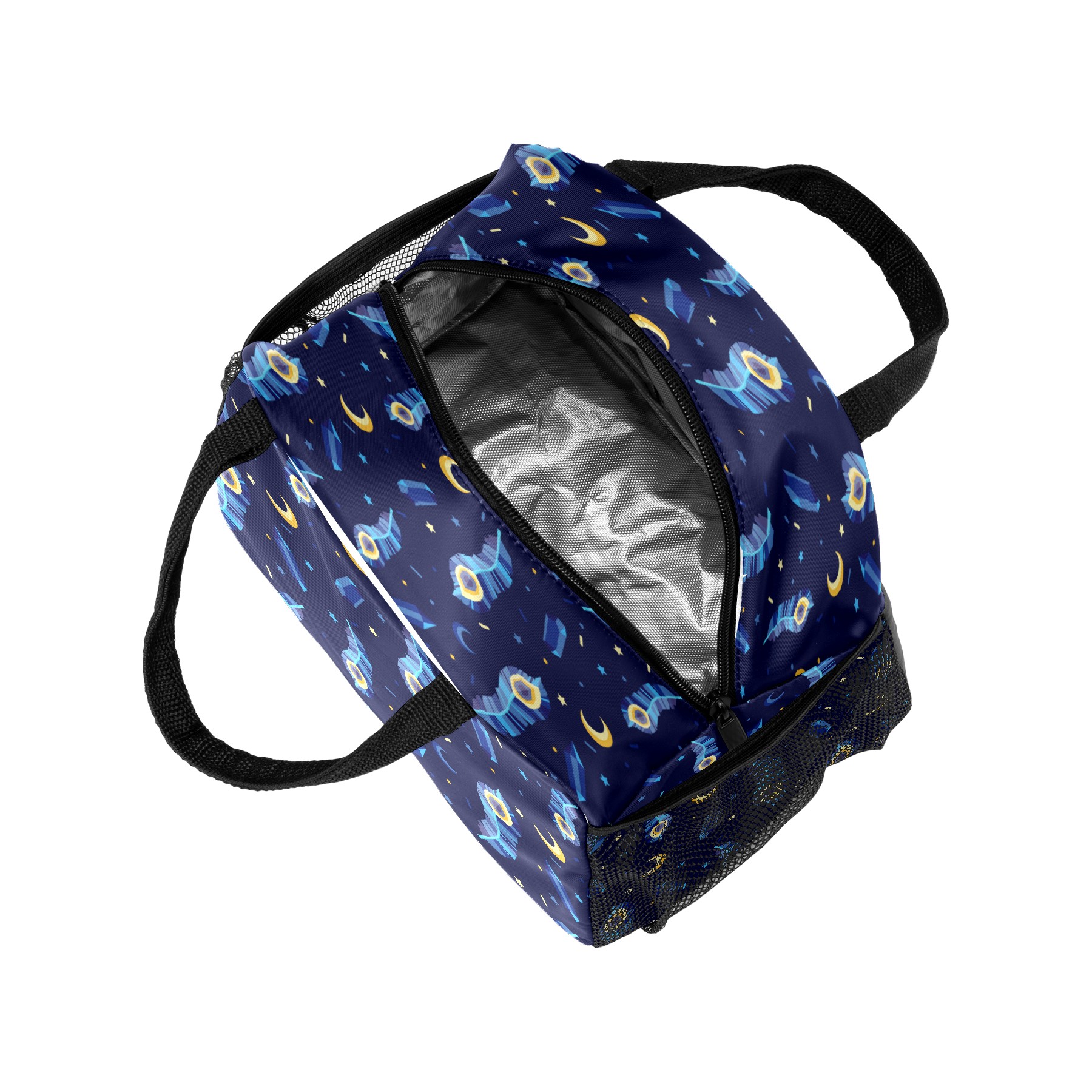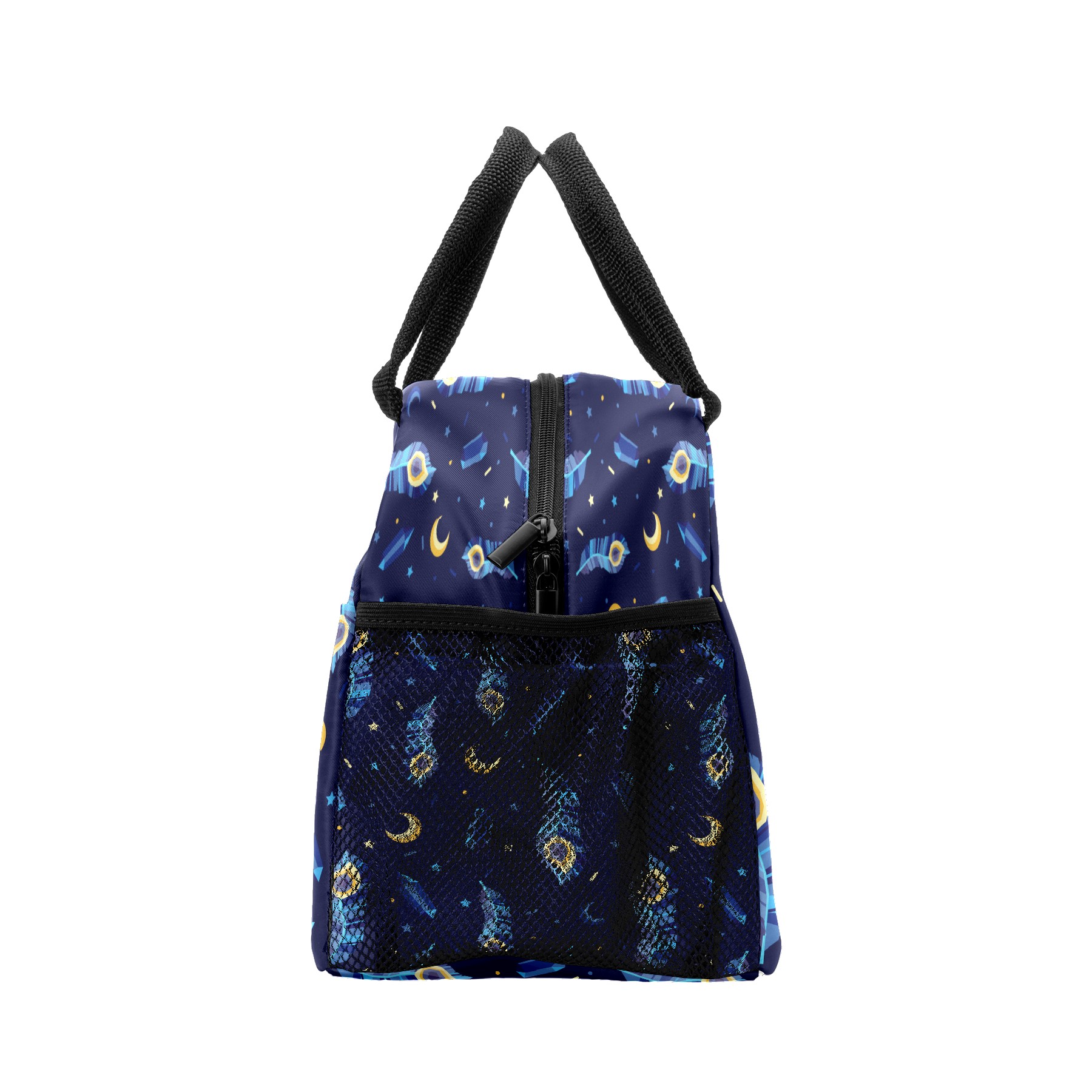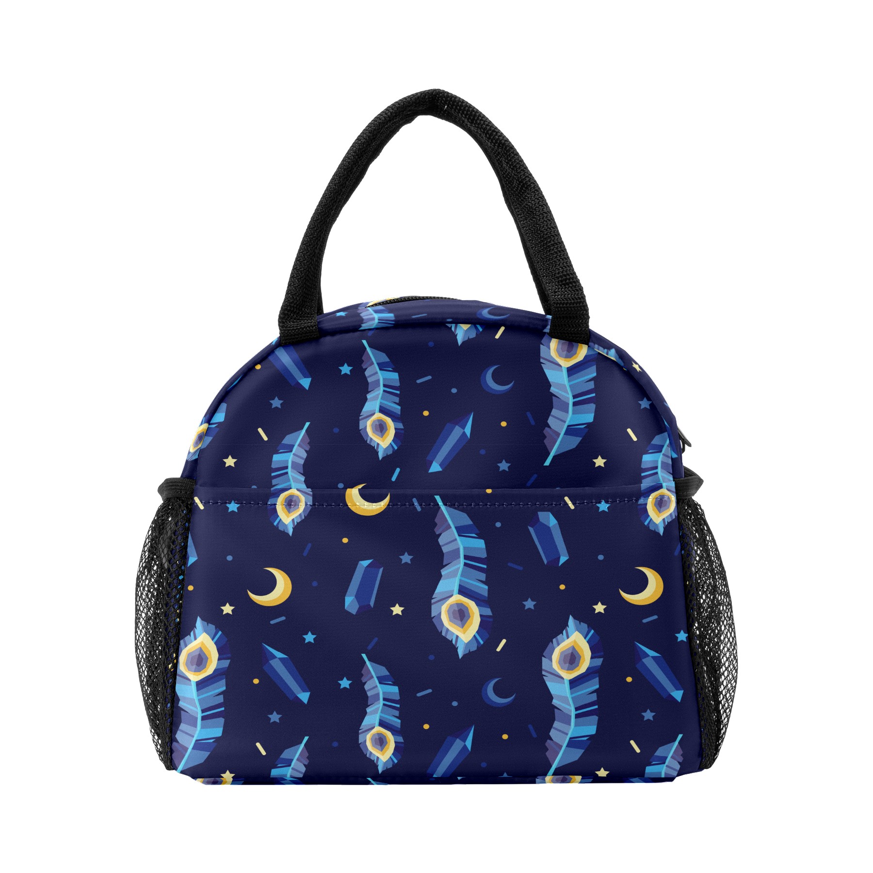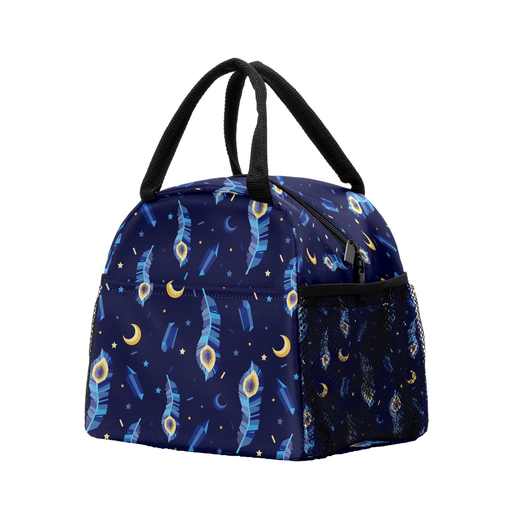 Lunch Bag for Women Men, Peacock Blue Feather Moons Pattern Insulated Reusable Lunch Box Thermal Cooler Tote Bag for Work Picnic Hiking Travel Beach