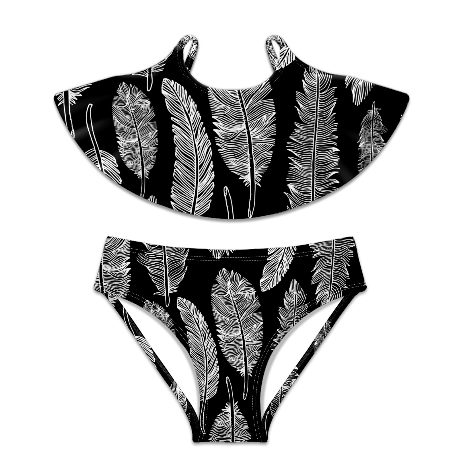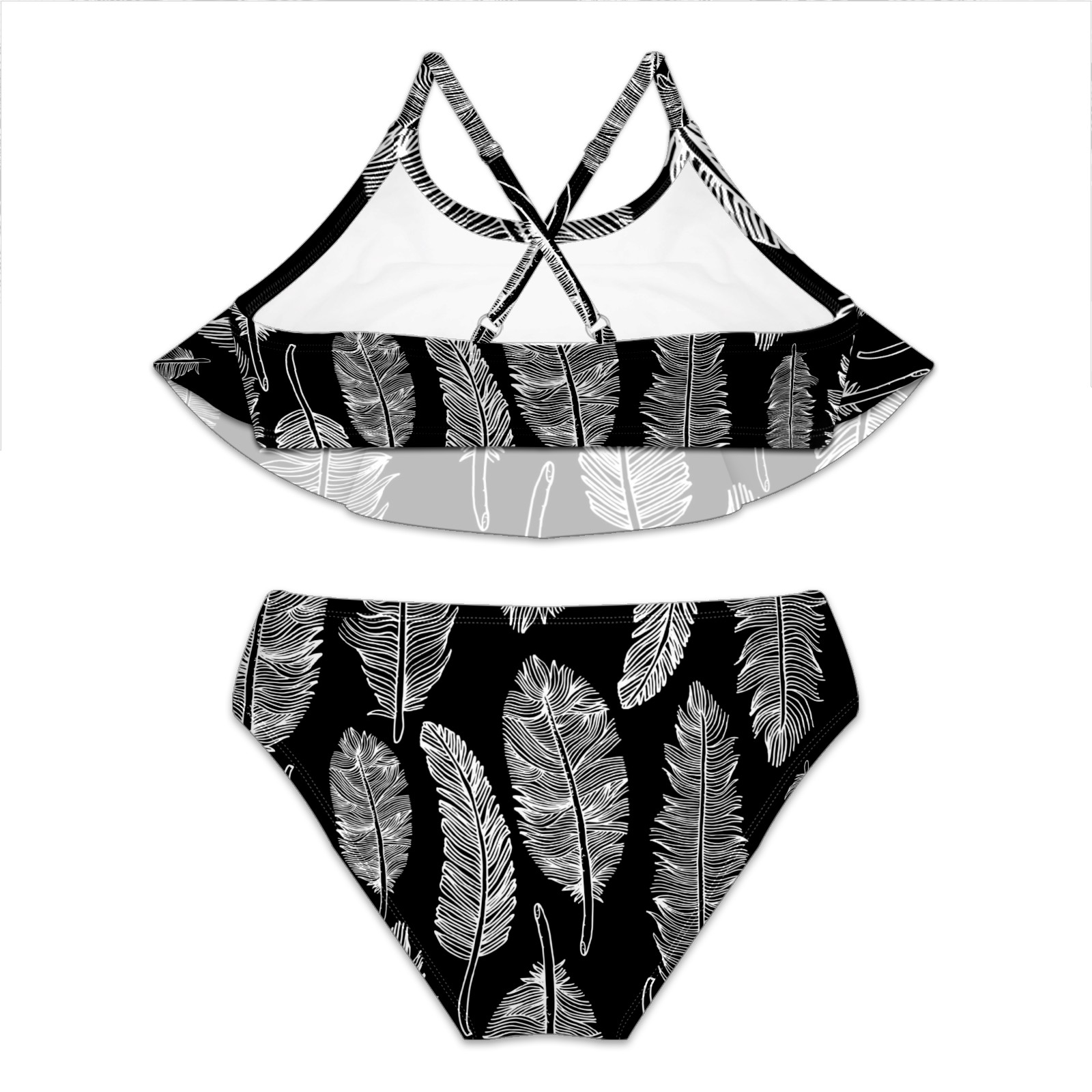 Swimsuits for Girls Two Pieces Bathing Suit Quick Dry Swimwear Boho Bohemia Black White S